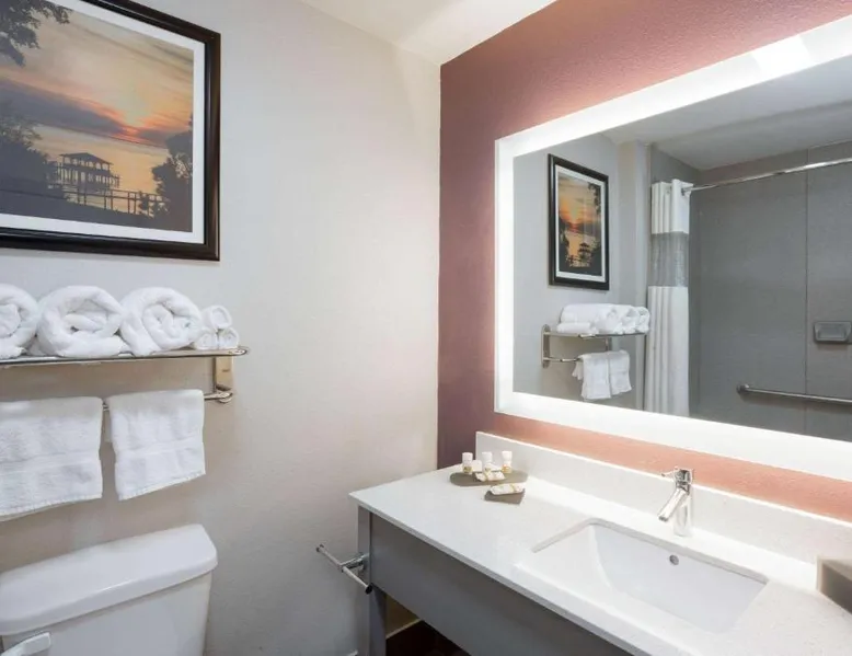 A 5-minute walk from Timbercreek Golf Club, this Alabama hotel features an outdoor pool, free property-wide Wi-Fi, and hot breakfast. The Battleship USS Alabama Memorial park is 13 miles away. All guest rooms feature a flat-screen cable TV, desk, and coffee-making facilities. This Daphne La Quinta Inn and Suites also includes a private bathroom with a hairdryer. Access to a fitness center is provided to all La Quinta Inn and Suites Daphne guests throughout their stay. An on-site laundromat and meeting facilities are available. The Mobile Convention Center is 11 miles away. Guests are 5 miles from Meaher State Park and 14 miles from downtown Mobile. Featuring free toiletries, this triple room includes a private bathroom with a bath, a shower and a hairdryer. The triple room has parquet floors, a seating area with a flat-screen TV with cable channels, air conditioning, a tea and coffee maker, as well as a dining area. The unit has 1 bed.