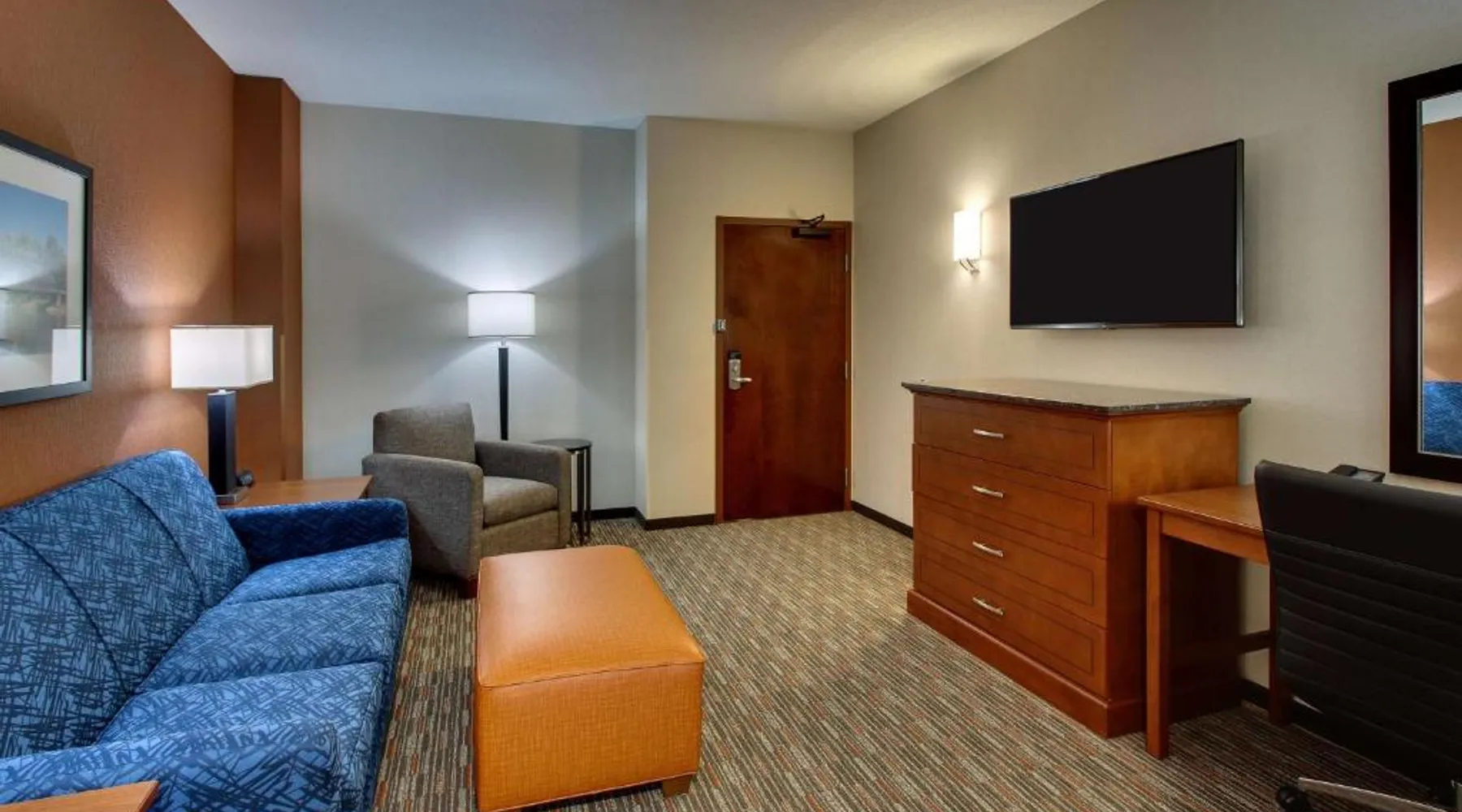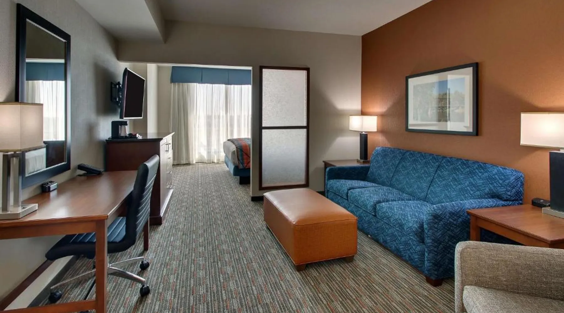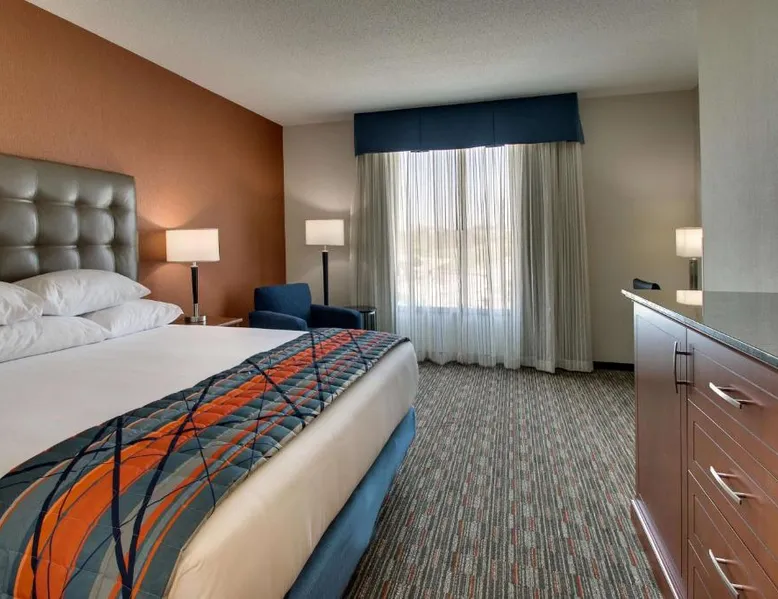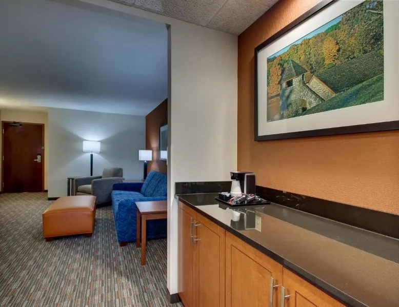 Comfortable Accommodations: Drury Inn & Suites Iowa City Coralville in Coralville offers family rooms with air-conditioning, private bathrooms, and free WiFi. Each room includes a work desk, refrigerator, and TV. Leisure Facilities: Guests can enjoy a fitness center, outdoor swimming pool, and hot tub. Additional amenities include a elevator, business area, and free on-site private parking. Dining Options: A buffet breakfast is provided each morning, along with dinner options. The property staff and service support receive high ratings from guests. Nearby Attractions: Kinnick Stadium is 2.5 mi away, Paramount Theater 24 mi, and The Eastern Iowa Airport 19 mi from the hotel. This suite is consisted of of 1 living room, 1 separate bedroom and 1 bathroom with a walk-in shower and free toiletries. The air-conditioned suite offers a flat-screen TV with cable channels, a coffee machine, a wardrobe and heating. The unit offers 1 bed.
