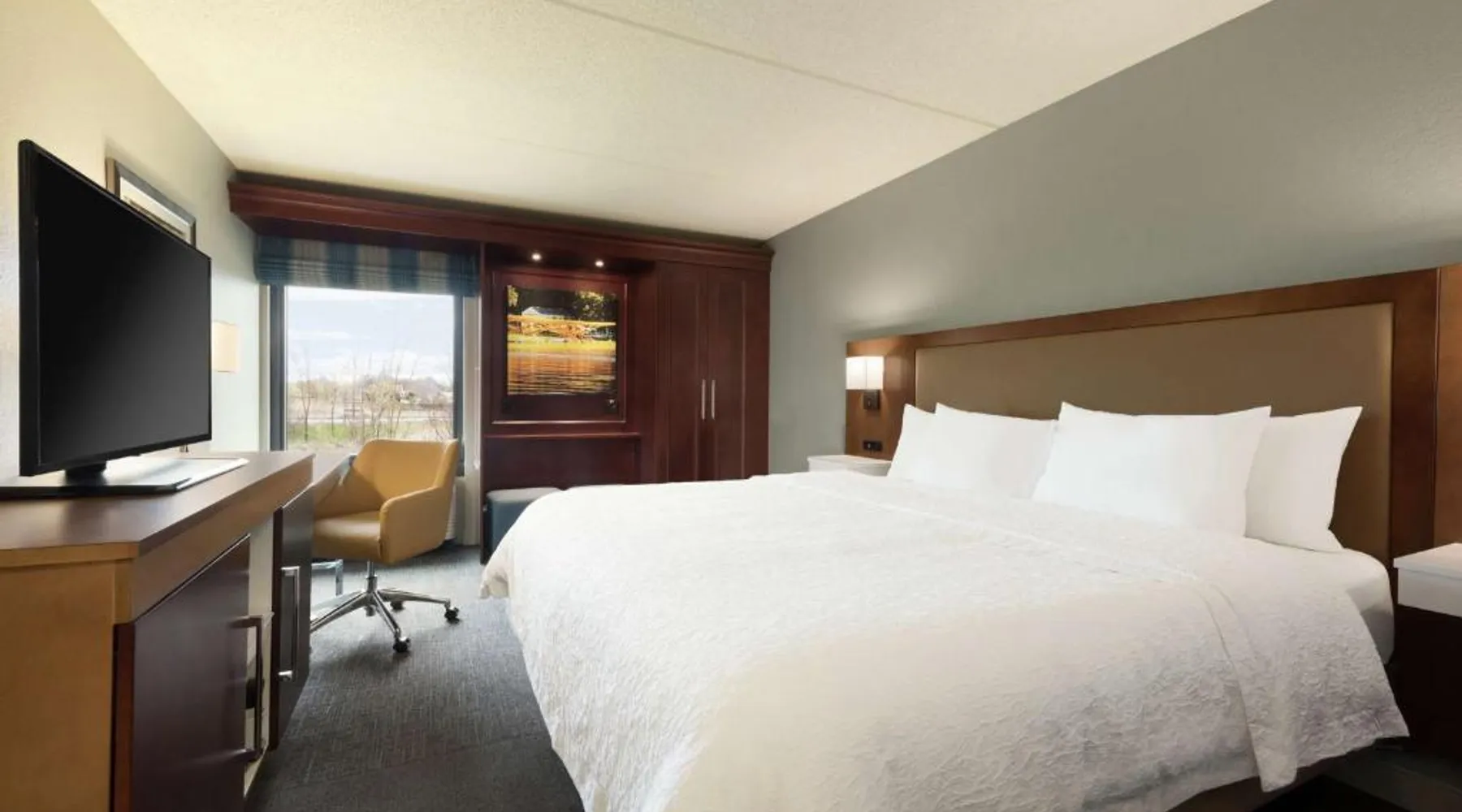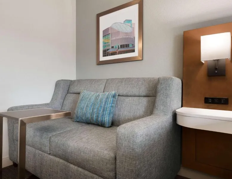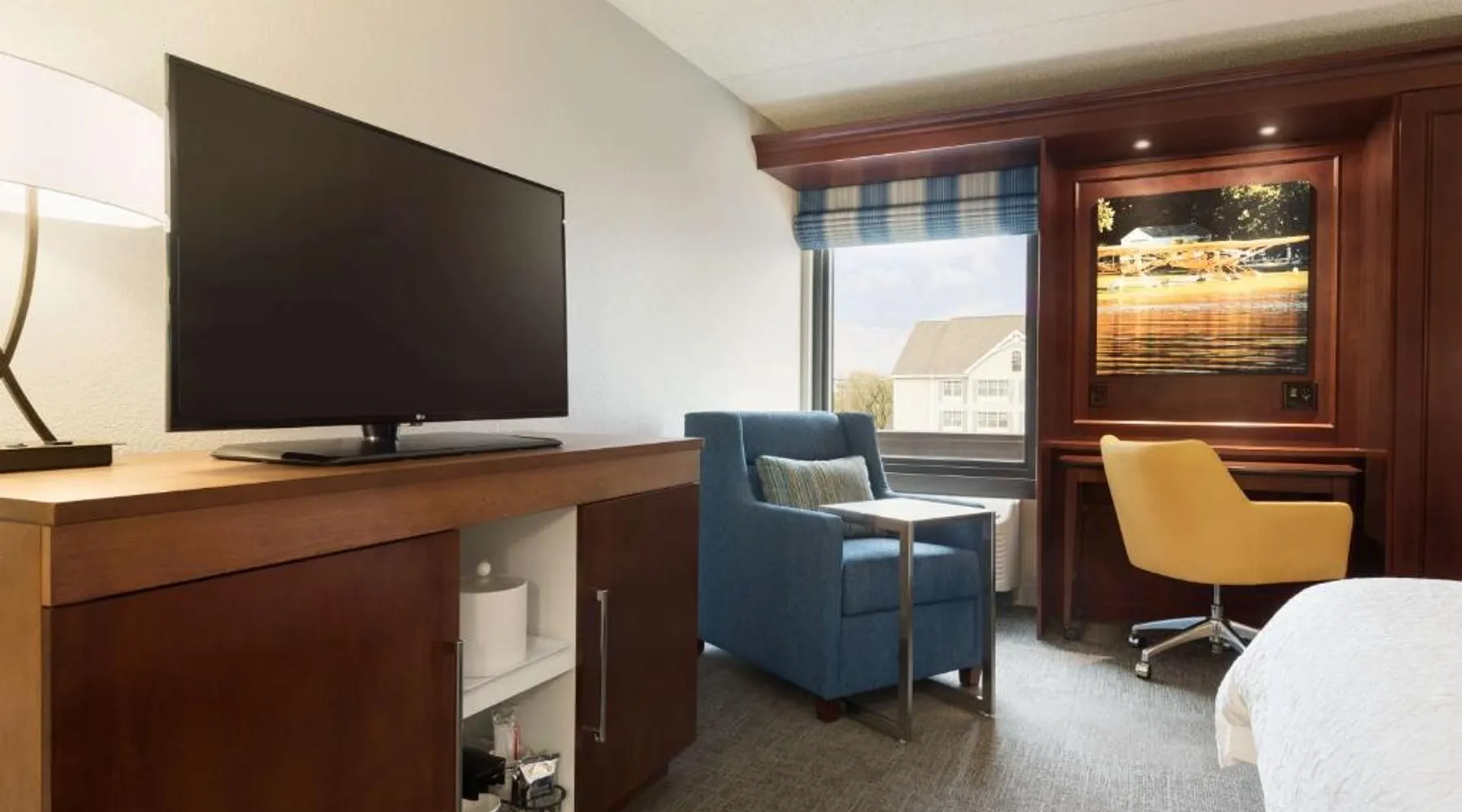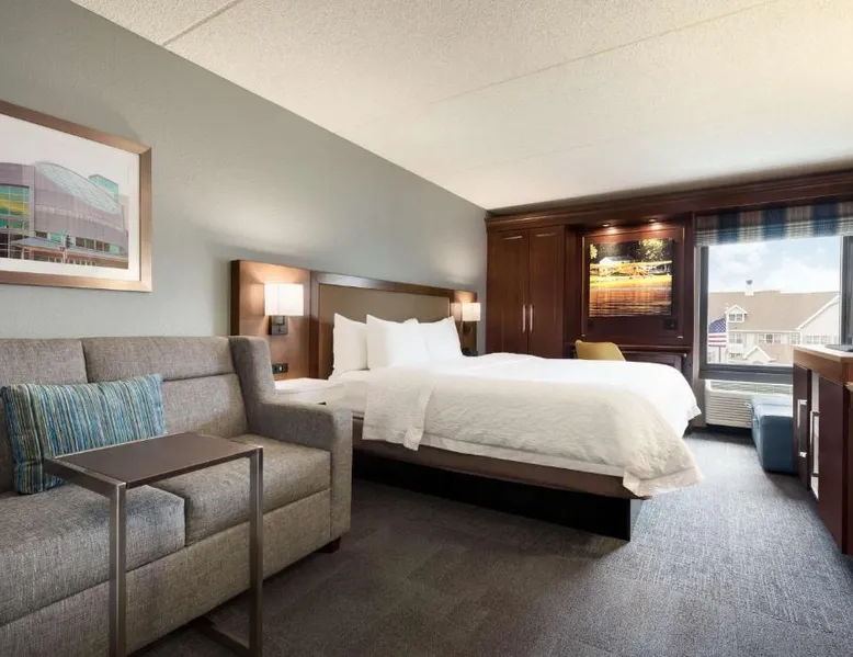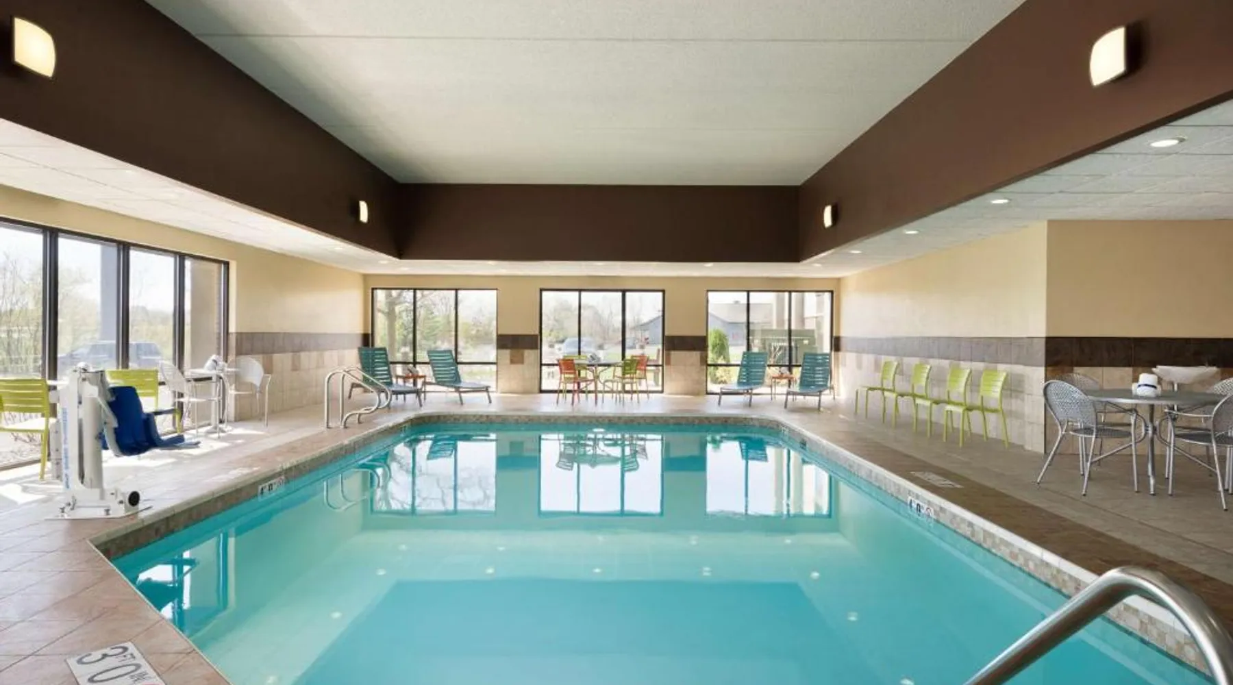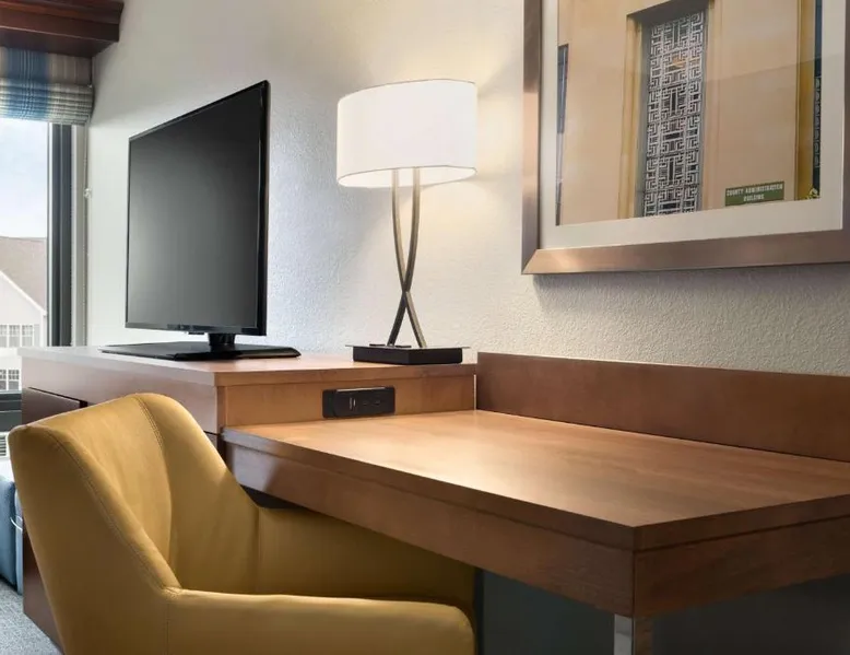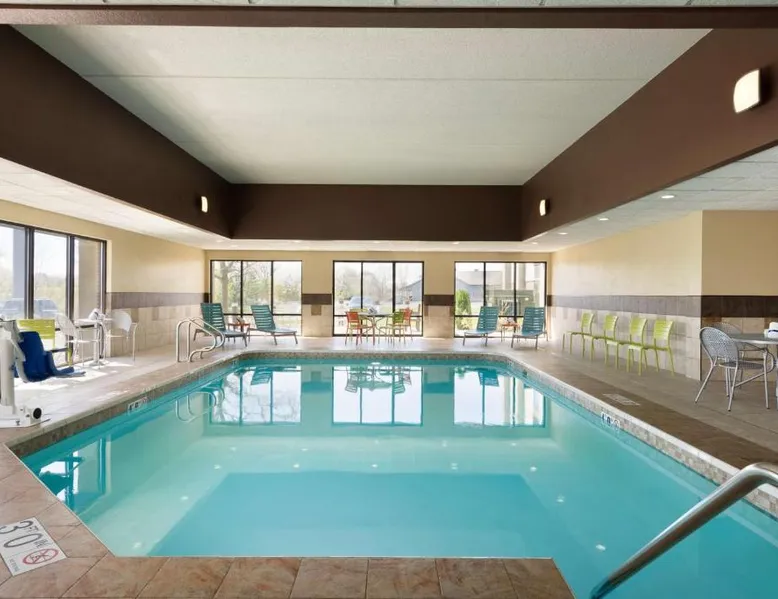 Comfortable Accommodations: Rooms feature air-conditioning, tea and coffee makers, hairdryers, refrigerators, free toiletries, showers, and TVs. Additional amenities include sofa beds and seating areas. Facilities and Services: Guests can enjoy a fitness center, indoor swimming pool, lounge, fitness room, hot tub, 24-hour front desk, business area, and room service. Free on-site parking is available. Dining Options: An American buffet breakfast is served daily. The property also offers a lounge for relaxation. Location and Attractions: Located in Appleton, the hotel is 3.1 mi from Outagamie County Regional Airport. Nearby attractions include Fox Cities Stadium (2.4 mi), The History Museum at the Castle (3.7 mi), and Lawrence University (4.3 mi). Offering free Wi-Fi and a 32-inch flat-screen TV, this room includes a work desk and tea and coffee-making facilities.