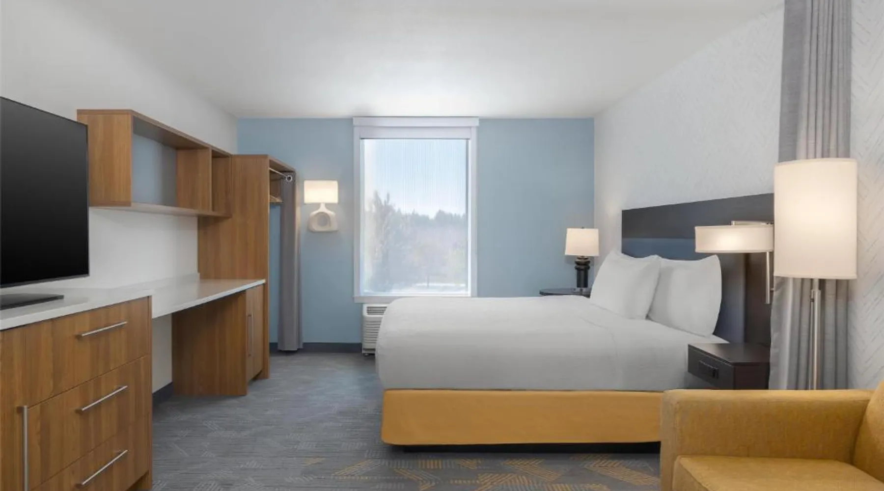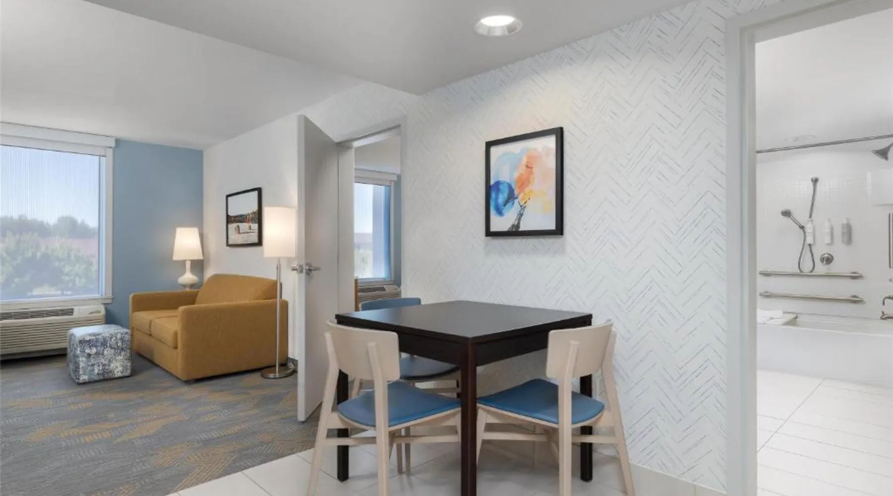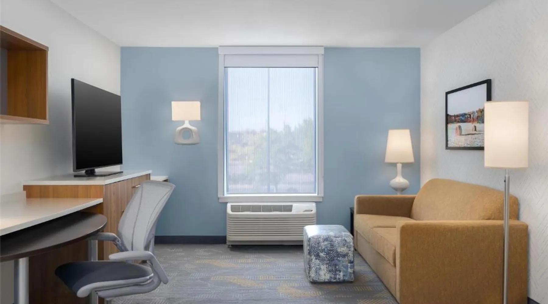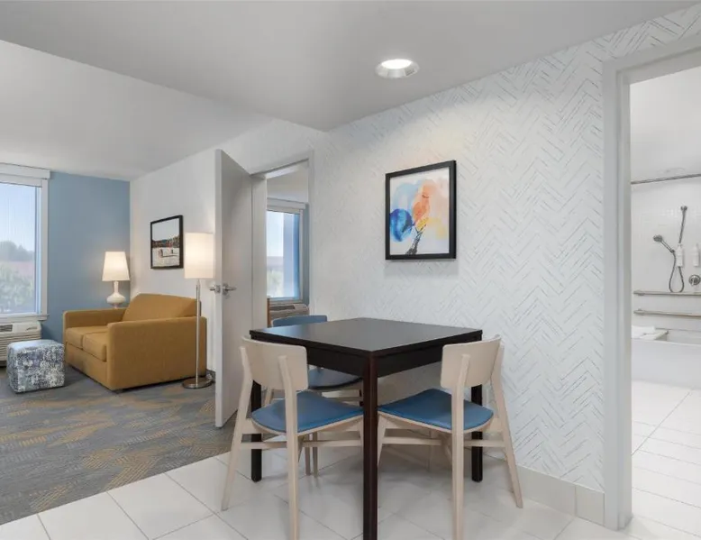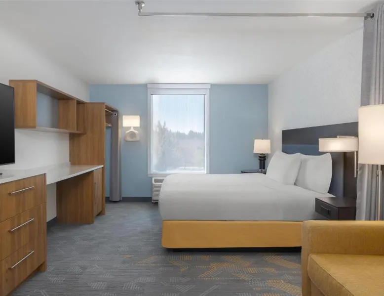 Comfortable Accommodations: Home2 Suites by Hilton Idaho Falls in Idaho Falls offers family rooms with air-conditioning, kitchen facilities, and free WiFi. Each room includes a sofa bed, work desk, and free toiletries. Exceptional Facilities: Guests enjoy a fitness center, indoor swimming pool, and hot tub. Additional amenities include a lounge, outdoor fireplace, and games room. Free on-site parking is available. Delicious Breakfast: A continental, American, or buffet breakfast is served daily. The property staff provide excellent service and support. Convenient Location: Located 3.1 mi from Idaho Falls Regional Airport and 30 mi from Eliza R. Snow Performing Arts Center. Highly rated for breakfast, room comfort, and attentive staff. In the well-equipped kitchen, guests will find a refrigerator, a dishwasher, kitchenware and a microwave. The studio offers air conditioning, a tea and coffee maker, a seating area, heating and a flat-screen TV. The unit has 1 bed.