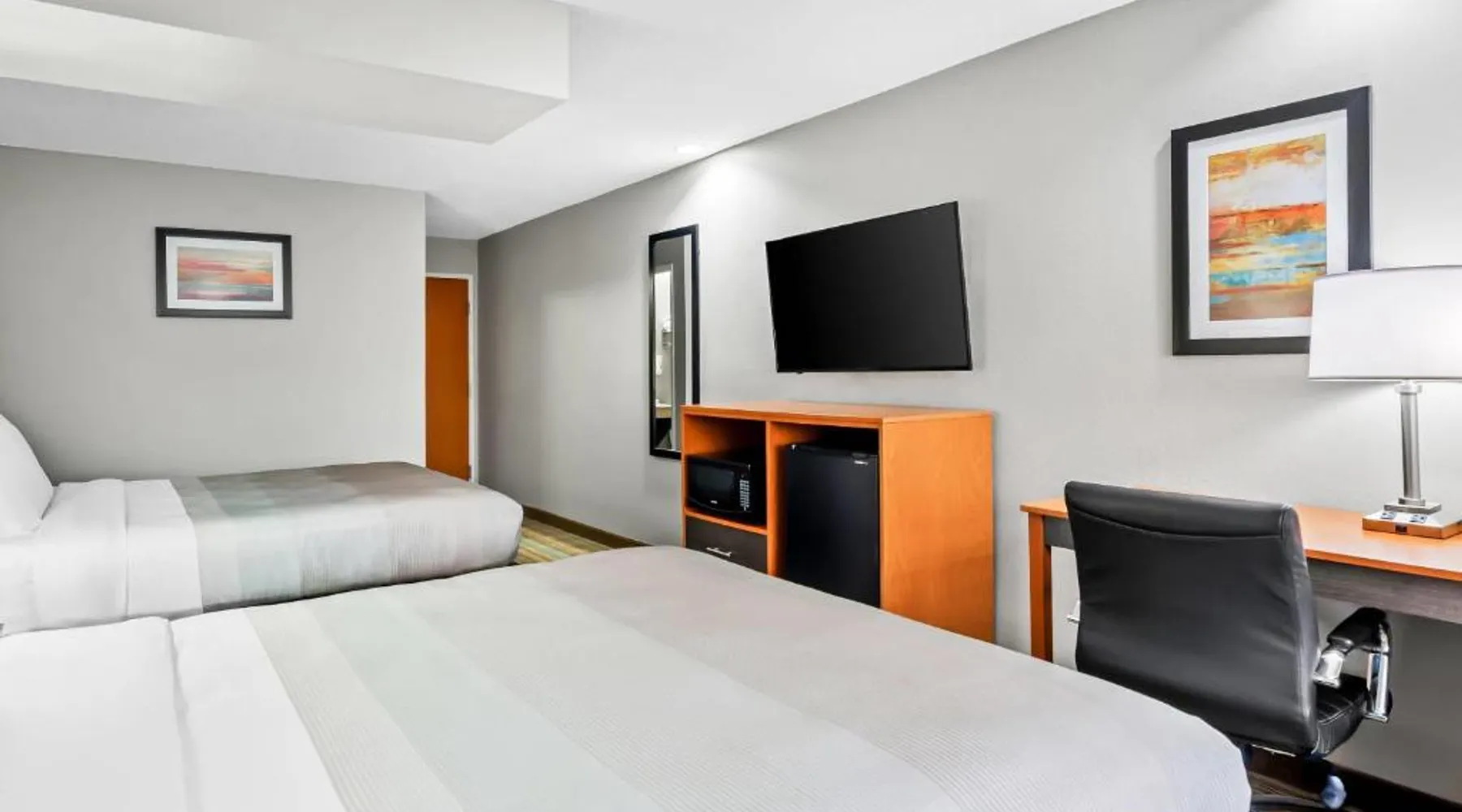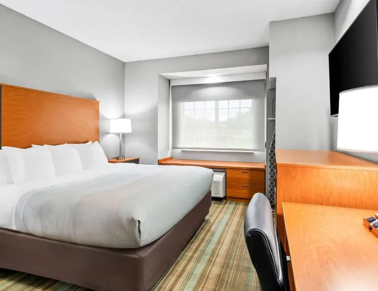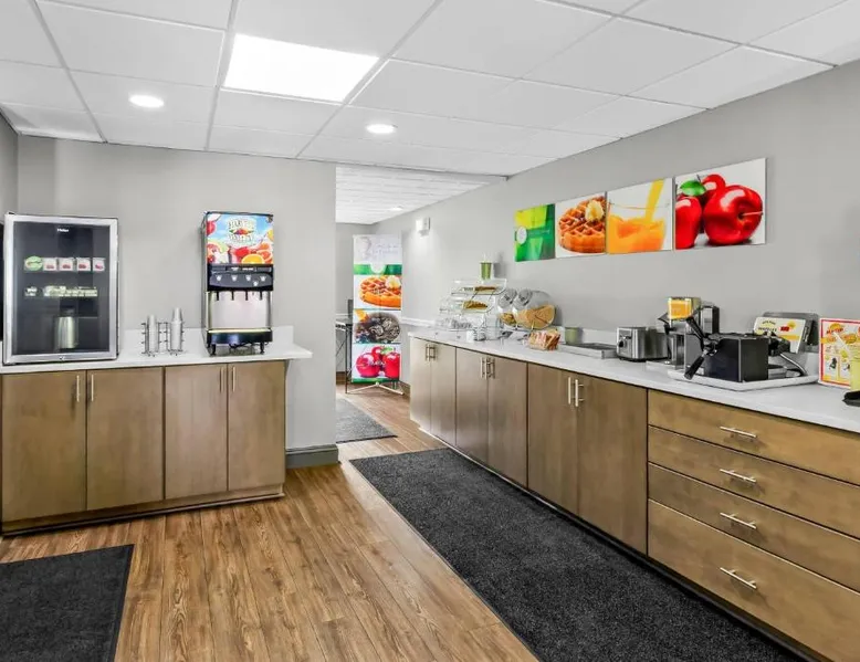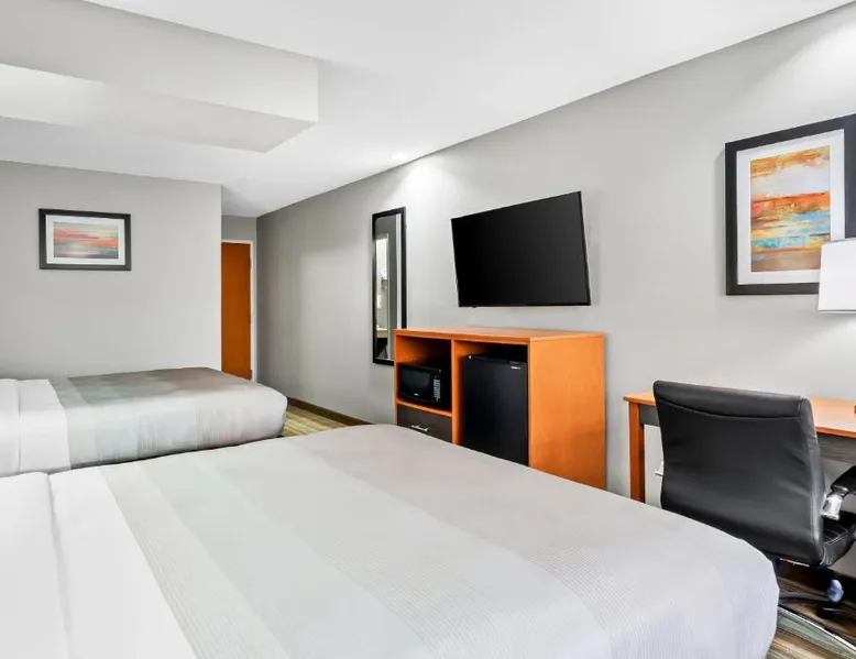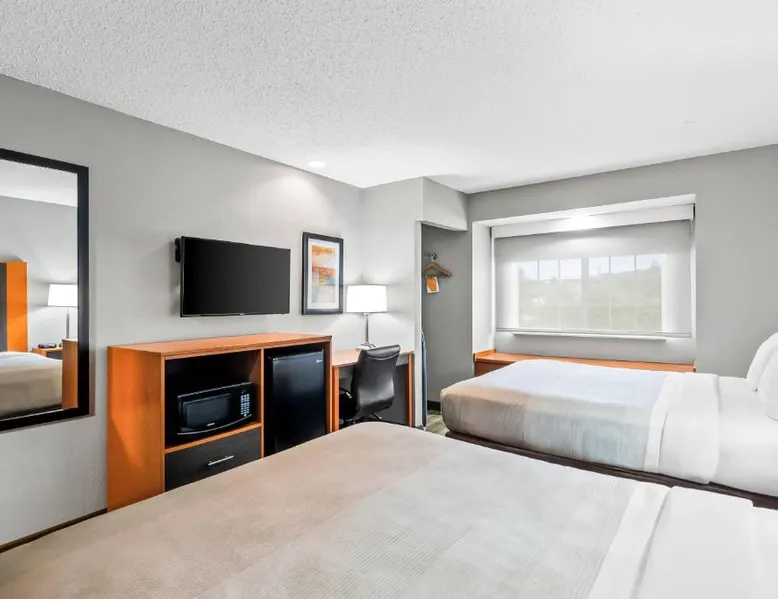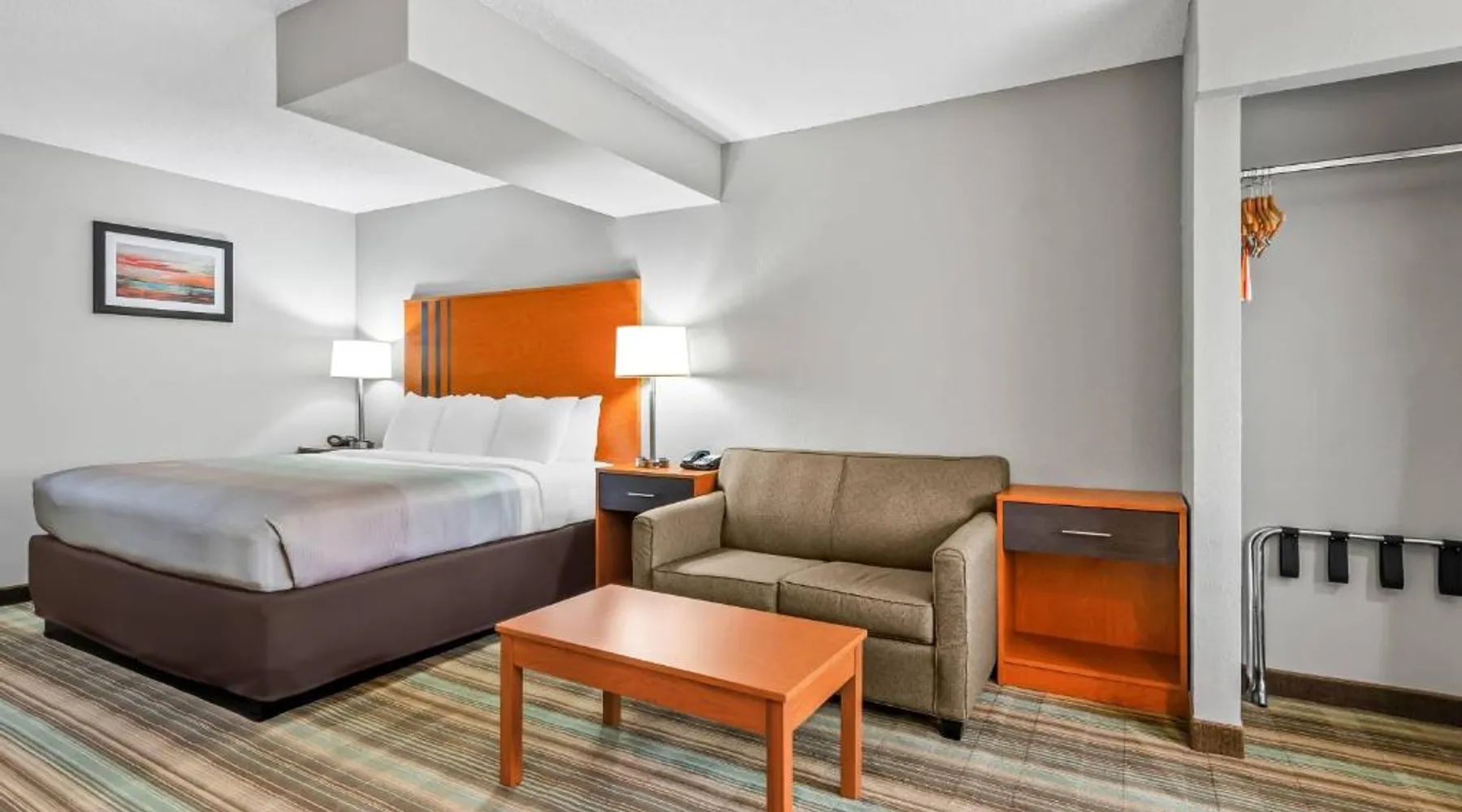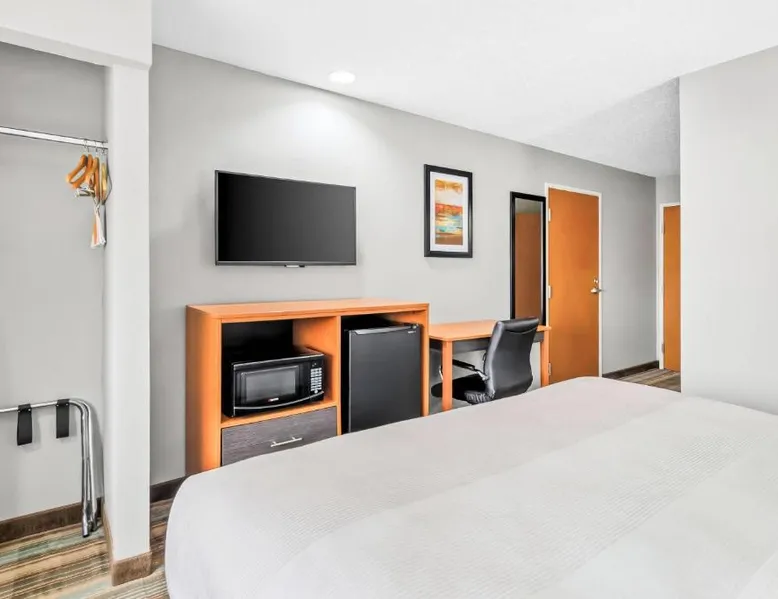 Comfortable Accommodations: Quality Inn & Suites I-81 Exit 7 in Bristol offers comfortable rooms with amenities such as a work desk, refrigerator, microwave, and TV. Each room includes a tea and coffee maker, hairdryer, and free WiFi. Leisure Facilities: Guests can enjoy a rooftop swimming pool, fitness center, and a beautiful garden. The property also features a pool bar and a business area for added convenience. Dining Options: A buffet breakfast is served daily, including juice, fresh pastries, and fruits. The on-site restaurant provides a variety of dining options for guests. Location and Attractions: Located 22 mi from Tri-Cities Regional Airport, the hotel is near Bristol Motor Speedway (14 mi) and Bristol Caverns (11 mi). Guests appreciate the convenient location and excellent service. This suite has a tea and coffee maker, a seating area and a TV with cable channels.