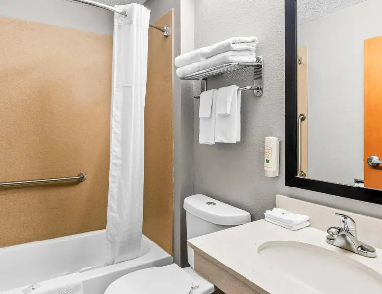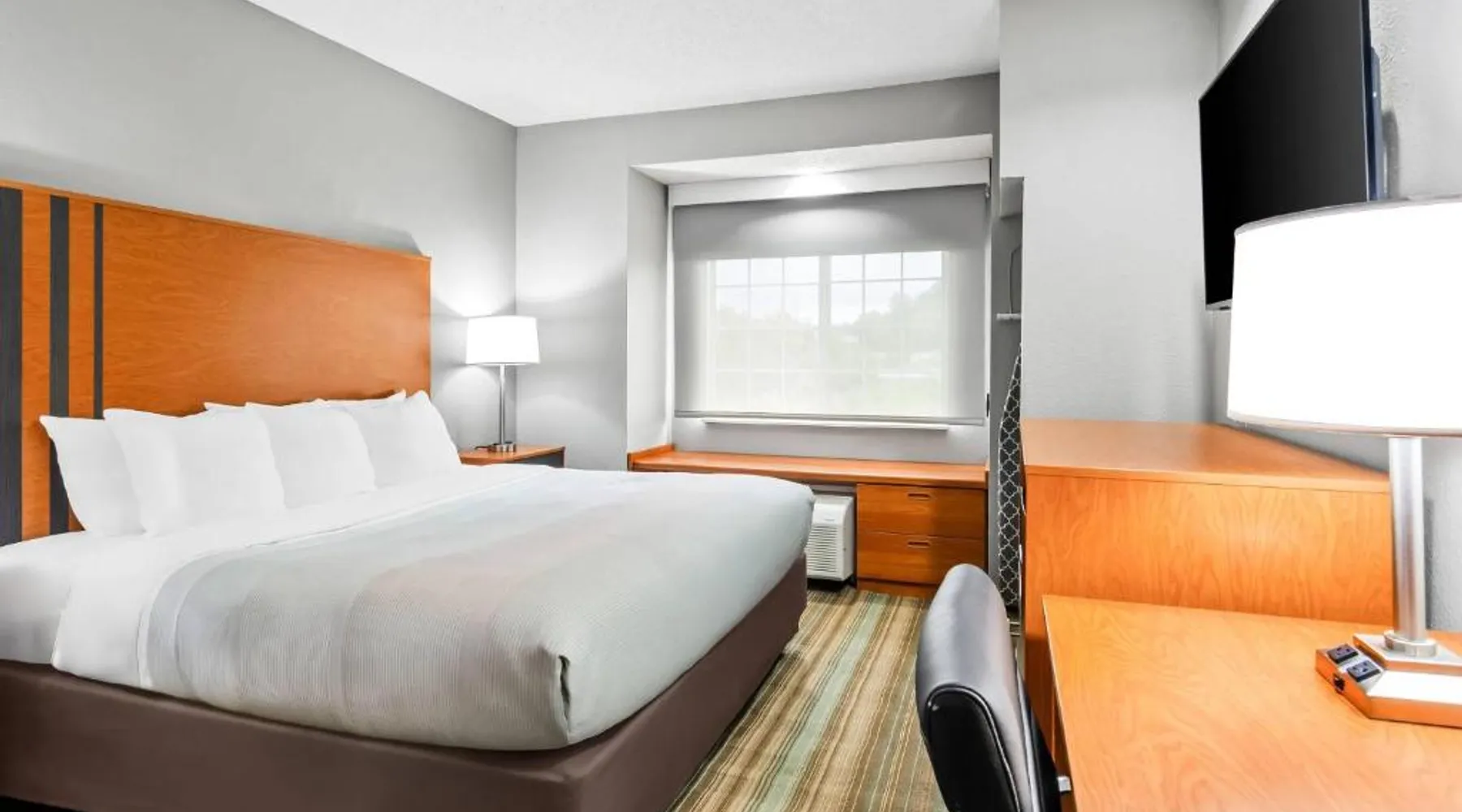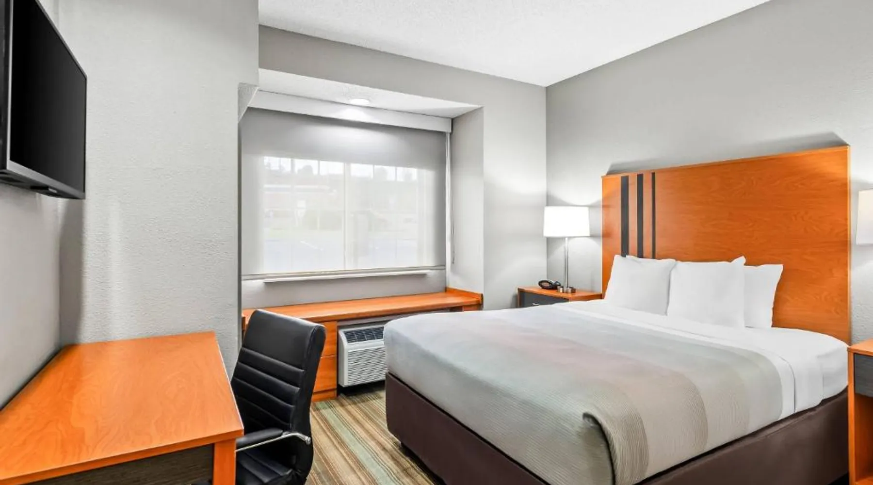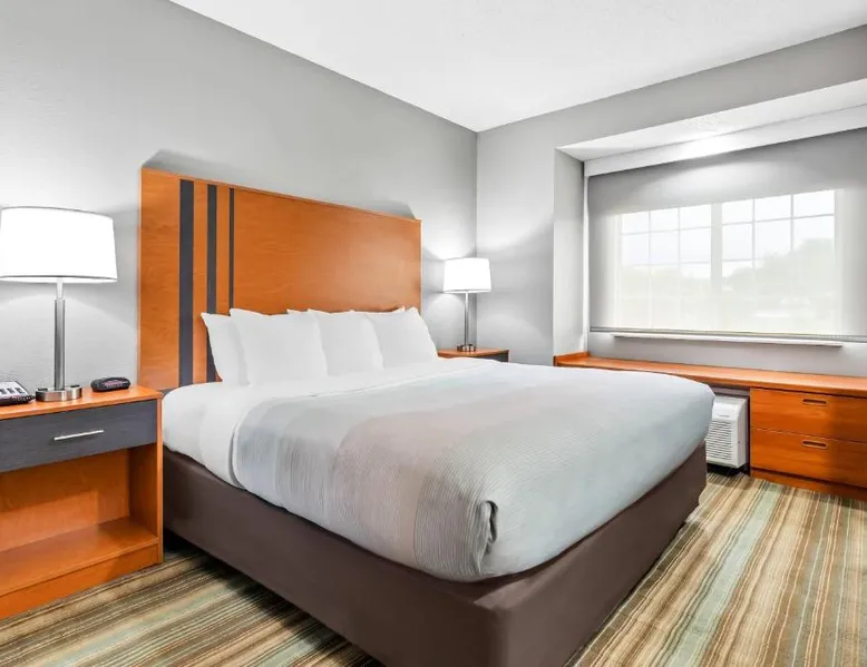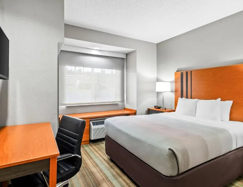 Comfortable Accommodations: Quality Inn & Suites I-81 Exit 7 in Bristol offers comfortable rooms with amenities such as a work desk, refrigerator, microwave, and TV. Each room includes a tea and coffee maker, hairdryer, and free WiFi. Leisure Facilities: Guests can enjoy a rooftop swimming pool, fitness center, and a beautiful garden. The property also features a pool bar and a business area for added convenience. Dining Options: A buffet breakfast is served daily, including juice, fresh pastries, and fruits. The on-site restaurant provides a variety of dining options for guests. Location and Attractions: Located 22 mi from Tri-Cities Regional Airport, the hotel is near Bristol Motor Speedway (14 mi) and Bristol Caverns (11 mi). Guests appreciate the convenient location and excellent service. This suite has a tea and coffee maker, a seating area and a TV with cable channels.