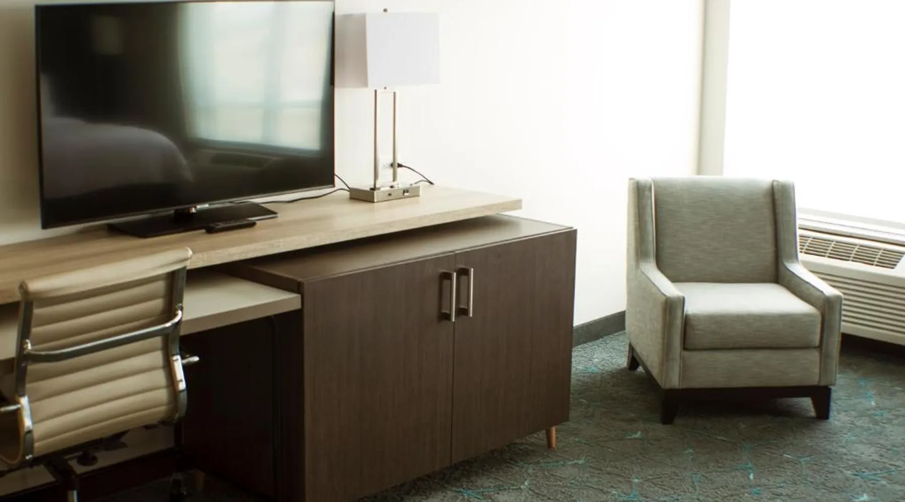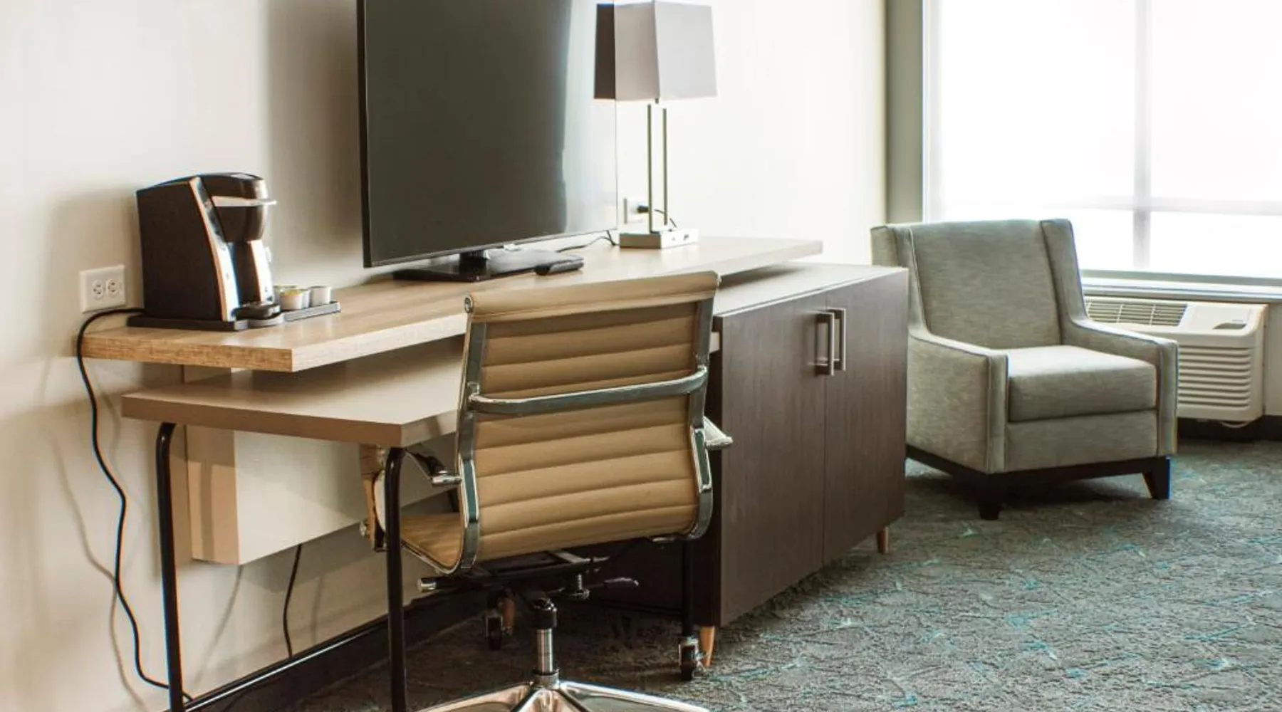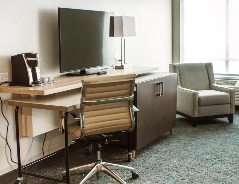 Comfortable Accommodations: Holiday Inn Cookeville by IHG in Cookeville offers rooms with private bathrooms, tea and coffee makers, and free WiFi. Each room includes a work desk, TV, and wardrobe, ensuring a pleasant stay. Exceptional Facilities: Guests can enjoy a fitness center, indoor swimming pool, and restaurant serving American cuisine. Additional amenities include a bar, lounge, and coffee shop, providing ample leisure options. Convenient Location: Located 74 mi from Nashville International Airport, the hotel is near attractions such as Cookeville Depot Museum (2.4 mi) and Cummins Falls State Park (13 mi). Free on-site private parking is available. The spacious double room features a tea and coffee maker, a wardrobe, as well as a private bathroom boasting a walk-in shower and a bath or a shower. This double room has a carpeted floor, heating and a flat-screen TV with satellite channels. The unit has 2 beds.