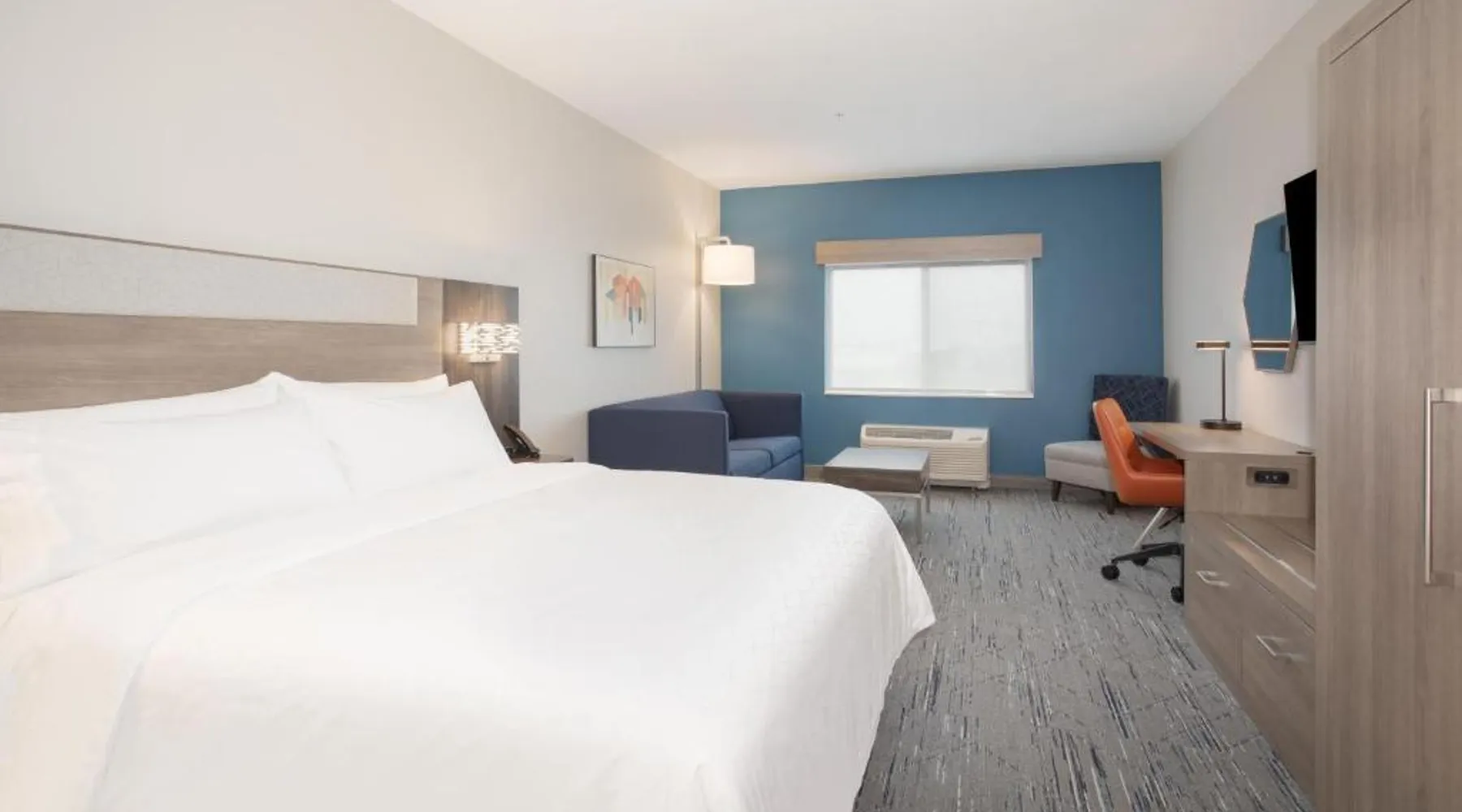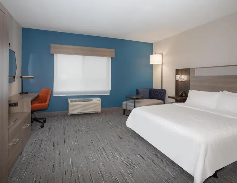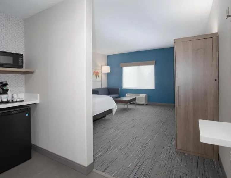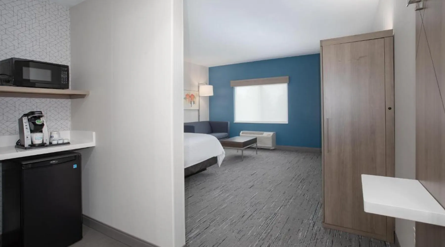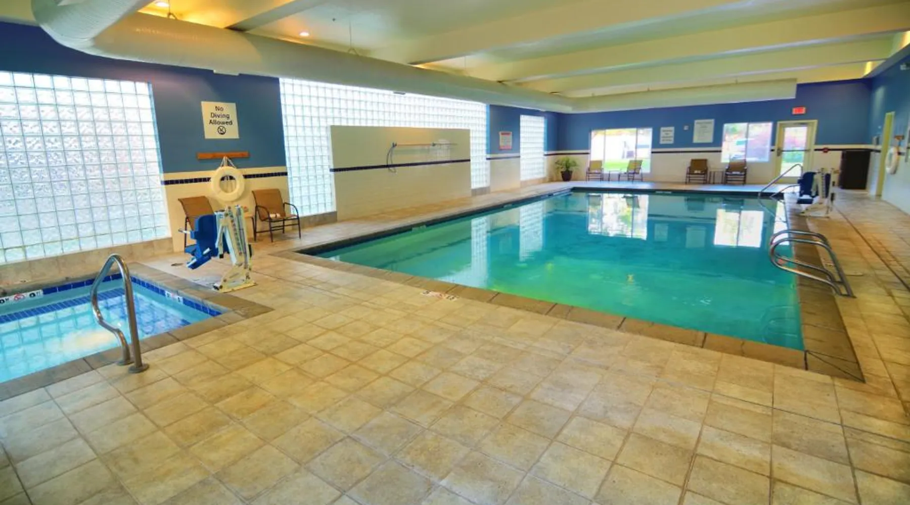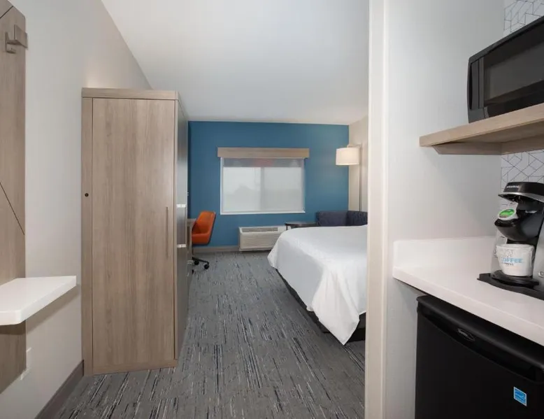 Comfortable Accommodations: Holiday Inn Express Hotel & Suites Idaho Falls by IHG in Idaho Falls offers comfortable rooms with private bathrooms, air-conditioning, and free WiFi. Each room includes a tea and coffee maker, refrigerator, and TV. Leisure Facilities: Guests can enjoy a sun terrace, indoor swimming pool, and hot tub. Additional amenities include a lounge, minimarket, and outdoor seating area. Free on-site parking is available. Dining Options: A continental buffet breakfast is served daily, featuring warm dishes, fresh pastries, pancakes, fruits, and juice. Express check-in and check-out services enhance the stay. Location and Attractions: Located 21 mi from Idaho Falls Regional Airport and 29 mi from Eliza R. Snow Performing Arts Center. Highly rated for breakfast, room cleanliness, and attentive staff. Suite features a microwave, refrigerator and sofa bed.