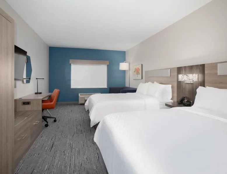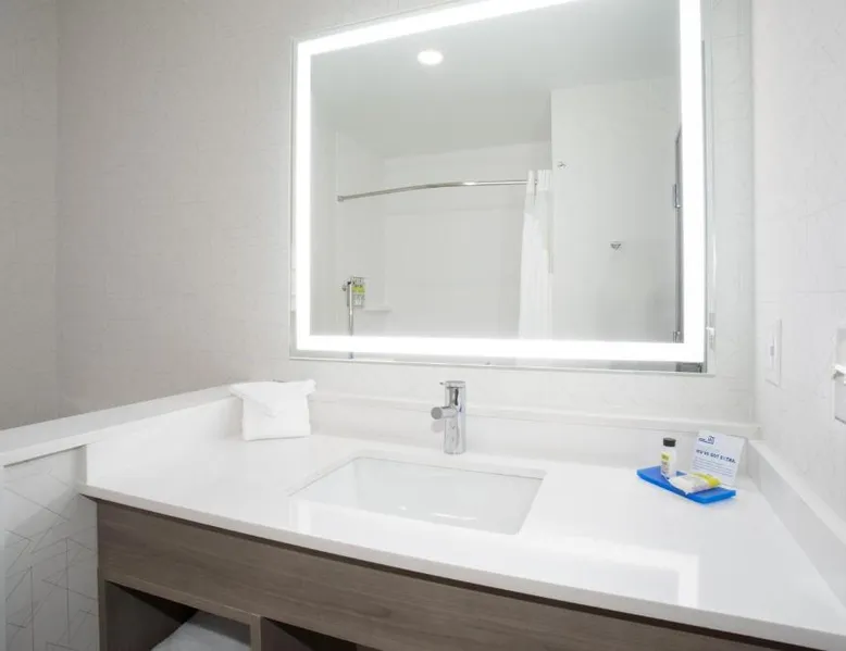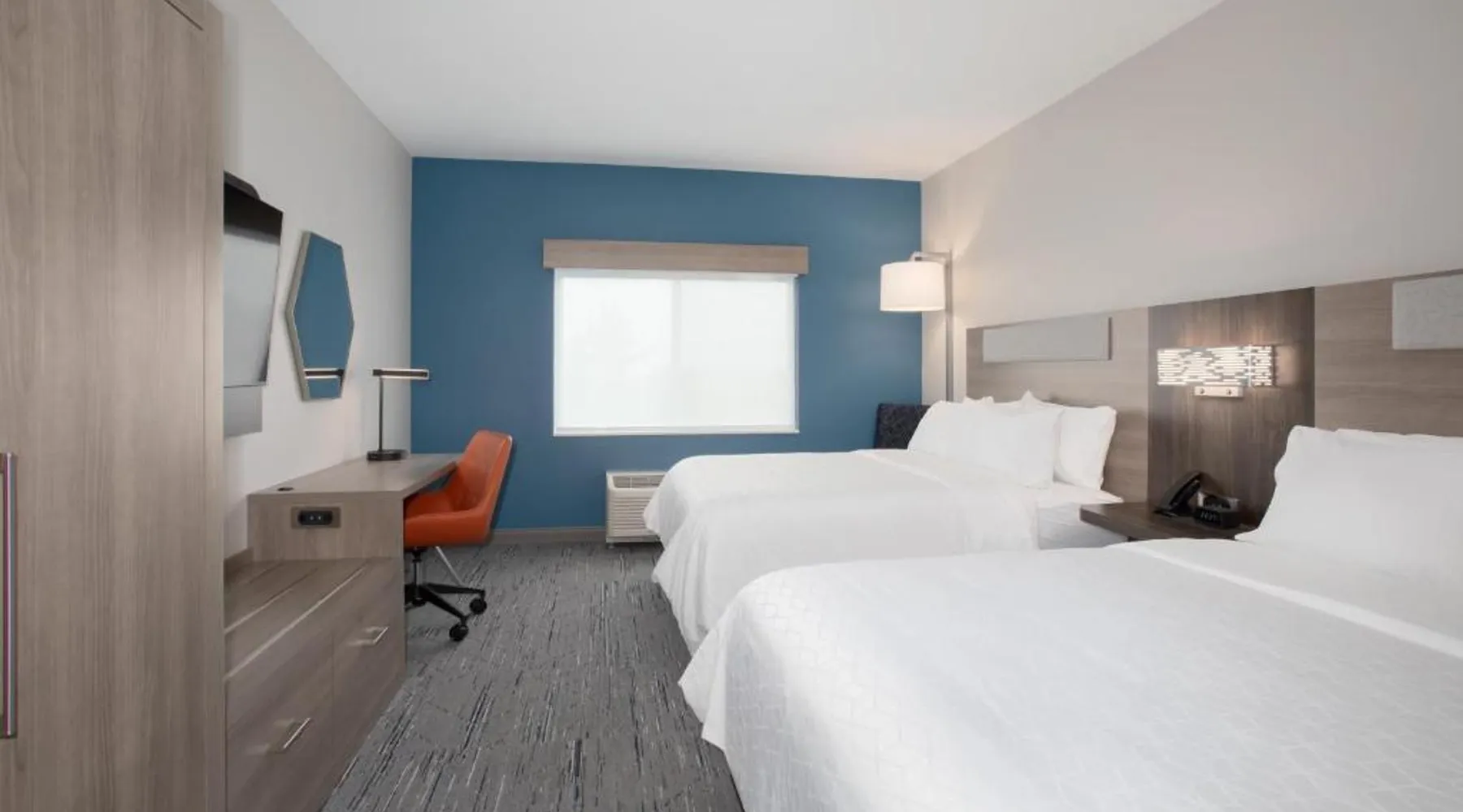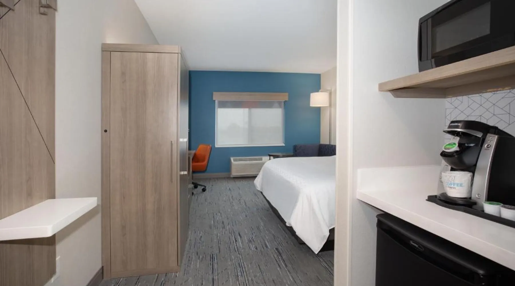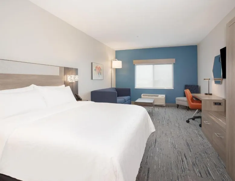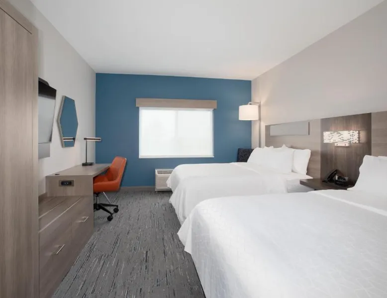 Comfortable Accommodations: Holiday Inn Express Hotel & Suites Idaho Falls by IHG in Idaho Falls offers comfortable rooms with private bathrooms, air-conditioning, and free WiFi. Each room includes a tea and coffee maker, refrigerator, and TV. Leisure Facilities: Guests can enjoy a sun terrace, indoor swimming pool, and hot tub. Additional amenities include a lounge, minimarket, and outdoor seating area. Free on-site parking is available. Dining Options: A continental buffet breakfast is served daily, featuring warm dishes, fresh pastries, pancakes, fruits, and juice. Express check-in and check-out services enhance the stay. Location and Attractions: Located 21 mi from Idaho Falls Regional Airport and 29 mi from Eliza R. Snow Performing Arts Center. Highly rated for breakfast, room cleanliness, and attentive staff. Suite features a microwave, refrigerator and sofa bed.