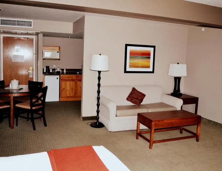 Comfortable Accommodations: Holiday Inn Express & Suites Bozeman West by IHG in Bozeman offers comfortable rooms with air-conditioning, kitchenettes, and private bathrooms. Each room includes a work desk, sofa bed, and free WiFi. Exceptional Facilities: Guests can enjoy a fitness center, indoor swimming pool, and hot tub. Additional amenities include a lounge, minimarket, business area, and outdoor seating and picnic areas. Free on-site private parking is available. Delicious Breakfast: A continental, American, or buffet breakfast is served daily, featuring warm dishes, juice, pancakes, and fruits. Convenient Location: Located 6.2 mi from Bozeman Yellowstone International Airport, the hotel is near attractions such as Yellowstone Glacier Adventures (2.7 mi) and Misco Mill Gallery (3.1 mi). Guests appreciate the airport shuttle, convenient location, and attentive staff. Boasting free Wi-Fi and a flat-screen TV, this suite features a kitchenette.