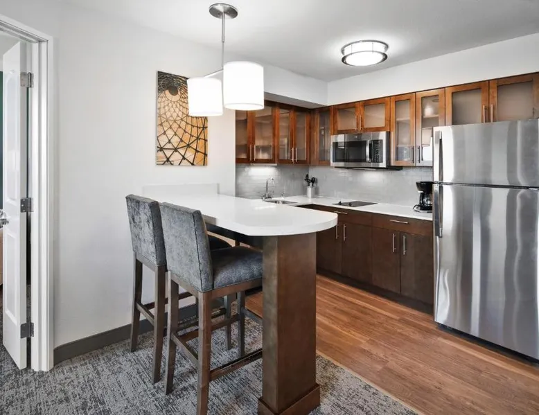 Comfortable Accommodations: Staybridge Suites Irvine - John Wayne Airport by IHG in Irvine offers family rooms with air-conditioning, kitchenettes, and private bathrooms. Each room includes a work desk, sofa bed, and free WiFi. Exceptional Facilities: Guests can enjoy a fitness center, sun terrace, and a year-round outdoor swimming pool. Additional amenities include a lounge, outdoor fireplace, and a games room. Delicious Breakfast: A complimentary American buffet breakfast is served daily, featuring warm dishes, fresh pastries, pancakes, and more. Convenient Location: Located 2.5 mi from John Wayne Airport, the hotel is near attractions such as South Coast Plaza (4.3 mi) and Disneyland (11 mi). Free on-site private parking is available. The suite provides a sofa, parquet floors, as well as a private bathroom boasting a shower and a hairdryer. Meals can be prepared in the kitchen, which is fitted with a stovetop, a refrigerator, a dishwasher and kitchenware. The spacious air-conditioned suite offers a flat-screen TV with cable channels, a tea and coffee maker, a seating area and a dining area. The unit has 2 beds.