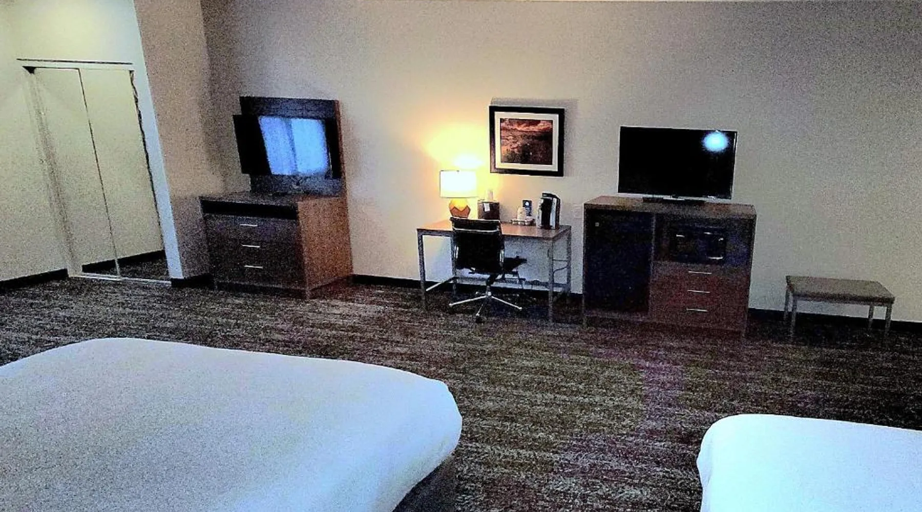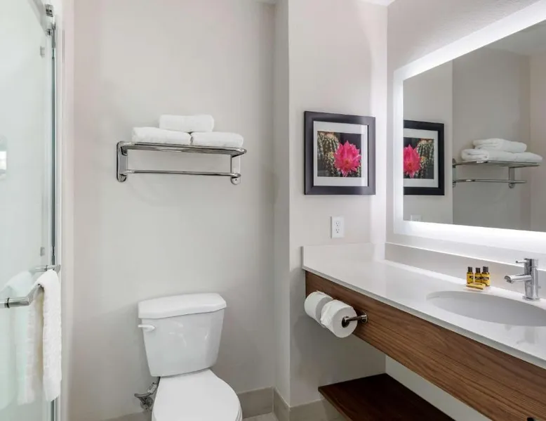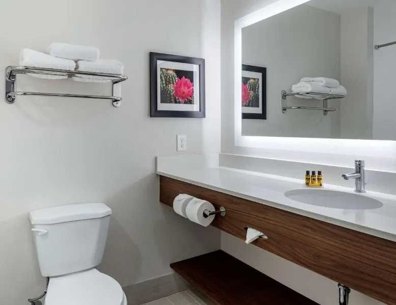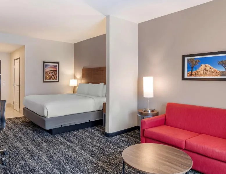 Comfortable Accommodations: Rooms feature air-conditioning, private bathrooms, and modern amenities including a refrigerator, microwave, and free WiFi. Additional comforts include a sofa bed, work desk, and TV. Leisure Facilities: Guests can relax by the heated pool or enjoy the on-site fitness center. The property offers a hot tub and spa services for added relaxation. Dining Options: A complimentary American breakfast is served daily. The hotel also provides a coffee machine and tea maker for added convenience. Convenient Location: Located in Cathedral City, the hotel is 6.2 mi from Palm Springs International Airport. Nearby attractions include Oasis Water Park (6.2 mi) and Escena Golf Club (7.5 mi). Highly rated for room cleanliness and excellent service. The unit has 2 beds.