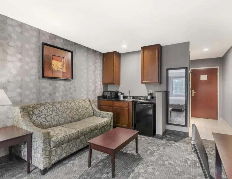 This hotel is 2 mile from downtown Concord and one mile from the Capitol Center for the Arts. The hotel offers an indoor pool and rooms with free Wi-Fi. Best Western Concord Inn and Suites rooms include a microwave and refrigerator. The rooms also have a coffee maker and satellite TV. Guests at the Concord Inn and Suites Best Western are provided with a daily breakfast. After breakfast, guests can work out in the gym and then relax in the hot tub. The Best Western is a 25 minute drive from downtown Manchester, which features shopping and dining. The New Hampshire International Speedway is 15 miles from the hotel. The spacious suite provides a tea and coffee maker, a wardrobe, a carpeted floor, heating, as well as a TV with cable channels.
