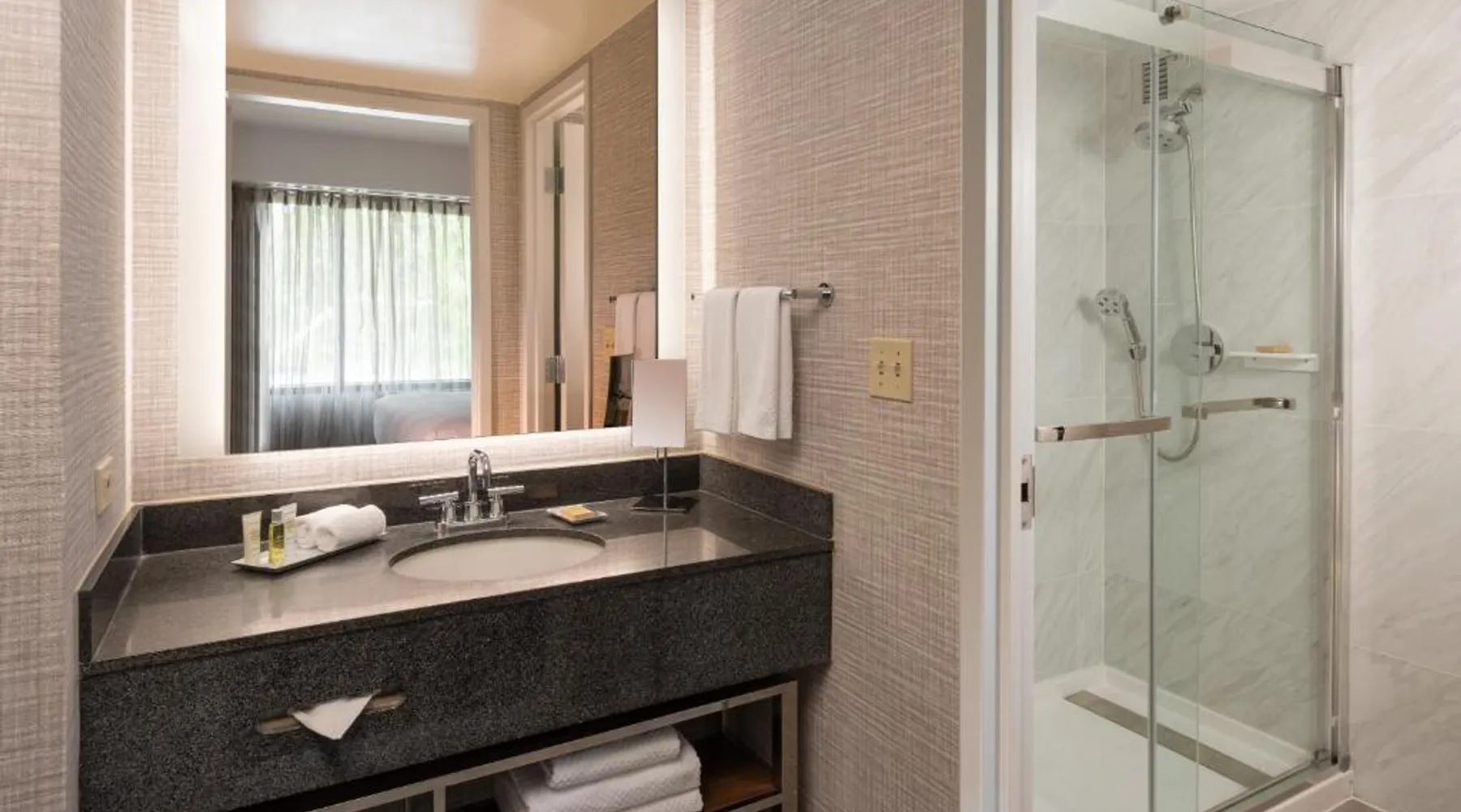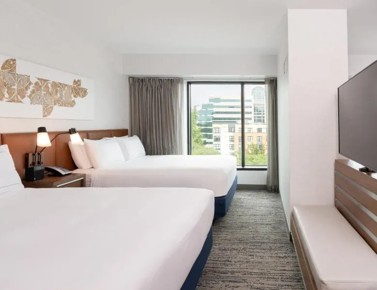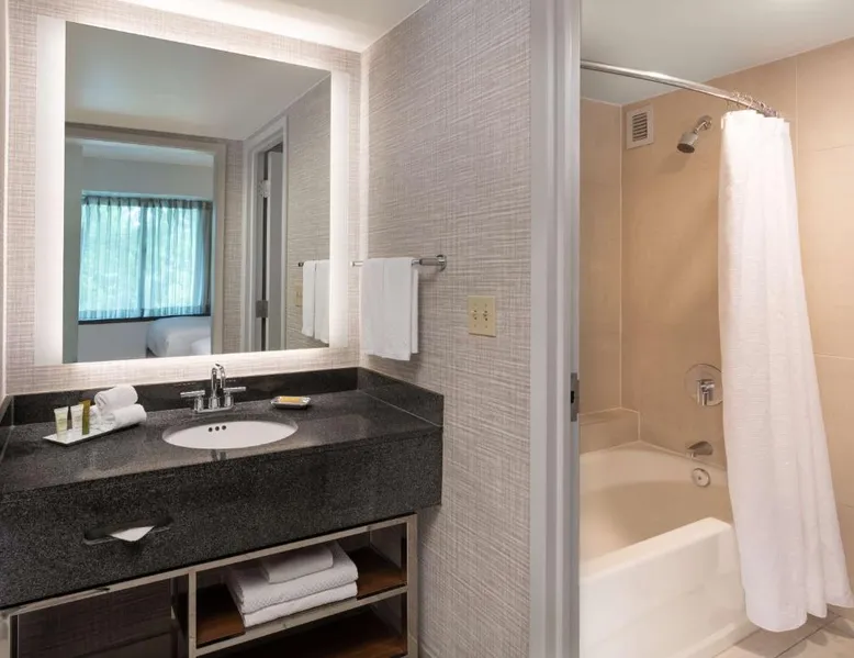 Located just off Interstate 66, this Fairfax, Virginia hotel features on-site dining and jogging paths. Dulles International Airport is 10 miles away. Each room at the Hilton Fairfax, Va features a flat-screen cable TV. The rooms include an iPod docking station and an private bathroom. Some rooms have a sofa bed. Guests can visit the fitness center at the Hilton Fairfax, Va. The business center is available 24-hours and WiFi is accessible throughout the hotel. The Nova Grill serves breakfast, lunch, and dinner, while the market offers grab-and-go options. George Mason University is 15 minutes’ drive from the hotel. The Penderbrook Golf Club is 3 miles away. The spacious quadruple room provides air conditioning, a tea and coffee maker, heating, as well as a flat-screen TV. The unit offers 1 bed.