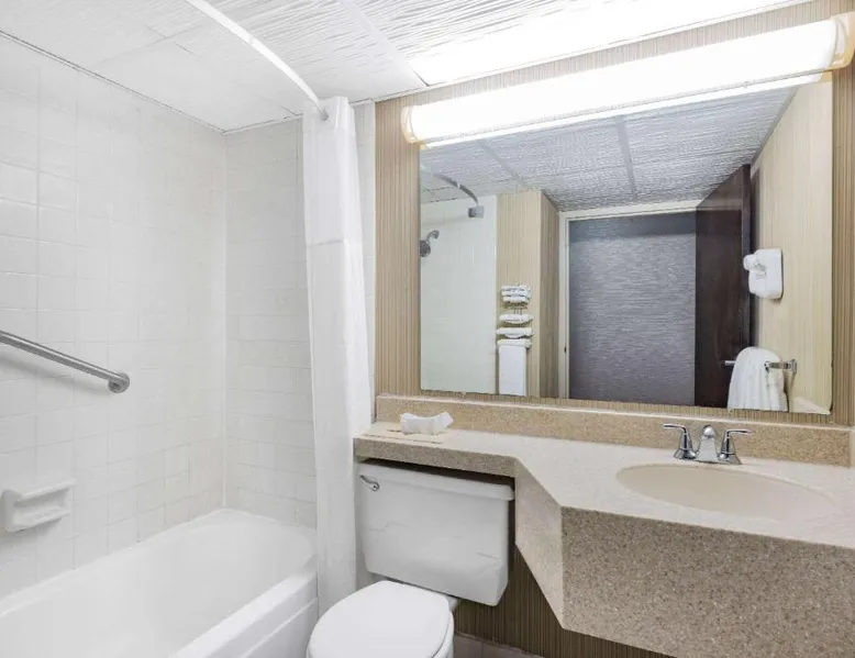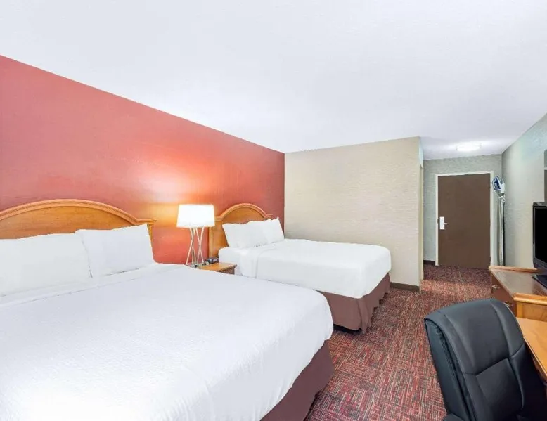 Comfortable Accommodations: Rooms feature air-conditioning, private bathrooms, tea and coffee makers, and free WiFi. Additional amenities include work desks, free toiletries, and flat-screen TVs. Leisure Facilities: Guests can enjoy a fitness center, indoor swimming pool, and hot tub. The property offers a bar, casino, and games room for entertainment. Dining Options: A continental buffet breakfast is served with fresh pastries and juice. The on-site restaurant provides a child-friendly buffet and outdoor seating area. Location and Attractions: Located 3.7 mi from Grand Forks International Airport and 1.9 mi from the University of North Dakota. Nearby attractions include fishing and cycling. Providing free toiletries, this double room includes a private bathroom with a bath, a shower and a hairdryer. The spacious air-conditioned double room provides a flat-screen TV with cable channels, a tea and coffee maker, a wardrobe, a carpeted floor as well as pool views. The unit offers 2 beds.