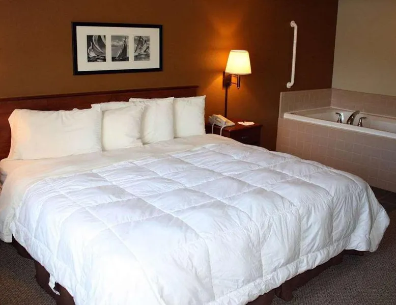 Comfortable Accommodations: AmericInn by Wyndham Charlevoix in Charlevoix offers air-conditioned rooms with private bathrooms. Each room includes a bath and free WiFi, ensuring a pleasant stay. Leisure Facilities: Guests can relax on the sun terrace or in the garden. The hotel features an indoor swimming pool, hot tub, and lounge. Free on-site private parking is available. Dining Experience: A continental breakfast with warm dishes is served daily. The property staff provide excellent service support, enhancing the guest experience. Local Attractions: Located 35 mi from Pellston Regional Airport, the hotel is near Andrew J. Blackbird Museum (24 mi) and Monument Golf Course (22 mi). An ice-skating rink is also in the vicinity. The suite offers air conditioning, as well as a private bathroom boasting a bath or a shower.