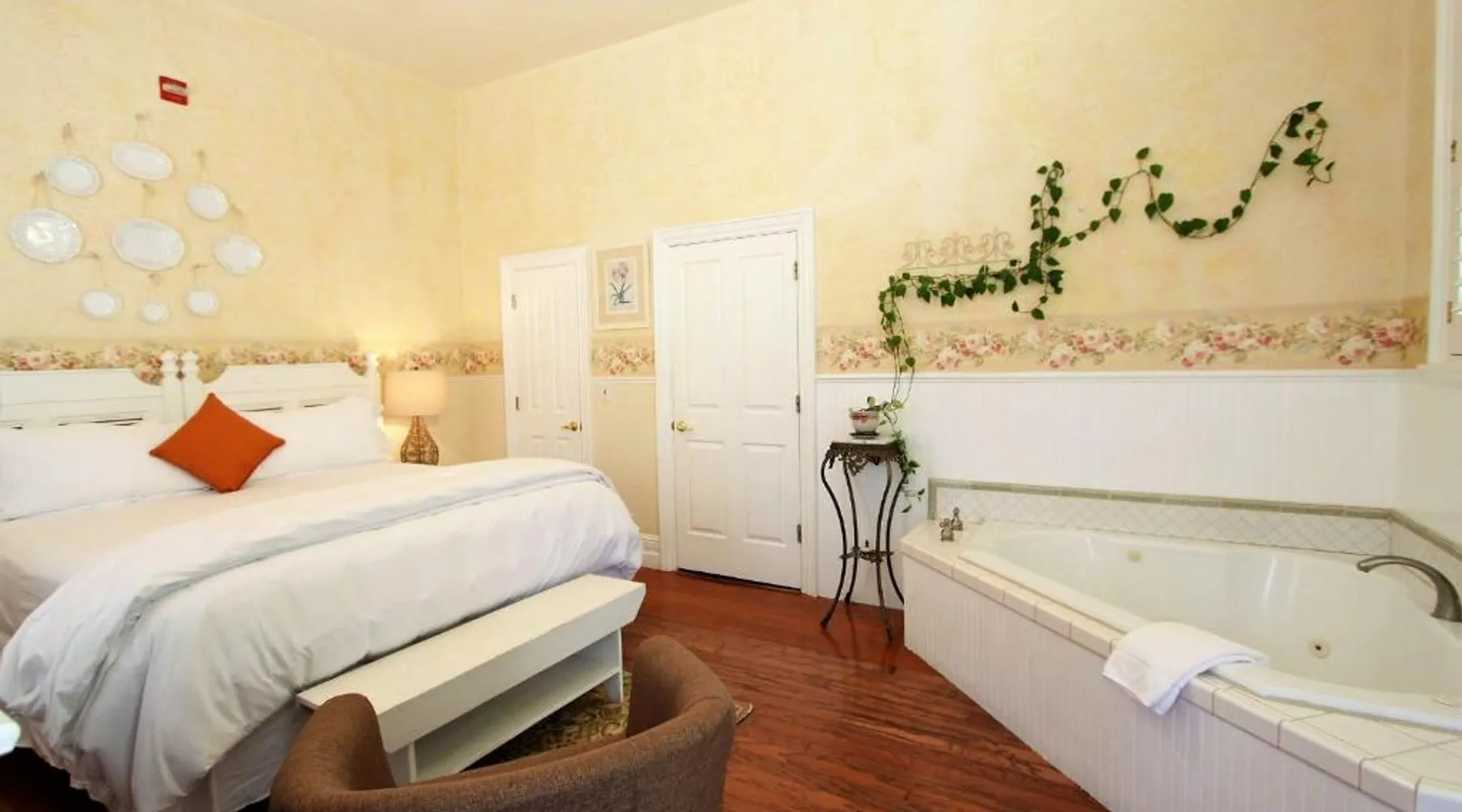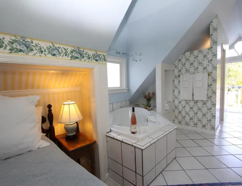 Located one mile from the Wine Train and Oxbow Public Market, this Napa B&B offers on-site spa services. Guests can relax and socialize with an evening wine reception. Free Wi-Fi is available in each suite. Each luxurious suite at The Napa Inn features cable TV and a DVD player. Guests can have flower arrangements and wine delivered to their suite for an additional charge. Served in the dining room or on the outdoor terrace, guests can enjoy a breakfast of apricot shortbread or vegetable quiche. Other items including homemade granola, sticky buns and fruit are available. The Napa Inn is a 15 minute walk from Opera House Uptown Theater. Buoncristiani Family Winery is just steps away. Known as Angelina's Garden Room, this suite has a DVD player, bathrobe and CD player.