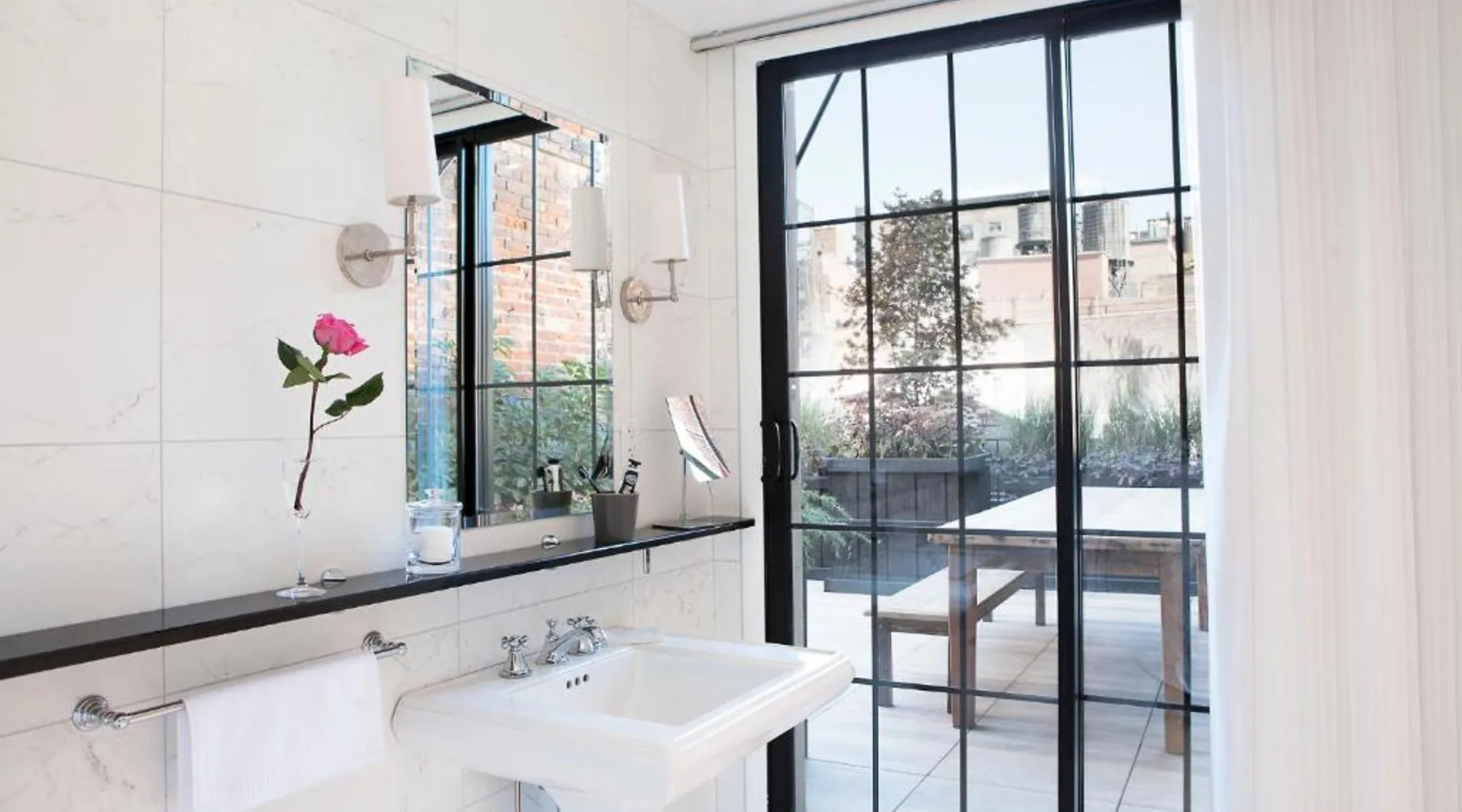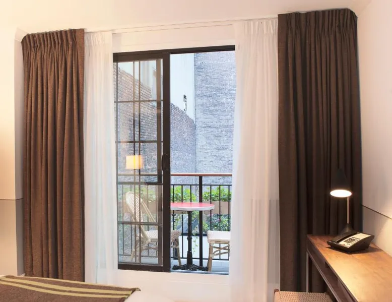 Featuring an open-air Moroccan-tiled courtyard, this 14 room boutique hotel is located in Manhattan's SoHo neighborhood. Free WiFi access is available. The Broome was constructed in a Federal Revivalist style in 1825 and was home to a graffiti artist commune in the 1980's. Each room at The Broome will provide you with a flat-screen cable TV, luxury Bellino bed linen and a work desk. Private bathrooms feature a bathrobe, hairdryer and complimentary toiletries made especially for the hotel. At The Broome you will find a 24-hour front desk. Guests are offered complimentary bottled water and chocolate upon arrival. Other amenities offered at the property include meeting facilities and daily housekeeping services. Complimentary continental breakfast is offered daily. The Prince Street underground station is a short walk from the property. Union Square is 2 underground stops away and Times Square is 7 underground stops away. Shopping and dining in SoHo, Little Italy and Chinatown are all within 10 minutes' walk of The Broome. Newark Liberty International Airport is 9.9 mi away. This room features views of Manhattan's SoHo neighborhood.