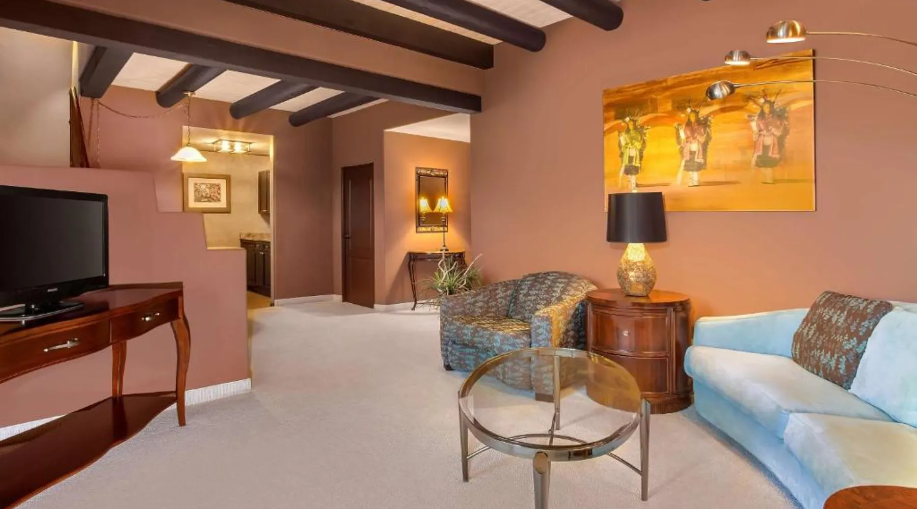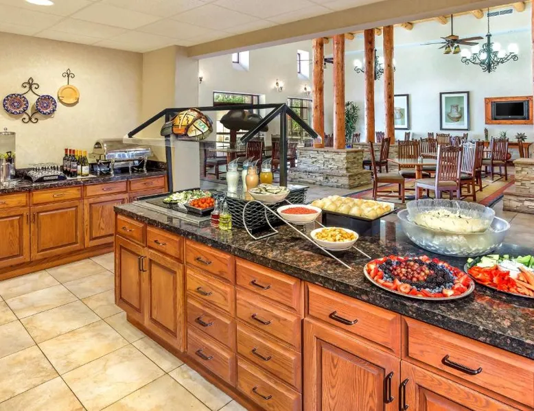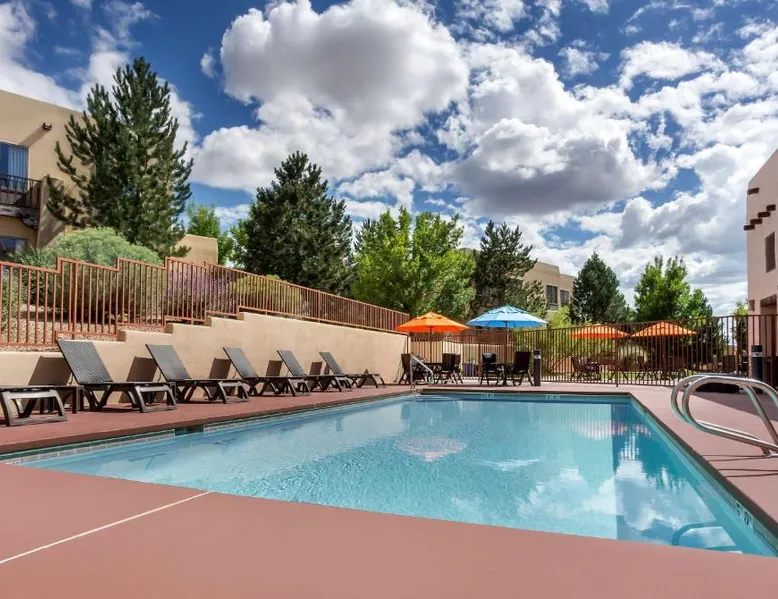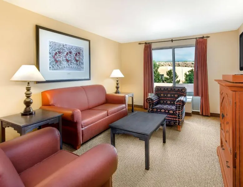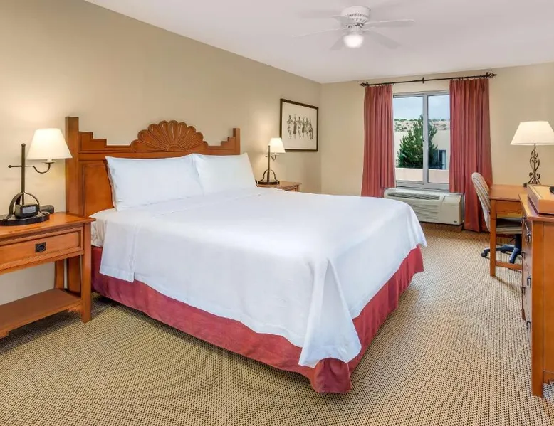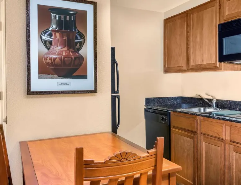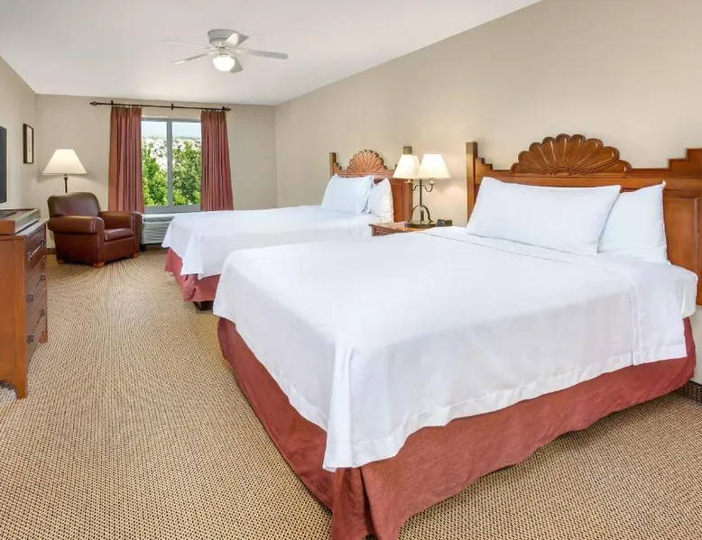 Comfortable Accommodations: Homewood Suites by Hilton Santa Fe-North in Pojoaque offers family rooms with air-conditioning, refrigerators, microwaves, and kitchenware. Each room includes a work desk, sofa bed, and free toiletries. Leisure Facilities: Guests can relax on the sun terrace or swim in the seasonal outdoor pool. The hotel features a fitness room, outdoor seating area, and free on-site parking. Dining Options: A continental buffet breakfast is served daily, including juice, fresh pastries, cheese, and fruits. The property also offers a minimarket for added convenience. Nearby Attractions: Located 22 mi from Santa Fe Municipal Airport, the hotel is close to Cities Of Gold Casino (2.9 mi), Santa Fe Opera (11 mi), and Georgia O'Keeffe Museum (14 mi). In the well-equipped kitchen, guests will find a stovetop, a refrigerator, a dishwasher and kitchenware. The spacious air-conditioned suite offers a TV, a tea and coffee maker, a seating area and heating. The unit has 4 beds.