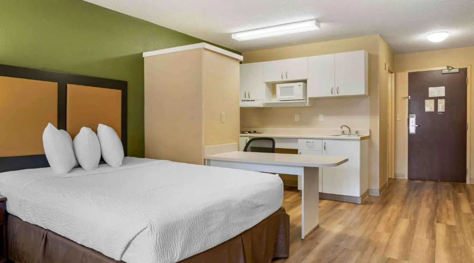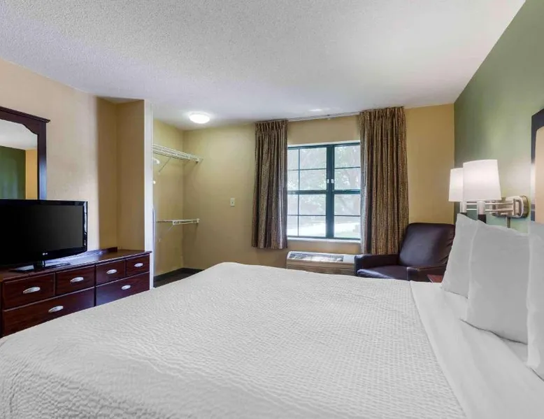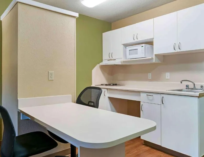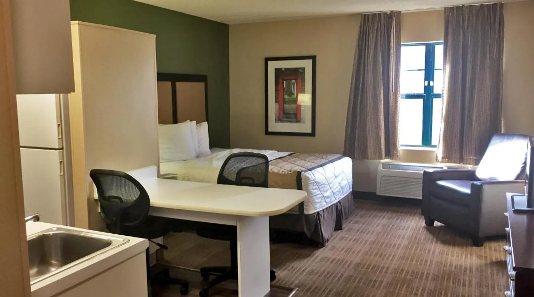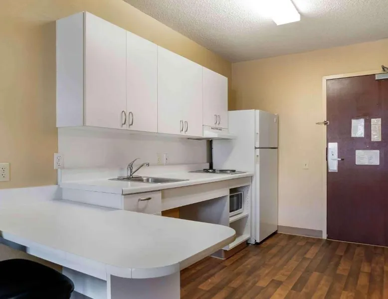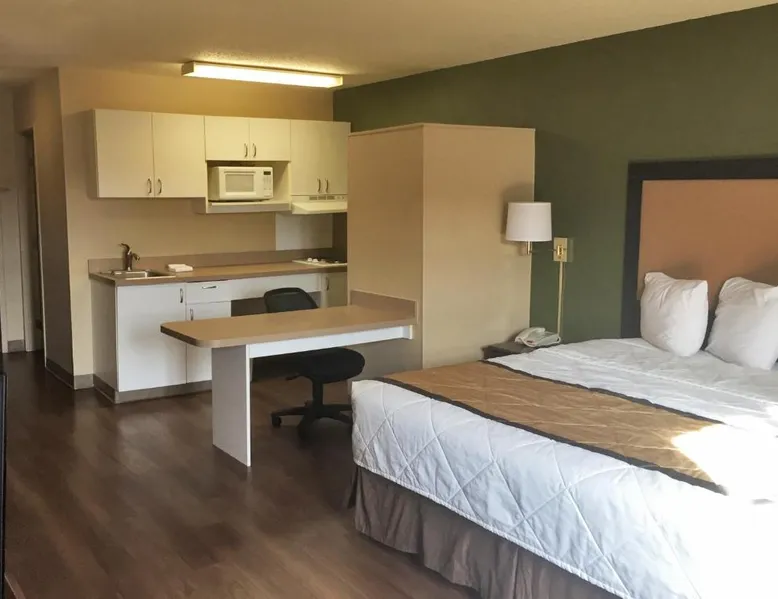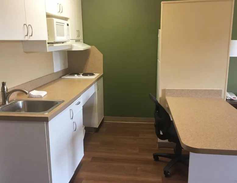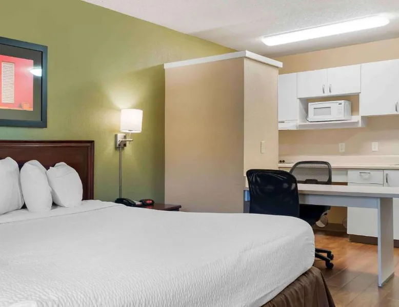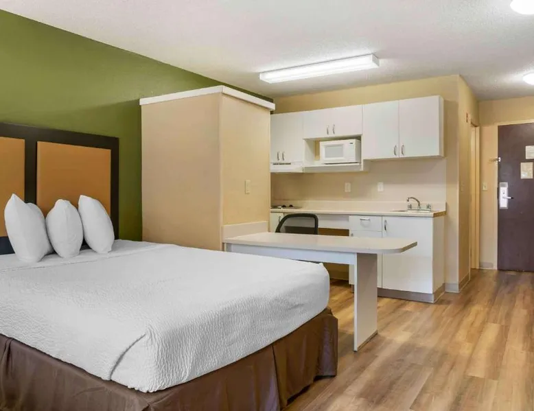 Comfortable Accommodations: Extended Stay America Select Suites - Detroit - Novi - Haggerty Road in Novi offers family rooms with air-conditioning, private bathrooms, and fully equipped kitchens. Each room includes a work desk, TV, and free toiletries. Essential Facilities: Guests enjoy free WiFi, a elevator, bicycle parking, and free on-site private parking. Additional amenities include a dining area, microwave, and stovetop. Convenient Location: Located 19 mi from Detroit Metro Airport, the hotel is near attractions such as Detroit Golf Club (17 mi) and TCF Center (27 mi). Guests appreciate the room cleanliness, attentive staff, and convenient location. 1 King Bed, kitchen, dining and work area, non-smoking