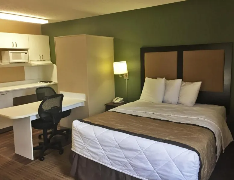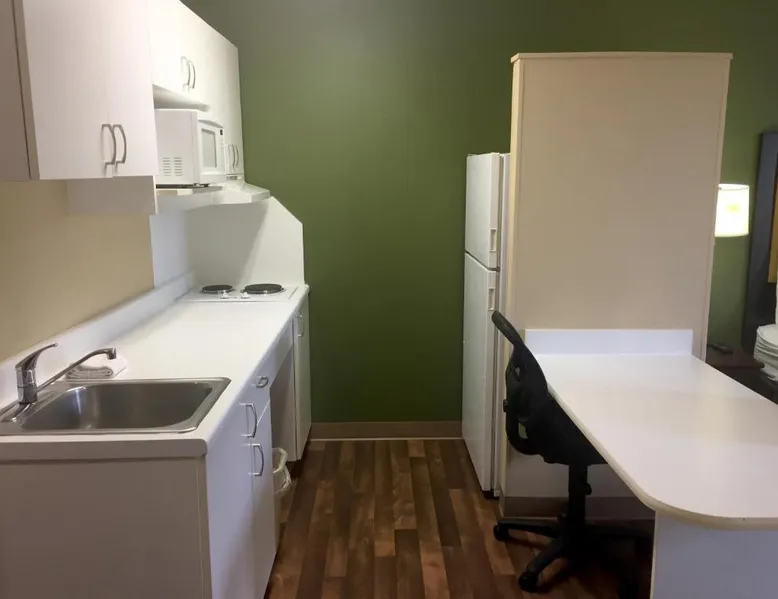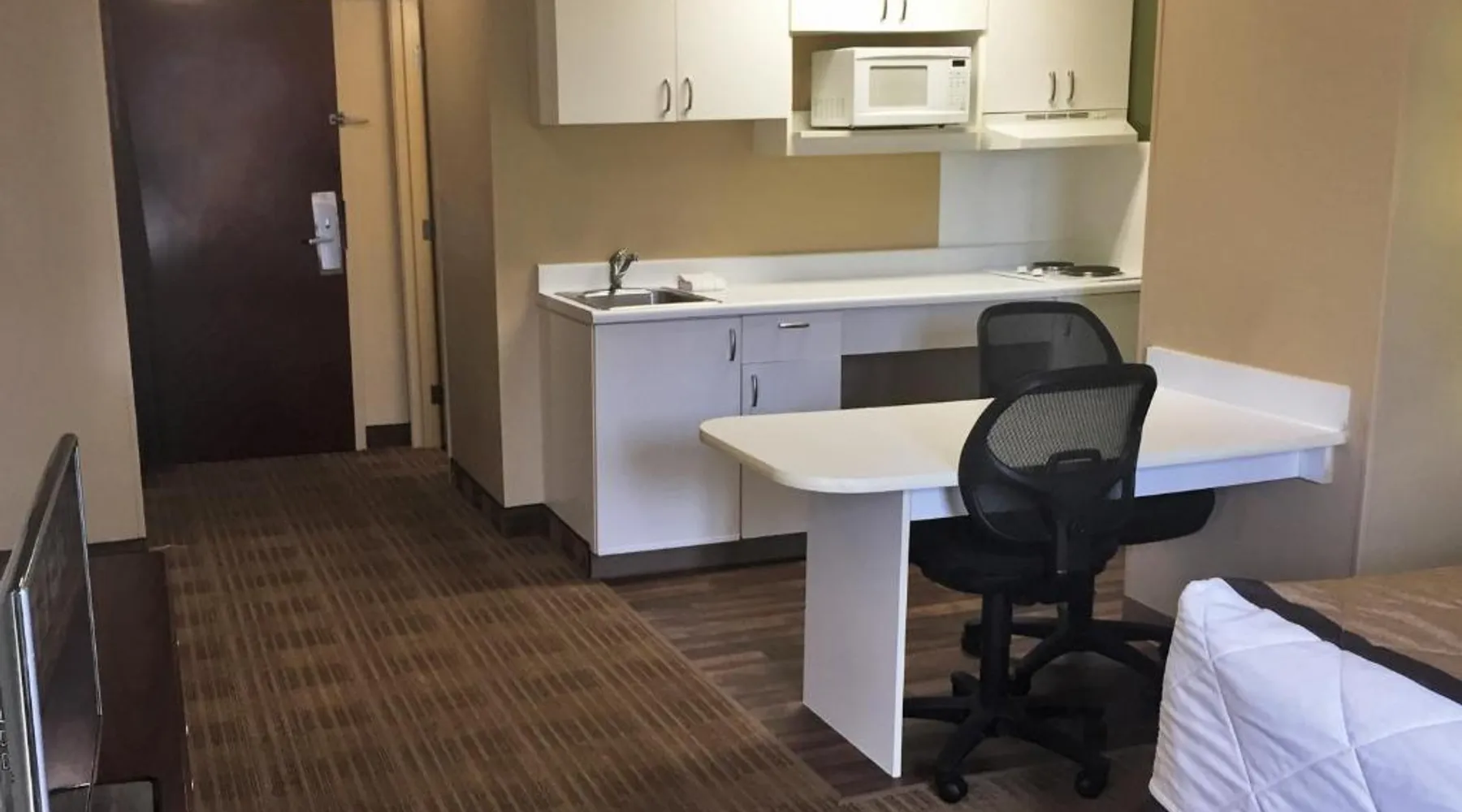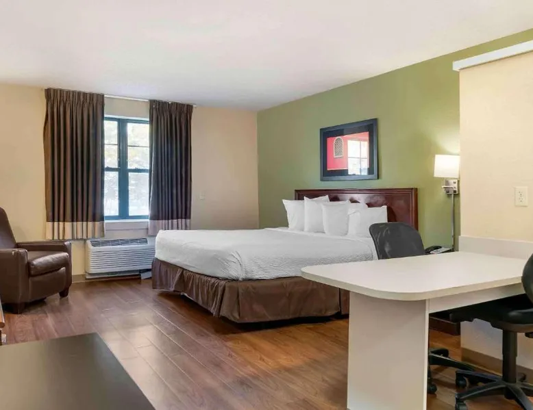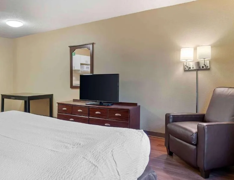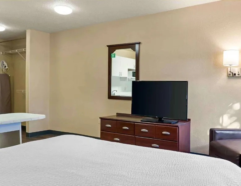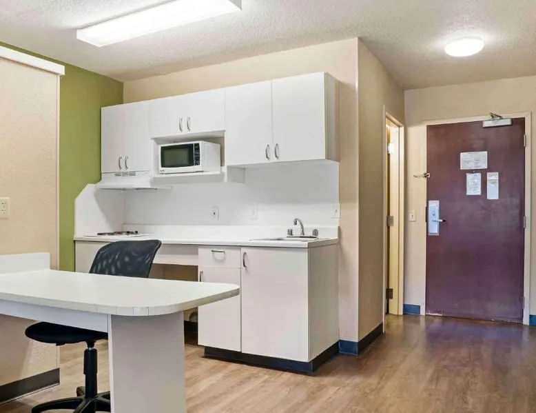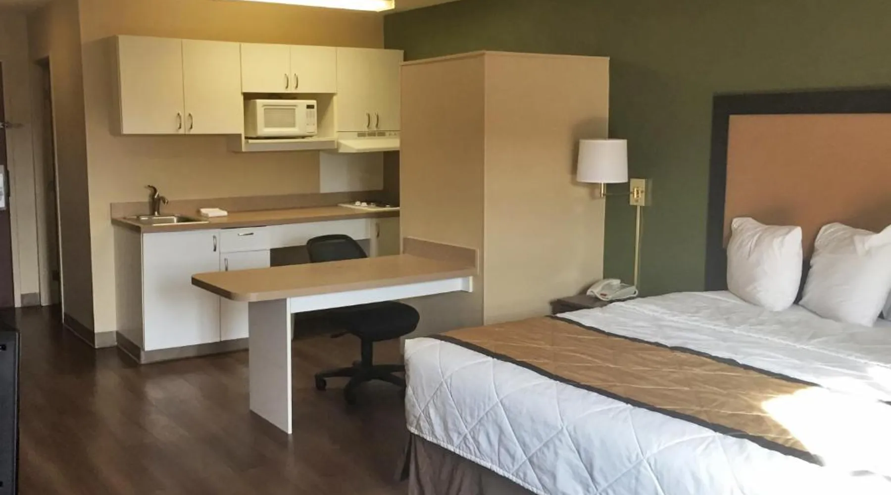 Comfortable Accommodations: Extended Stay America Select Suites - Detroit - Novi - Haggerty Road in Novi offers family rooms with air-conditioning, private bathrooms, and fully equipped kitchens. Each room includes a work desk, TV, and free toiletries. Essential Facilities: Guests enjoy free WiFi, a elevator, bicycle parking, and free on-site private parking. Additional amenities include a dining area, microwave, and stovetop. Convenient Location: Located 19 mi from Detroit Metro Airport, the hotel is near attractions such as Detroit Golf Club (17 mi) and TCF Center (27 mi). Guests appreciate the room cleanliness, attentive staff, and convenient location. 1 King Bed, kitchen, dining and work area, non-smoking