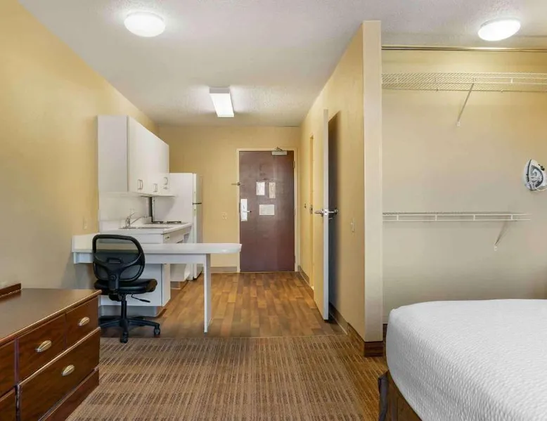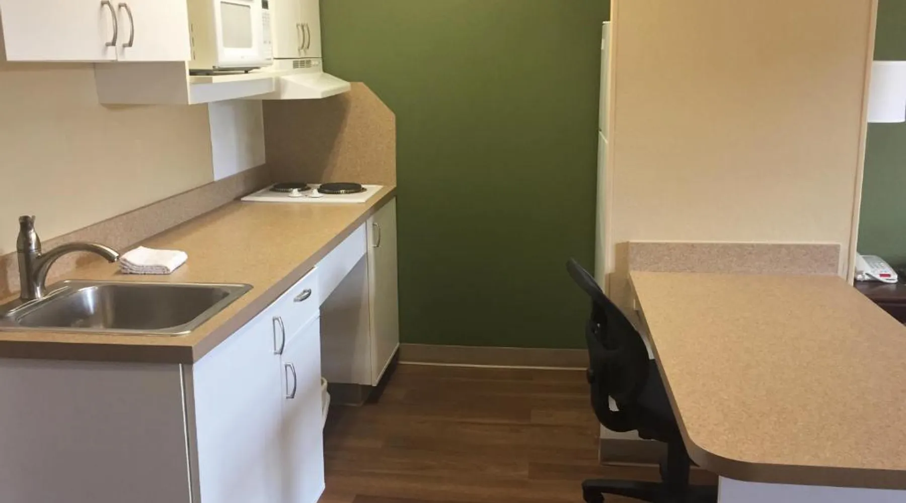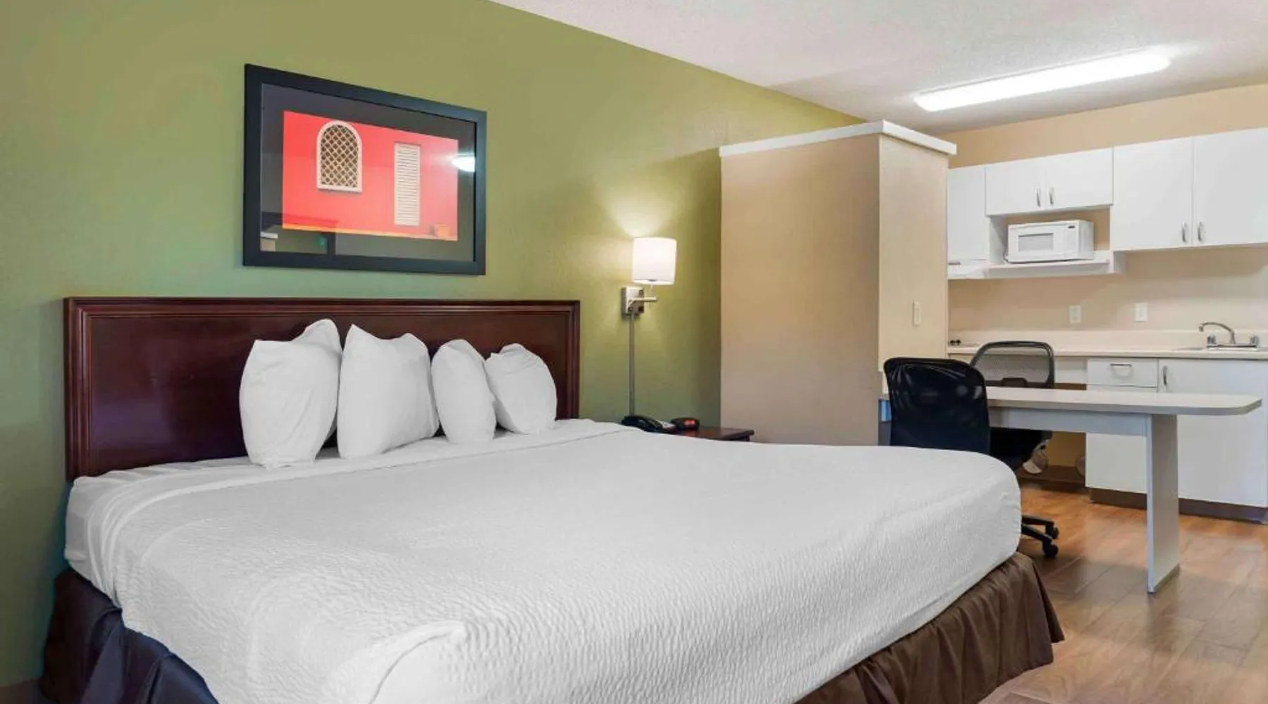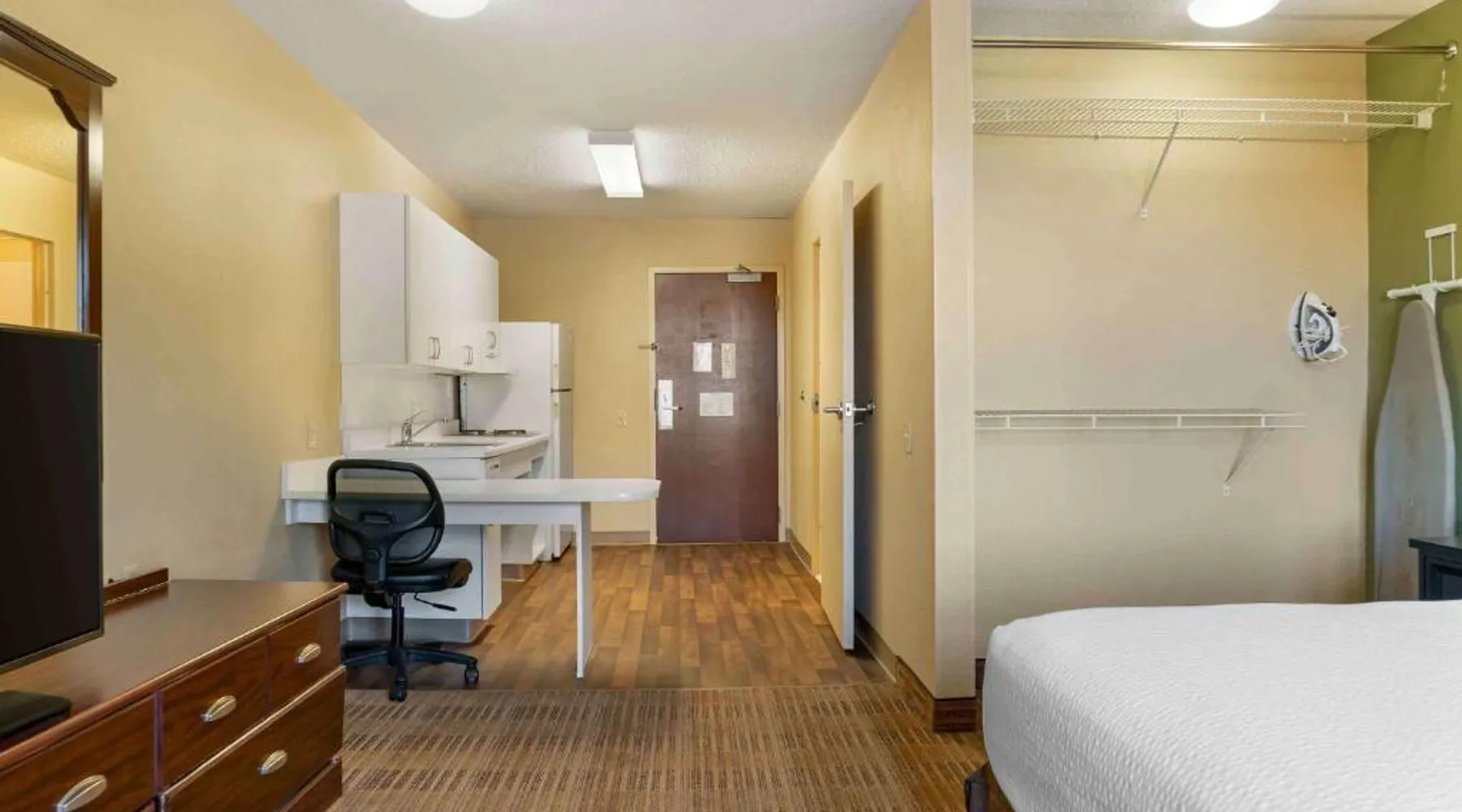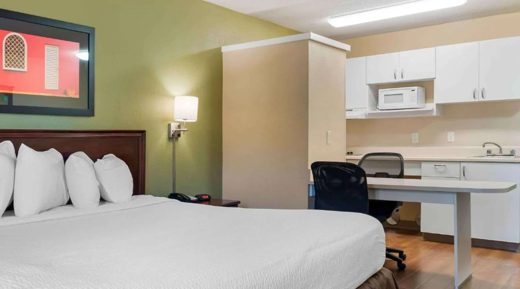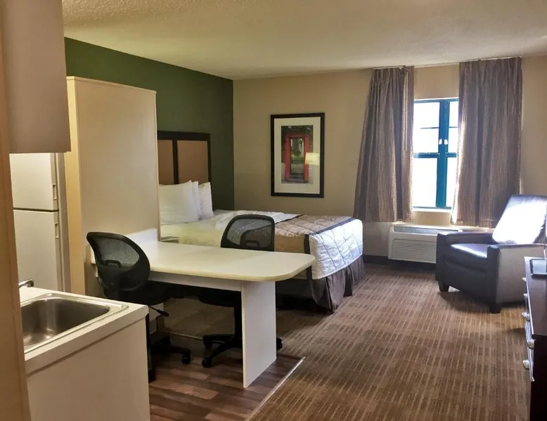 Comfortable Accommodations: Extended Stay America Select Suites - Detroit - Novi - Haggerty Road in Novi offers family rooms with air-conditioning, private bathrooms, and fully equipped kitchens. Each room includes a work desk, TV, and free toiletries. Essential Facilities: Guests enjoy free WiFi, a elevator, bicycle parking, and free on-site private parking. Additional amenities include a dining area, microwave, and stovetop. Convenient Location: Located 19 mi from Detroit Metro Airport, the hotel is near attractions such as Detroit Golf Club (17 mi) and TCF Center (27 mi). Guests appreciate the room cleanliness, attentive staff, and convenient location. 1 King Bed, kitchen, dining and work area, non-smoking