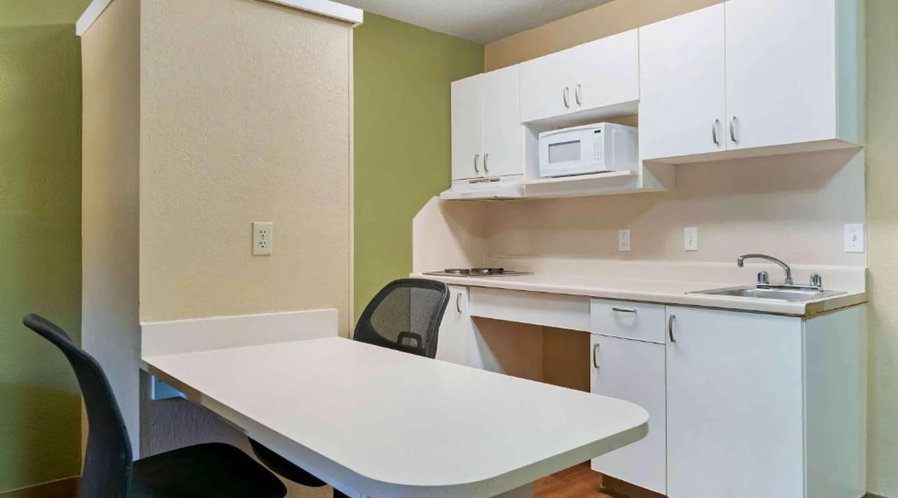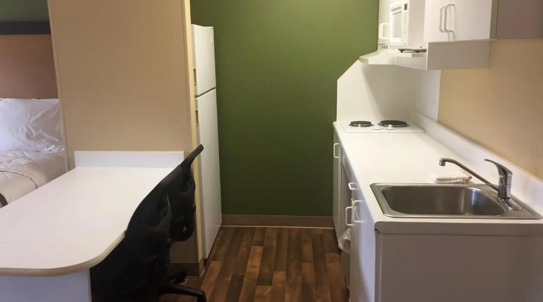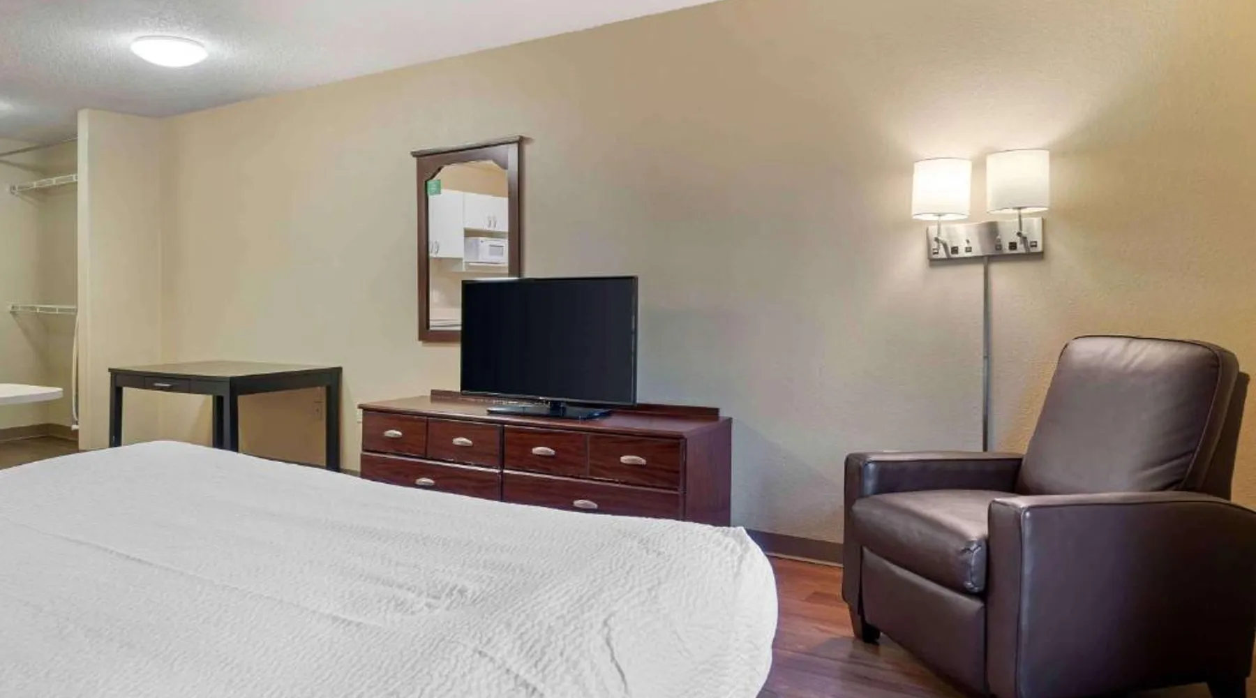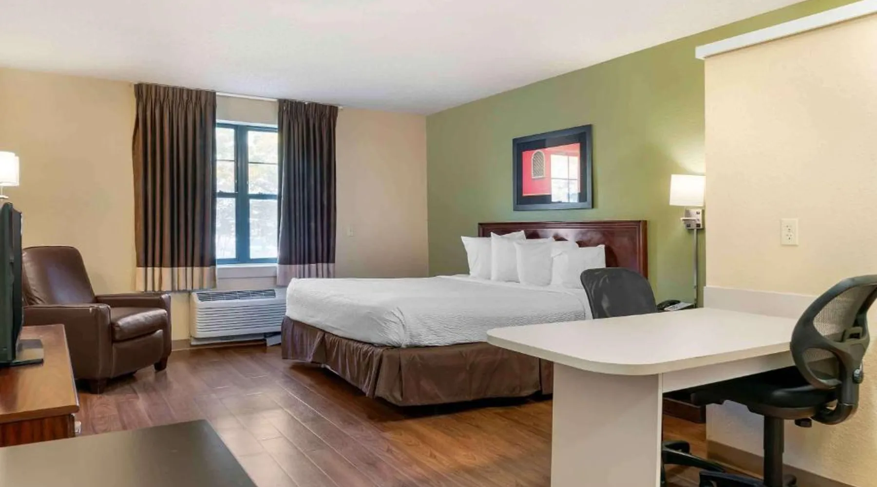 Comfortable Accommodations: Extended Stay America Select Suites - Detroit - Novi - Haggerty Road in Novi offers family rooms with air-conditioning, private bathrooms, and fully equipped kitchens. Each room includes a work desk, TV, and free toiletries. Essential Facilities: Guests enjoy free WiFi, a elevator, bicycle parking, and free on-site private parking. Additional amenities include a dining area, microwave, and stovetop. Convenient Location: Located 19 mi from Detroit Metro Airport, the hotel is near attractions such as Detroit Golf Club (17 mi) and TCF Center (27 mi). Guests appreciate the room cleanliness, attentive staff, and convenient location. 1 King Bed, kitchen, dining and work area, non-smoking