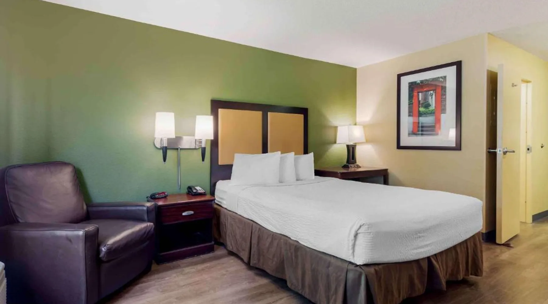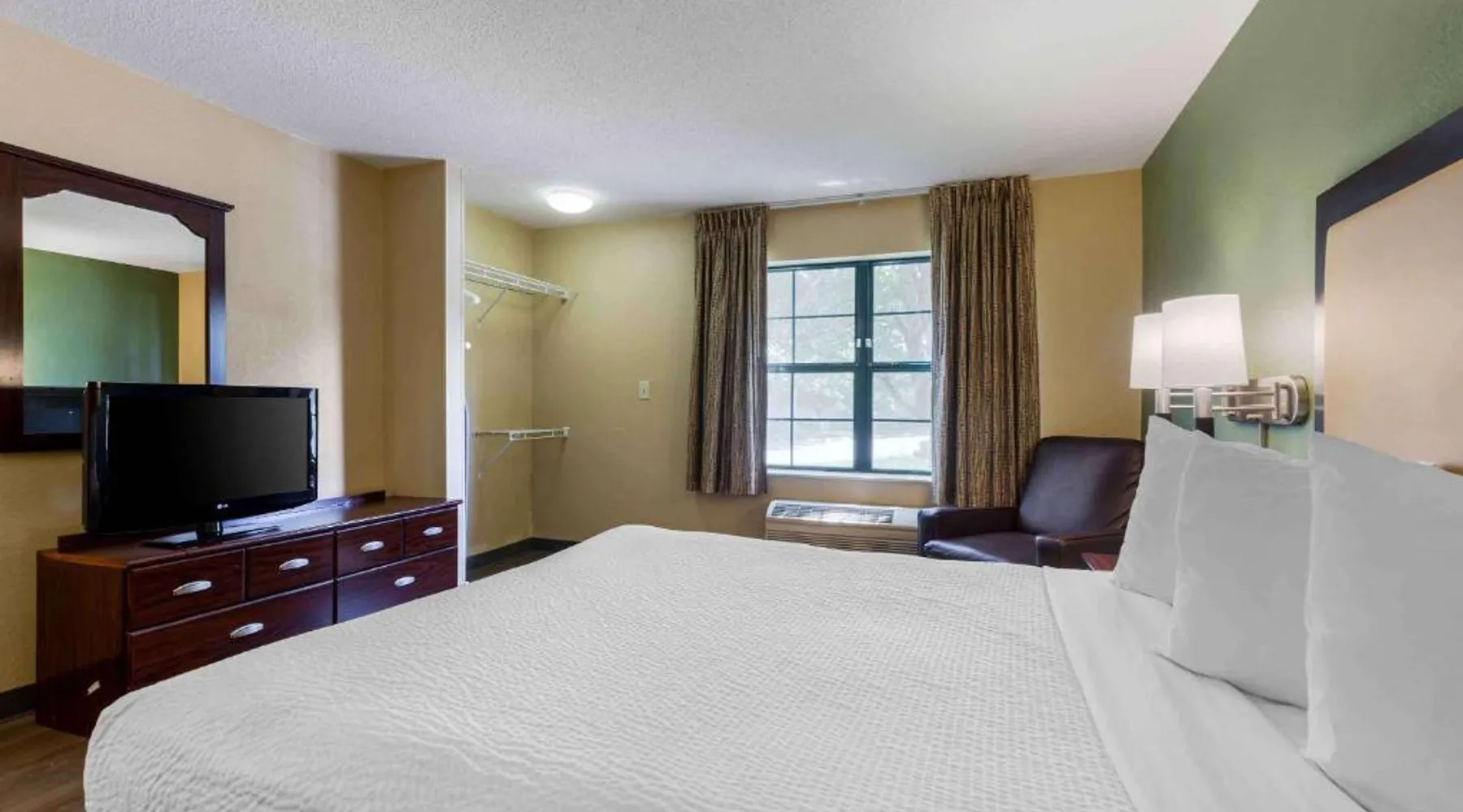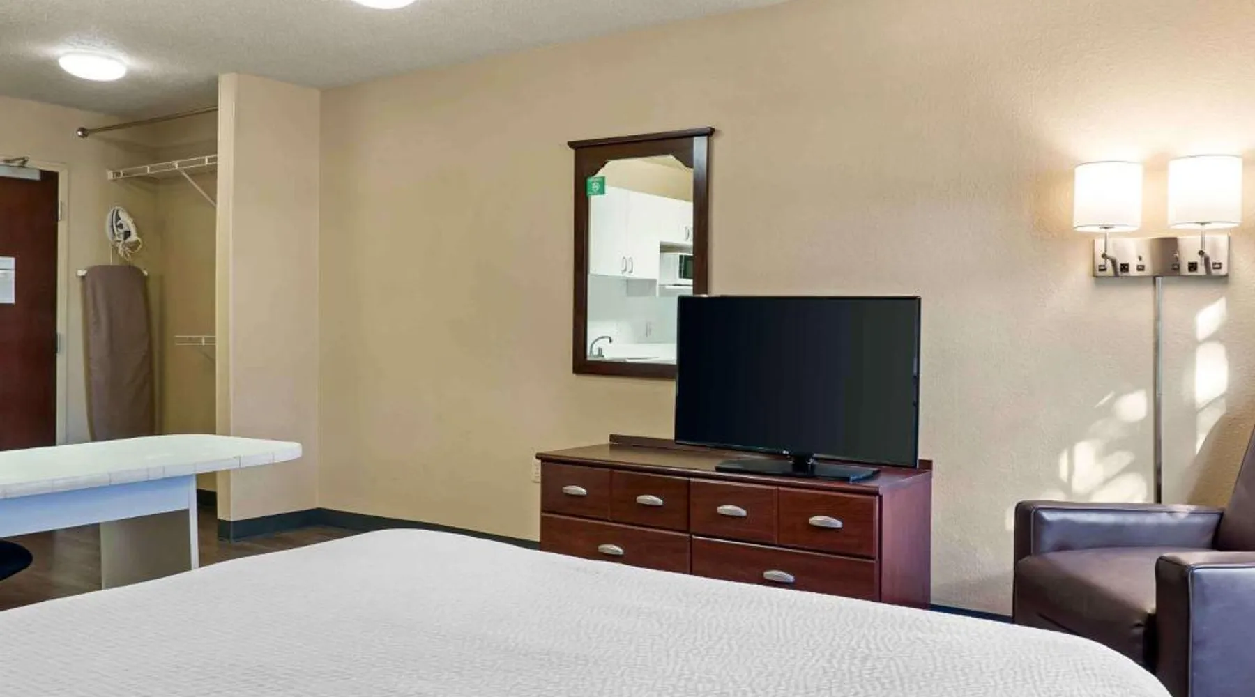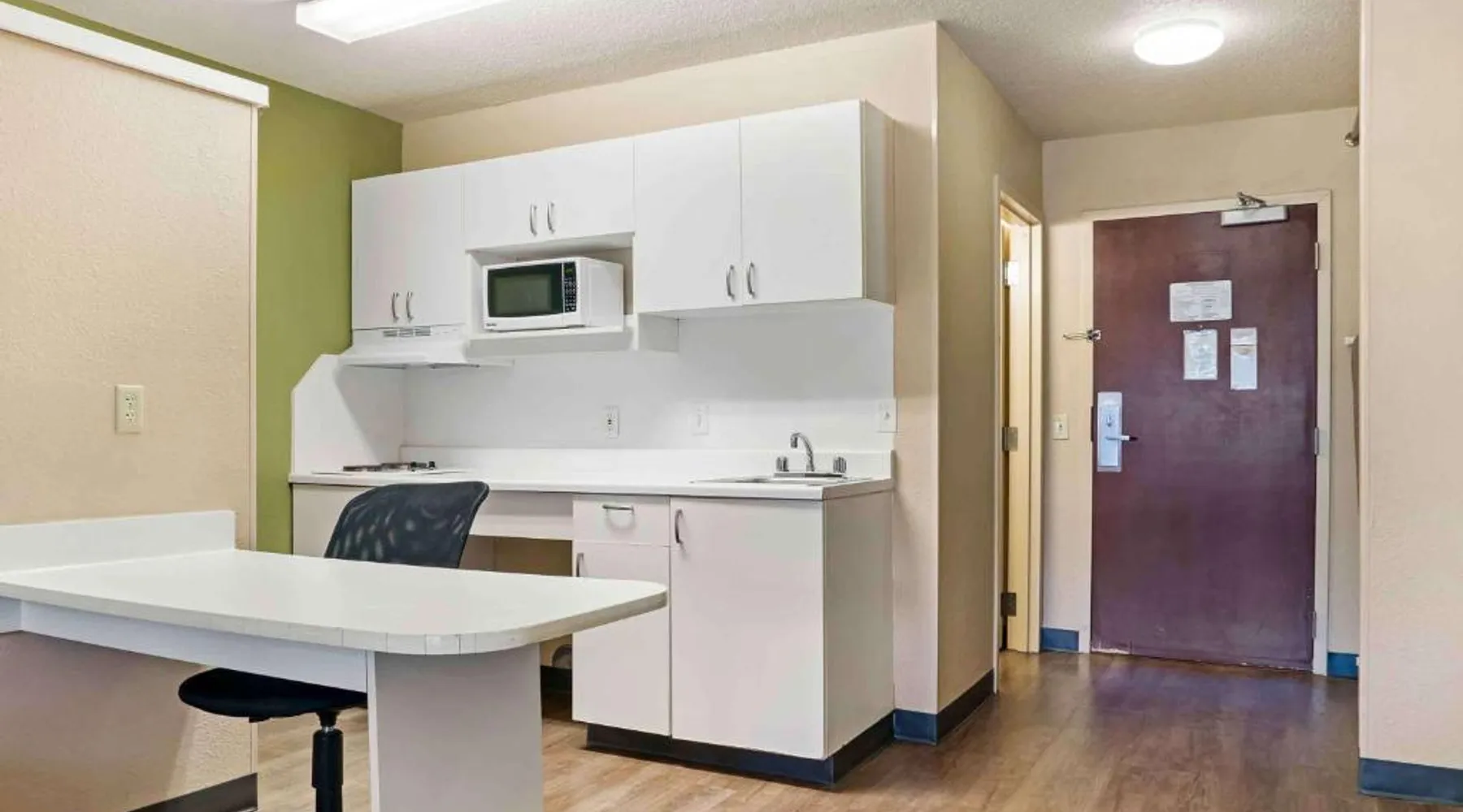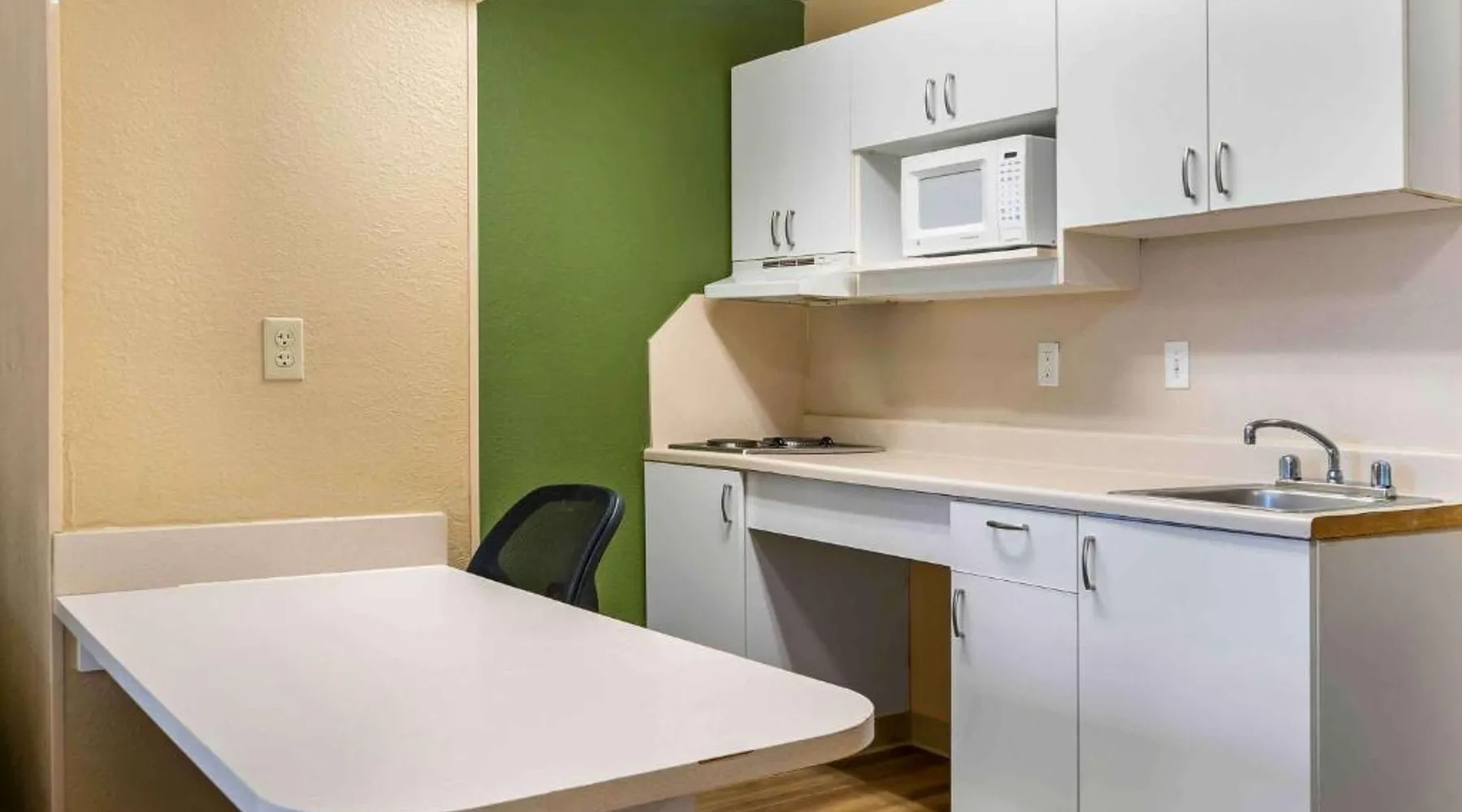 Comfortable Accommodations: Extended Stay America Select Suites - Detroit - Novi - Haggerty Road in Novi offers family rooms with air-conditioning, private bathrooms, and fully equipped kitchens. Each room includes a work desk, TV, and free toiletries. Essential Facilities: Guests enjoy free WiFi, a elevator, bicycle parking, and free on-site private parking. Additional amenities include a dining area, microwave, and stovetop. Convenient Location: Located 19 mi from Detroit Metro Airport, the hotel is near attractions such as Detroit Golf Club (17 mi) and TCF Center (27 mi). Guests appreciate the room cleanliness, attentive staff, and convenient location. 1 King Bed, kitchen, dining and work area, non-smoking