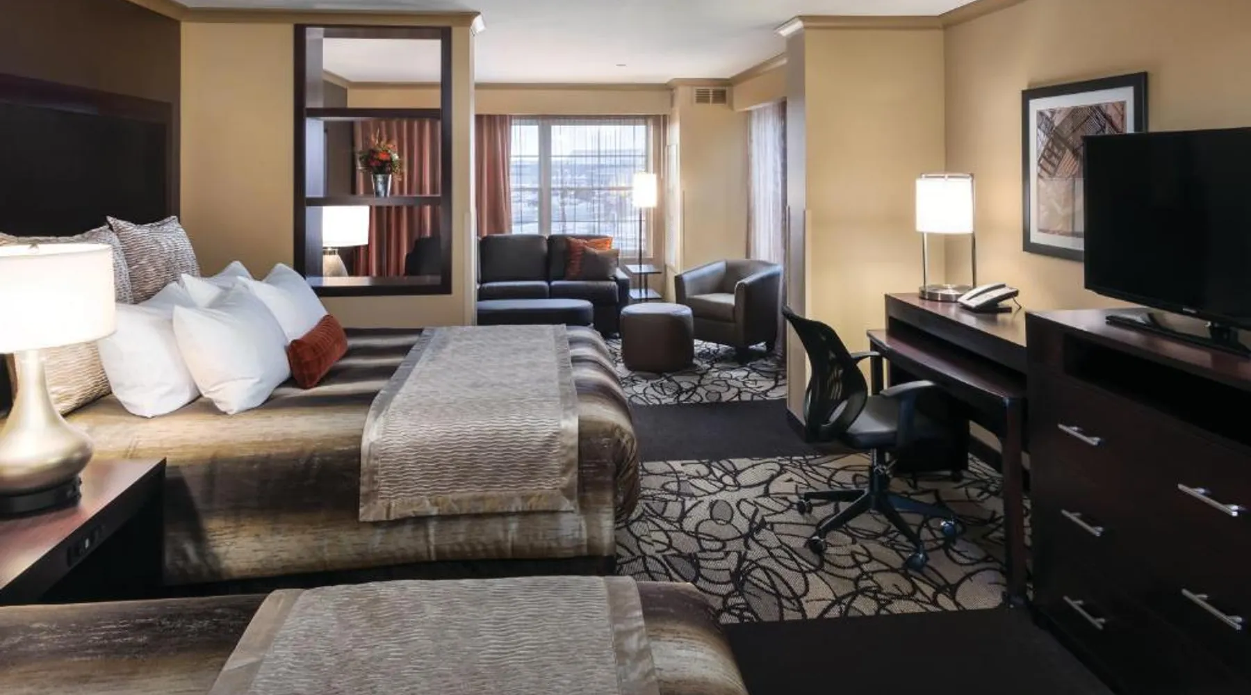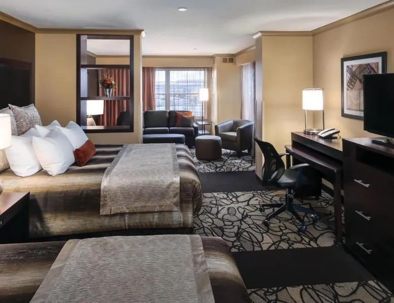 Comfortable Accommodations: ClubHouse Hotel & Suites Fargo in Fargo offers spacious rooms with comfortable beds. Guests enjoy free WiFi, air-conditioning, and private bathrooms equipped with free toiletries. Exceptional Facilities: The hotel features a fitness center, indoor swimming pool, and a terrace. Additional amenities include a restaurant serving American cuisine, a bar, and a garden. Free airport shuttle service is available 5.6 mi from Hector International Airport. Convenient Location: Located 1.9 mi from Red River Zoo and 5 mi from Fargo Civic Center, the hotel provides easy access to local attractions. Guests appreciate the room size and bed comfort. Featuring free toiletries, this apartment includes a private bathroom with a hairdryer. The apartment features air conditioning, a tea and coffee maker, a seating area, a wardrobe, as well as a flat-screen TV with cable channels. The unit has 2 beds.