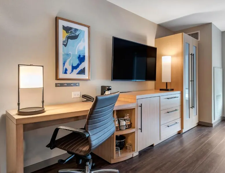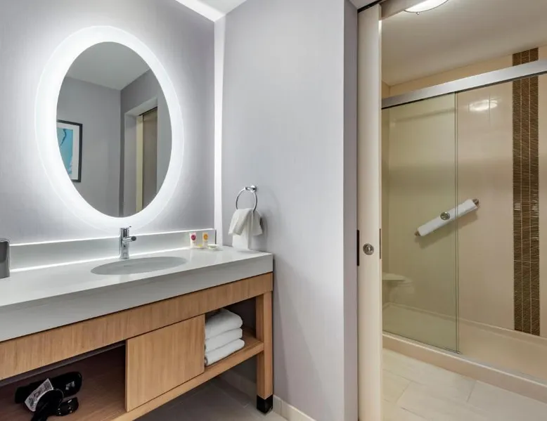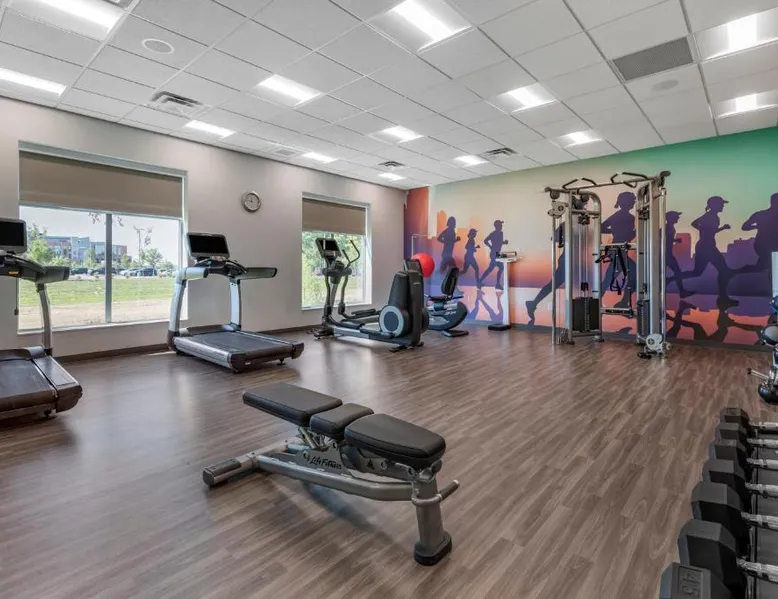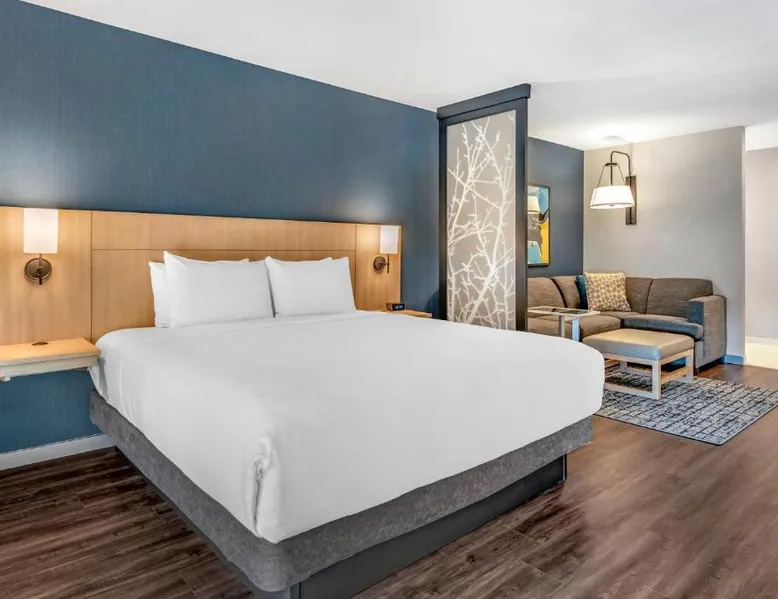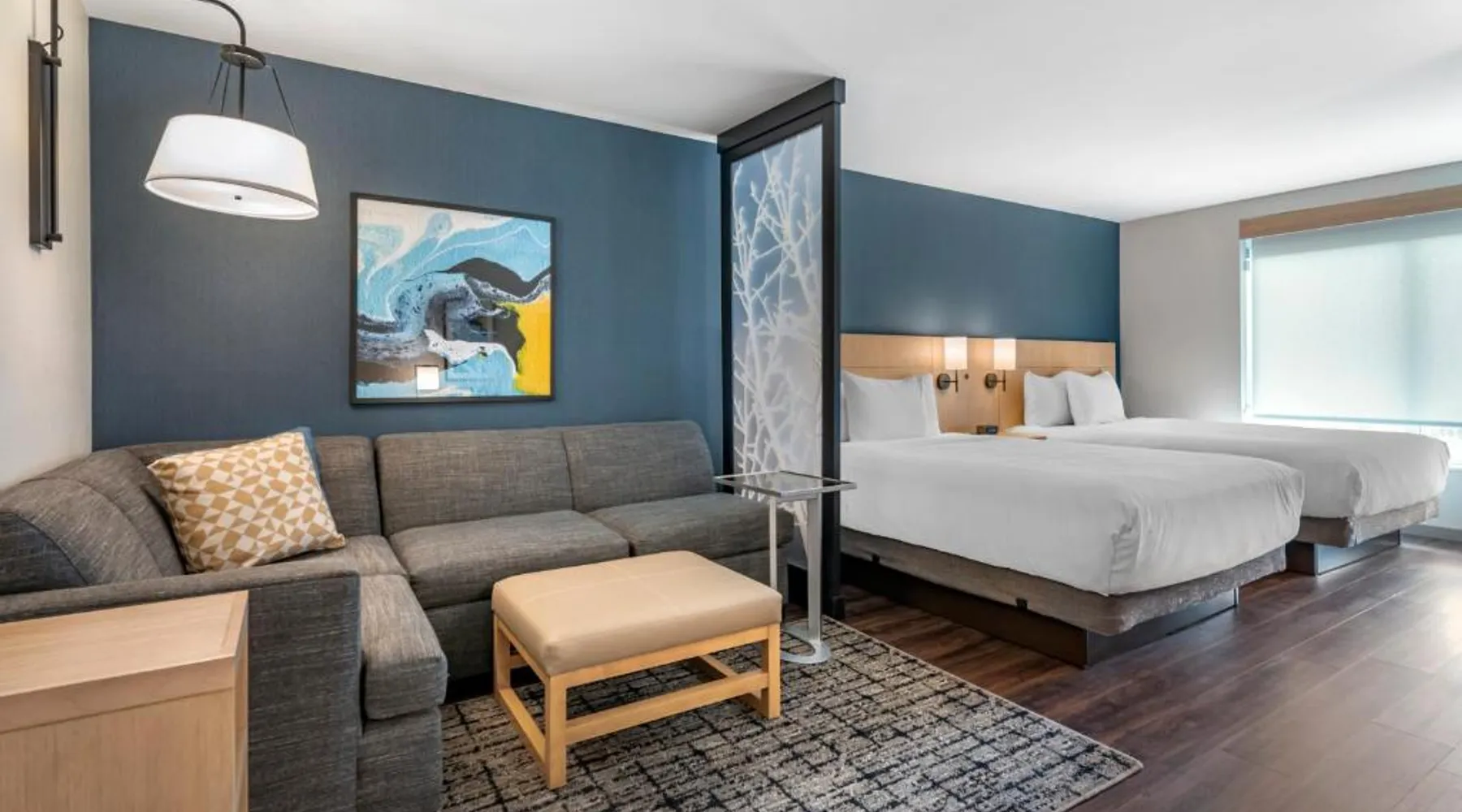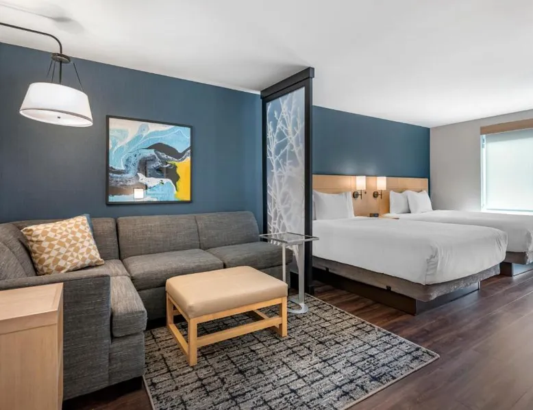 Comfortable Accommodations: Hyatt Place Indianapolis Carmel in Carmel offers rooms with air-conditioning, private bathrooms, tea and coffee makers, hairdryers, refrigerators, free toiletries, bath or showers, TVs, and wardrobes. Guests appreciate the room cleanliness and comfort. Exceptional Facilities: The hotel features a fitness center, bar, indoor swimming pool, and free WiFi. Additional amenities include a 24-hour front desk, free on-site private parking, and a variety of services. Prime Location: Located 16 mi from Lucas Oil Stadium, 17 mi from Indianapolis Motor Speedway, and 9.9 mi from Butler University and Clowes Memorial Hall. Nearby attractions include the Children's Museum of Indianapolis and Indianapolis Museum of Art. Guest Satisfaction: Highly rated for room cleanliness, comfort, and attentive staff. This air-conditioned suite includes a flat-screen TV with cable channels and a private bathroom. The unit offers 2 beds.