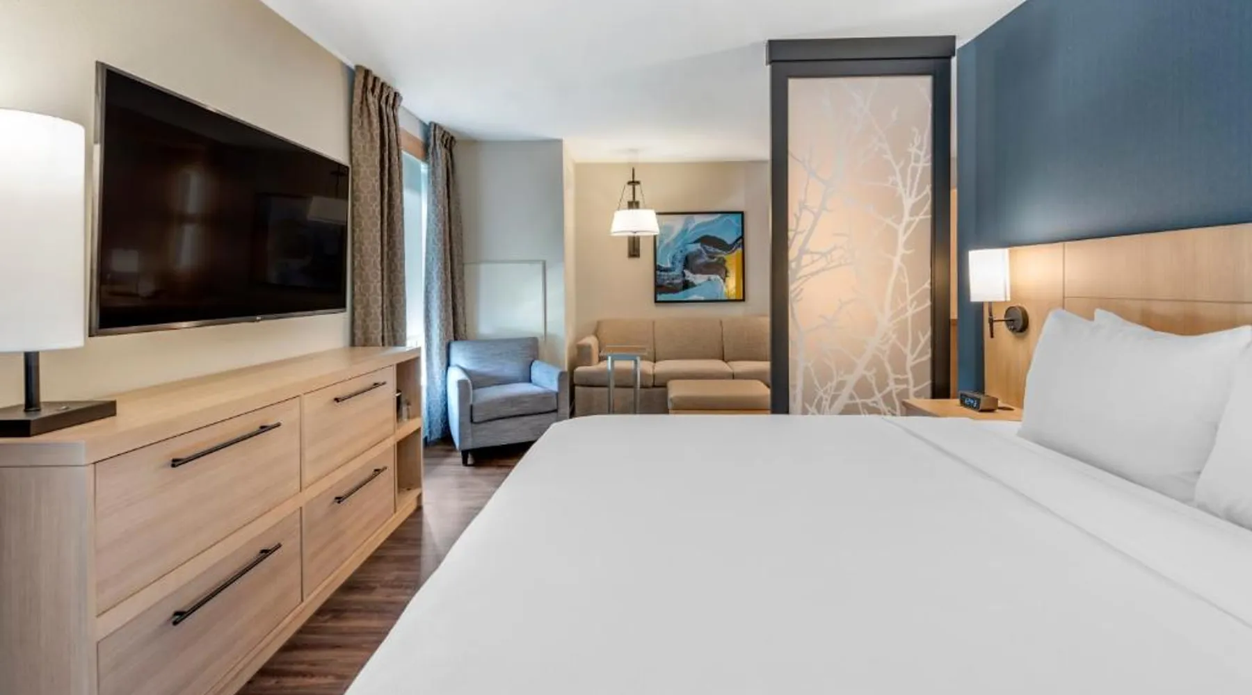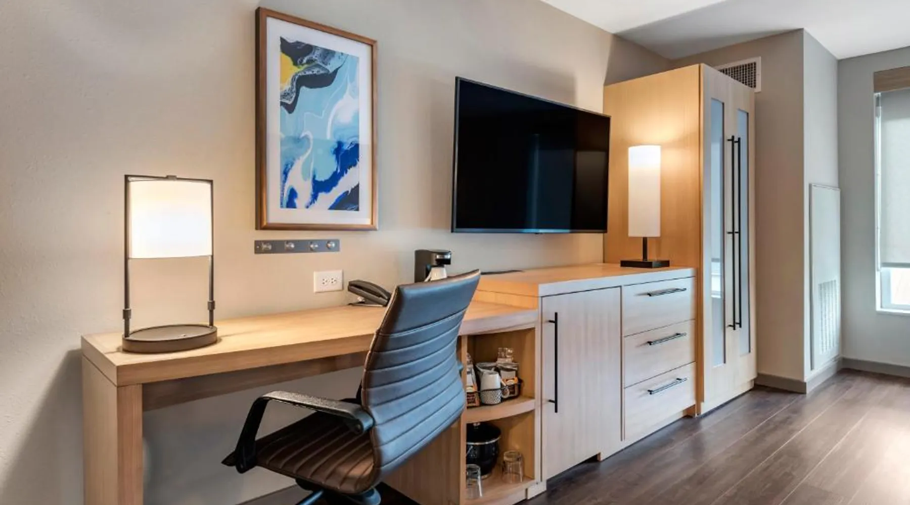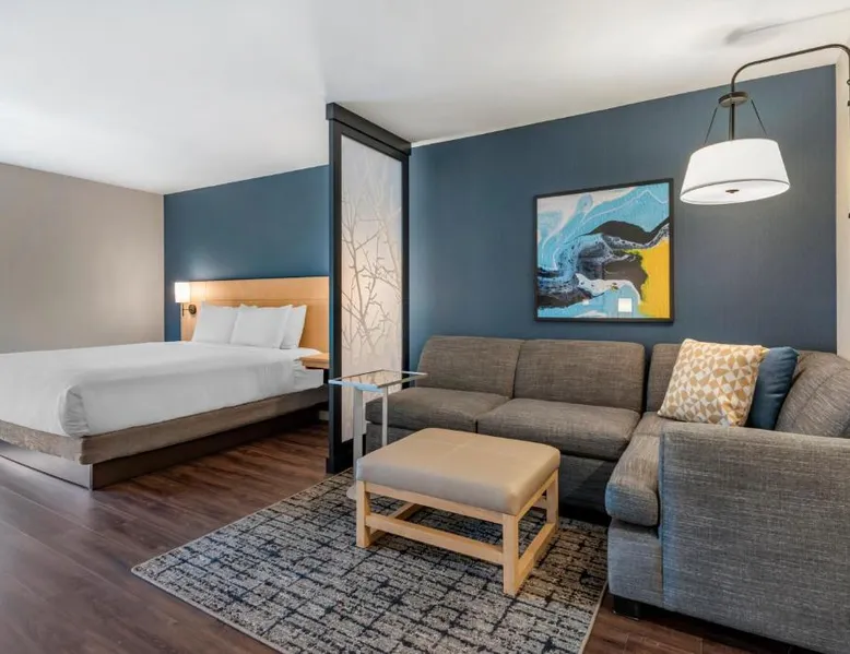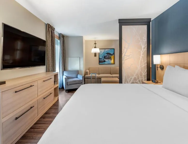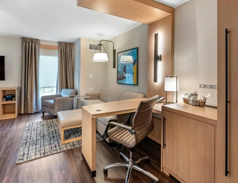 Comfortable Accommodations: Hyatt Place Indianapolis Carmel in Carmel offers rooms with air-conditioning, private bathrooms, tea and coffee makers, hairdryers, refrigerators, free toiletries, bath or showers, TVs, and wardrobes. Guests appreciate the room cleanliness and comfort. Exceptional Facilities: The hotel features a fitness center, bar, indoor swimming pool, and free WiFi. Additional amenities include a 24-hour front desk, free on-site private parking, and a variety of services. Prime Location: Located 16 mi from Lucas Oil Stadium, 17 mi from Indianapolis Motor Speedway, and 9.9 mi from Butler University and Clowes Memorial Hall. Nearby attractions include the Children's Museum of Indianapolis and Indianapolis Museum of Art. Guest Satisfaction: Highly rated for room cleanliness, comfort, and attentive staff. This air-conditioned suite includes a flat-screen TV with cable channels and a private bathroom. The unit offers 2 beds.
