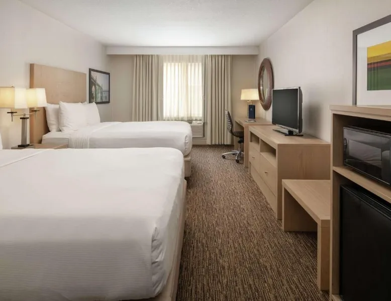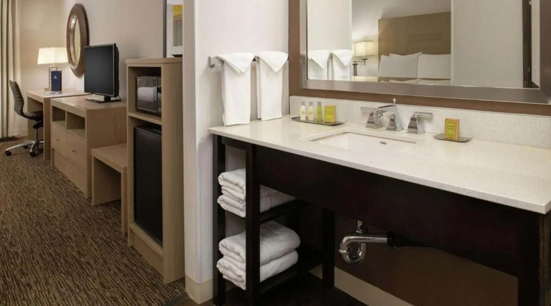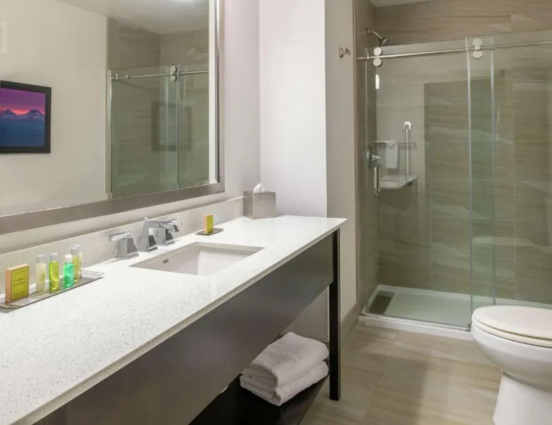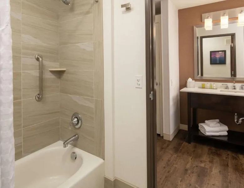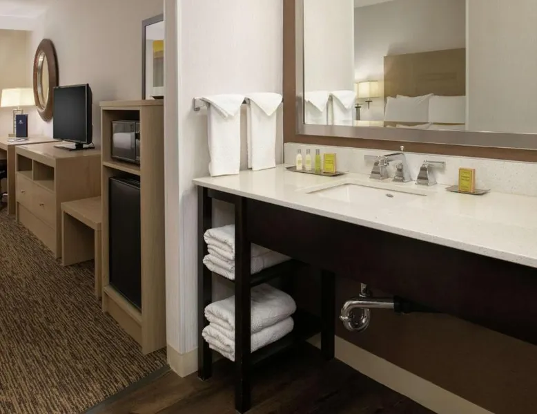 Comfortable Accommodations: DoubleTree by Hilton Portland Tigard in Tigard offers family rooms with air-conditioning, free WiFi, and amenities such as a fitness center, indoor swimming pool, and restaurant. Dining and Leisure: Guests can enjoy a continental breakfast, dinner at the on-site restaurant, and a bar. Additional facilities include a fitness room, outdoor seating area, and barbecue facilities. Convenient Location: Located 18 mi from Portland International Airport, the hotel is near attractions like Oregon Zoo (8.1 mi) and Portland Art Museum (9.9 mi). Free on-site parking is available. Guest Satisfaction: Highly rated for its attentive staff, convenient location, and excellent food value. Featuring a flat-screen cable TV, this air-conditioned room comes with a refrigerator, microwave, and coffee and tea facilities. The private bathroom is equipped with a hairdryer.