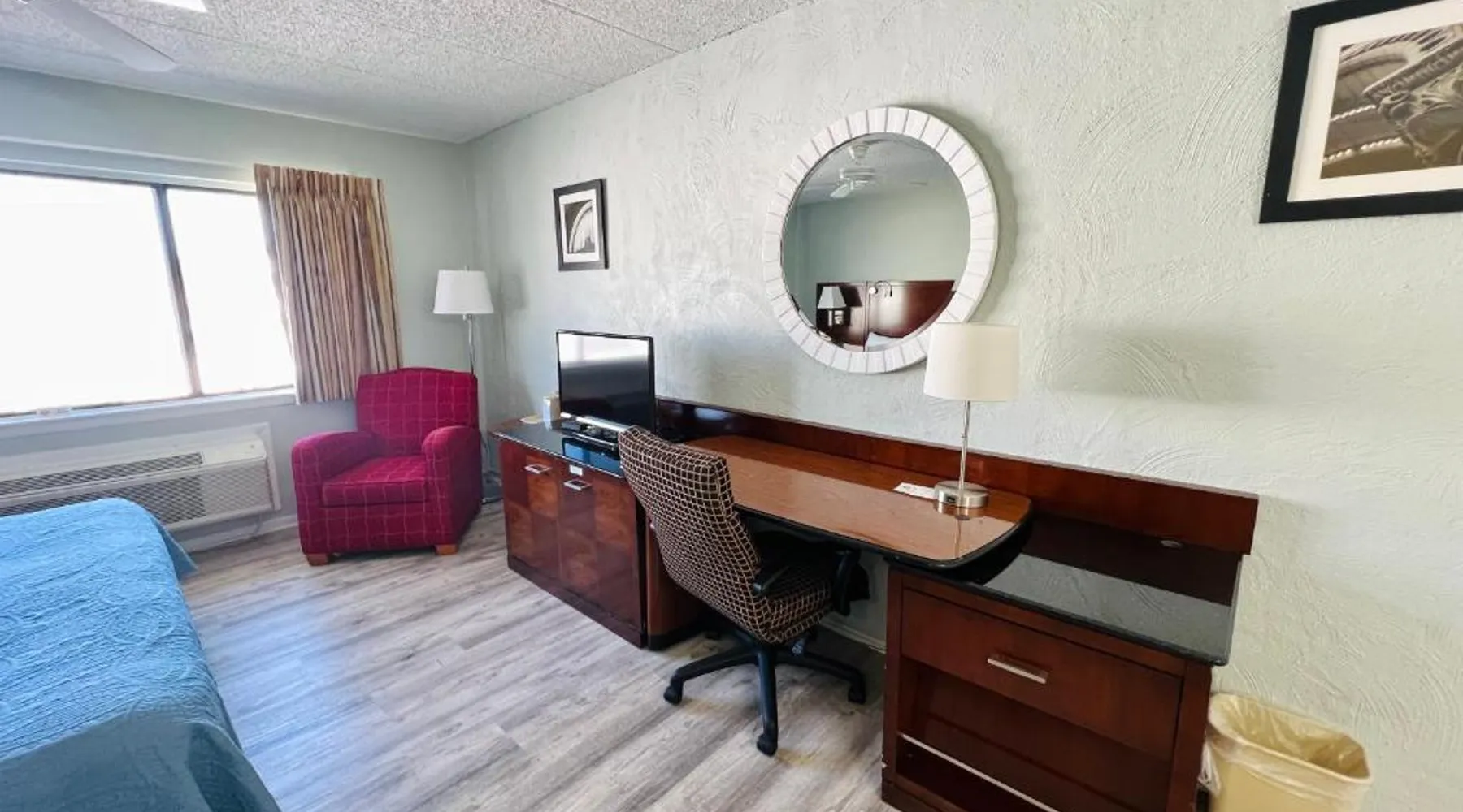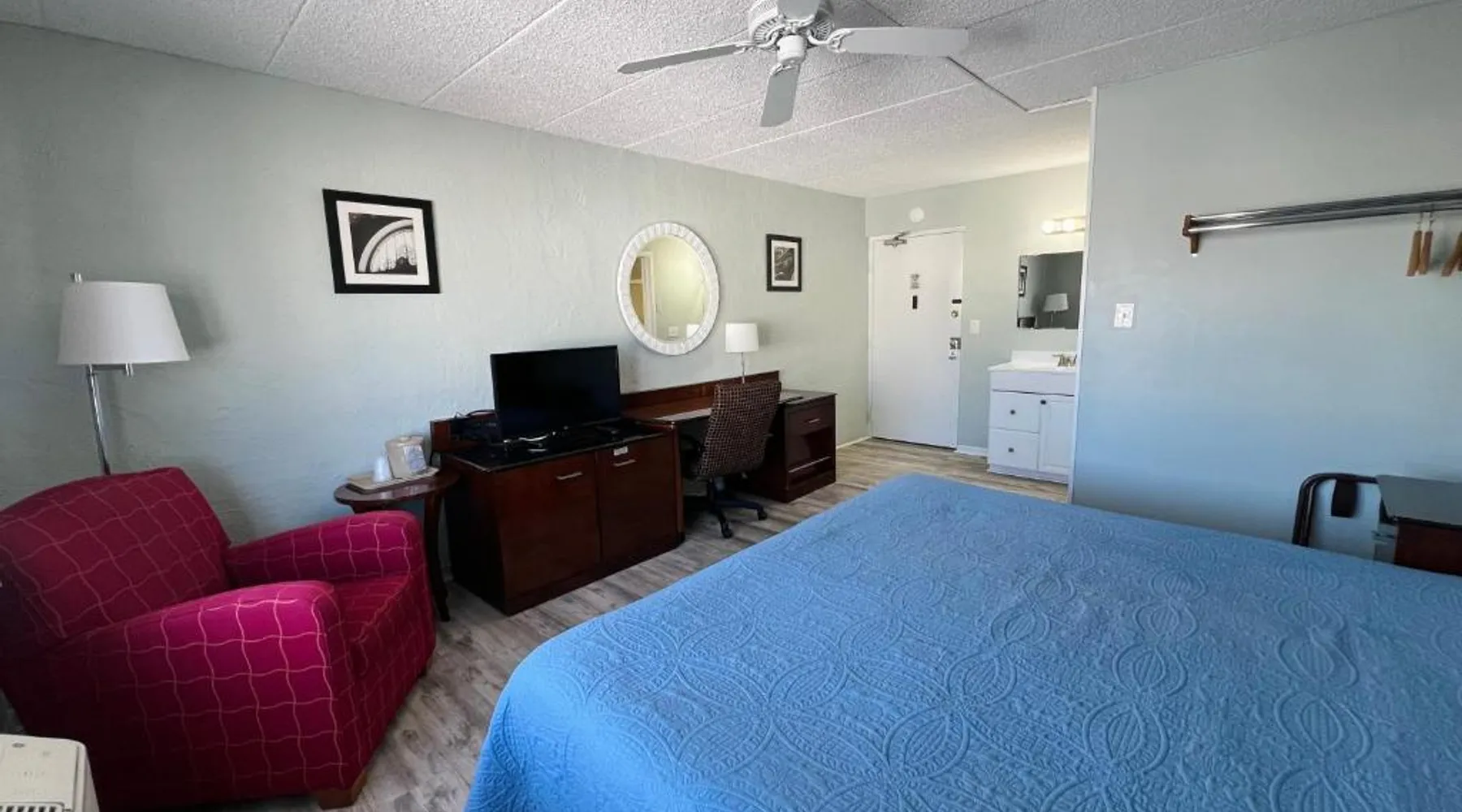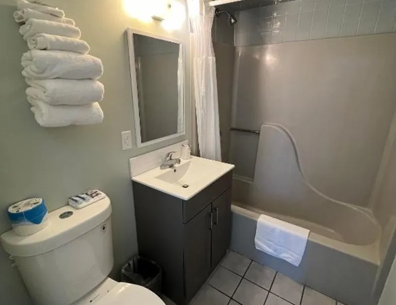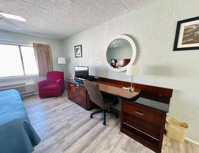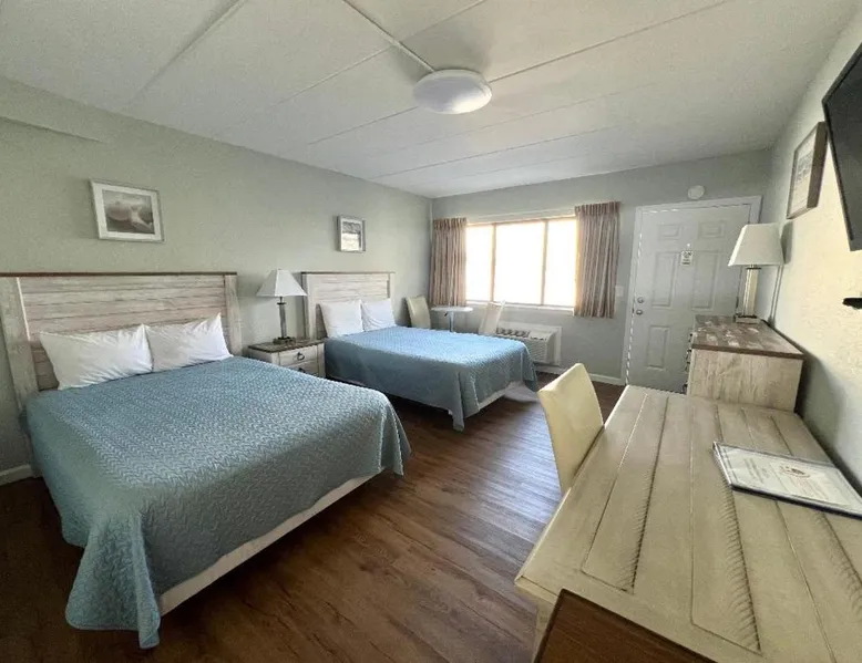 Featuring an outdoor pool, this motel is in Point Pleasant, New Jersey, just 325 ft from the beach and boardwalk. Wi-Fi access is provided to guests free of charge. Cable TV and a view of the pool are featured in each room at Sand Pebble Motor Lodge. A dining area with a refrigerator and a patio with outdoor furniture are provided. The private bathroom includes a hairdryer and free toiletries. A large terrace provides a perfect place where guests at the Sand Pebble Motor Lodge can relax. Refreshments are available at the on-site snack bar and vending machines. Point Pleasant Train Station is just under 1 mile from the motel. Pleasure Park is just under half a mile away. This room features 2 double beds, a private bathroom, small dining table, desk, cable HD TV and free WiFi.
