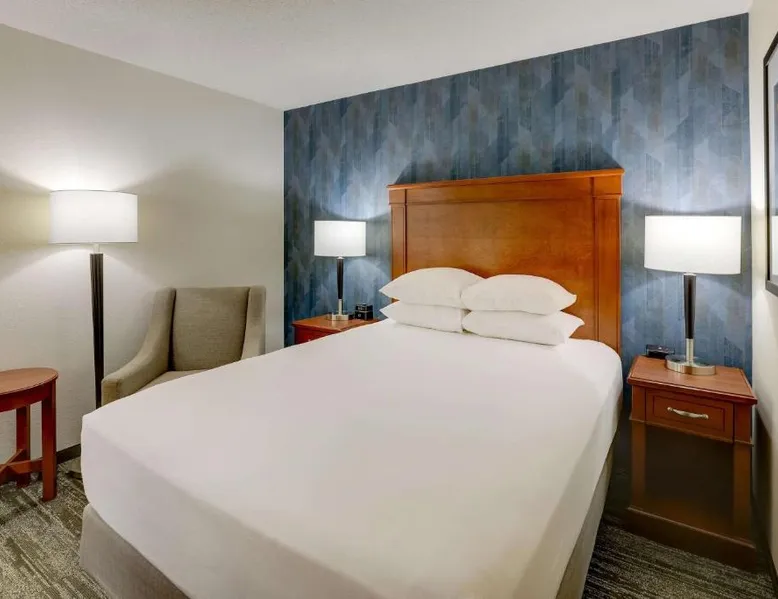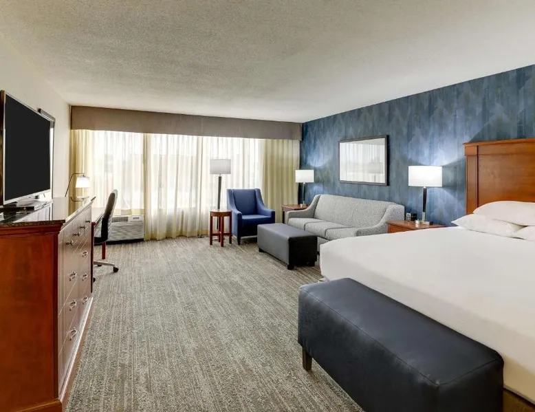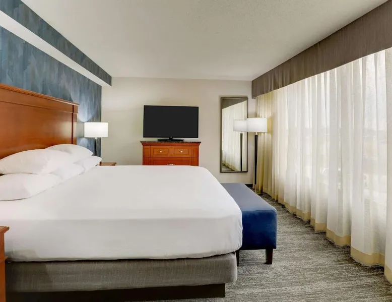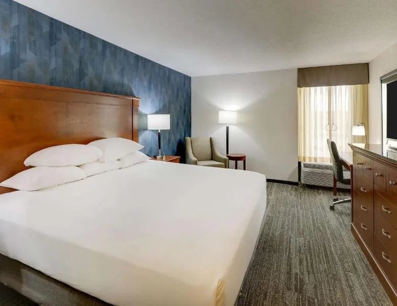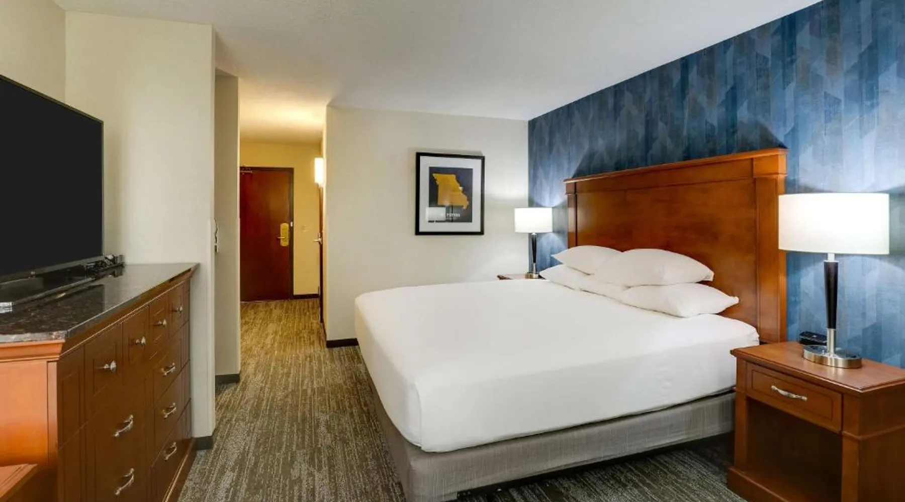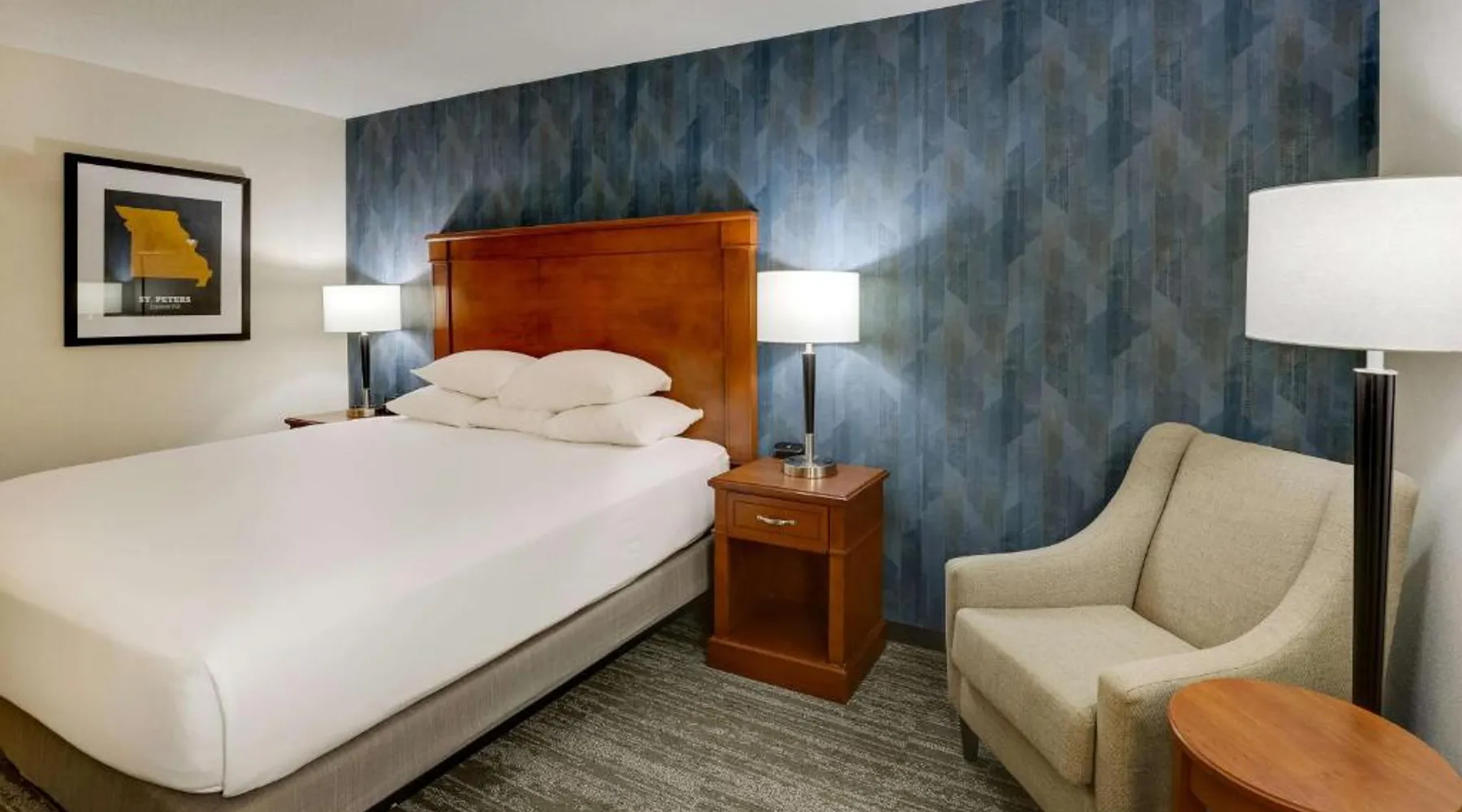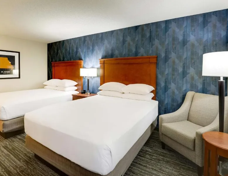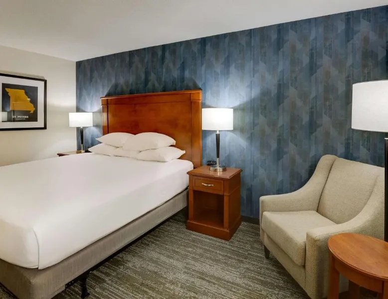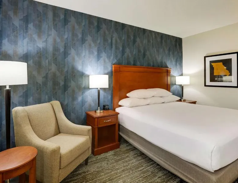 Conveniently located off Interstate 70 and adjacent to the Mid Rivers Mall, this smoke-free St. Peters hotel features a flat-screen TV and free WiFi in every guest room. A hot breakfast is served each morning. A refrigerator, and a microwave are included in all rooms at Drury Inn St. Peters. Free toiletries and ironing facilities are also provided in each guest room. Guests can enjoy a swim in the indoor pool or relax in the hot tub at Saint Peters Drury Inn. The on-site fitness center is available 24-hours a day. Free snacks and beverages are served nightly. Ameristar Casino St. Charles and historic Saint Charles city center are within 12 minutes’ drive away. Lambert St Louis International Airport is 15 miles away. The spacious double room offers air conditioning, a coffee machine, as well as a private bathroom featuring a bath and a hairdryer. This double room features a wardrobe, heating and a flat-screen TV with cable channels. The unit offers 1 bed.