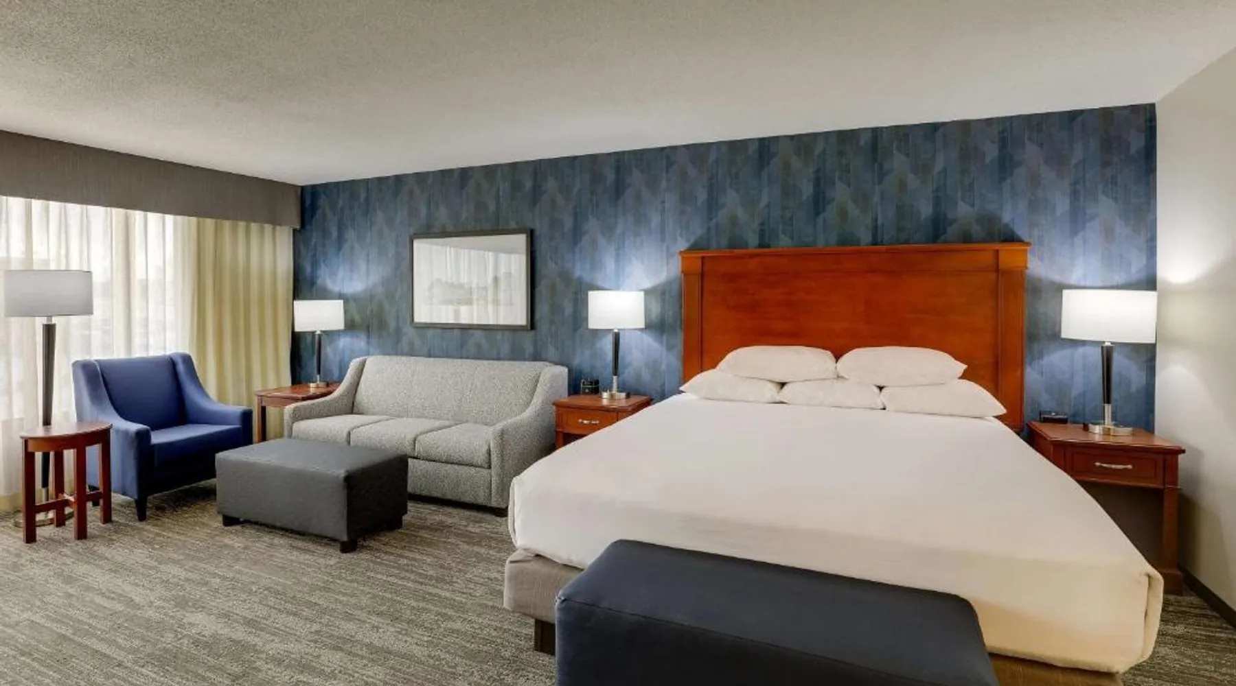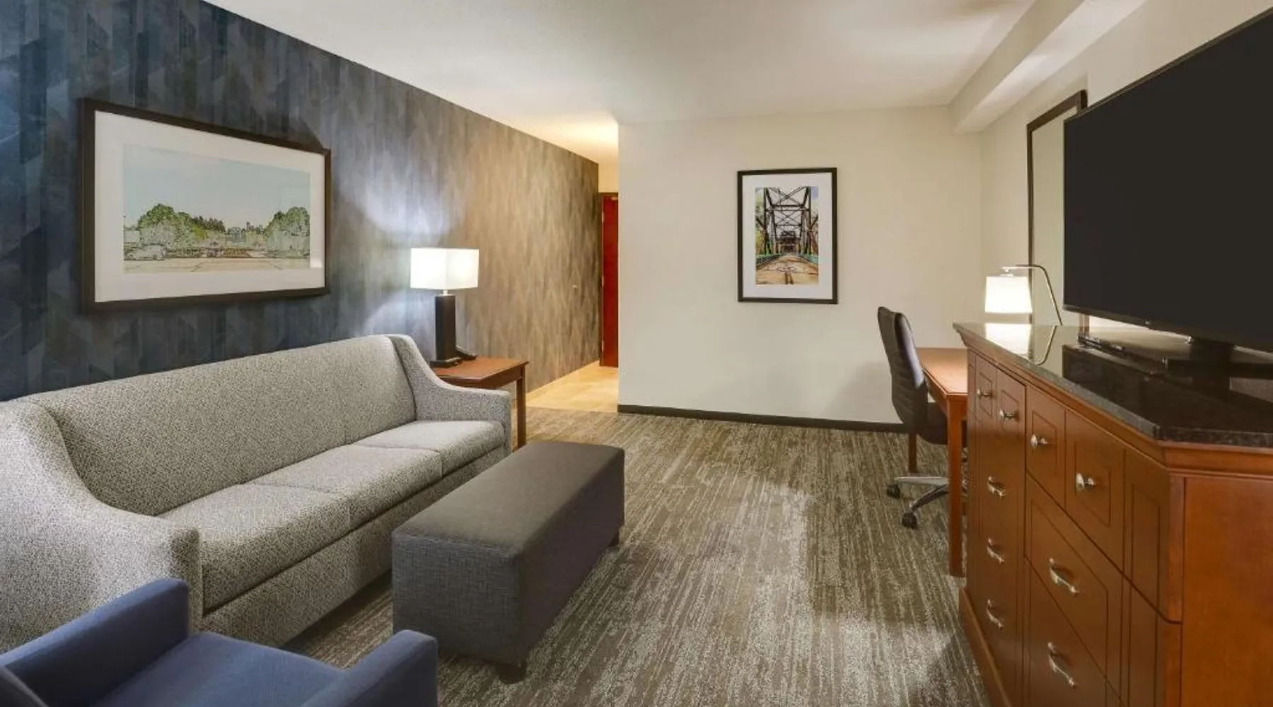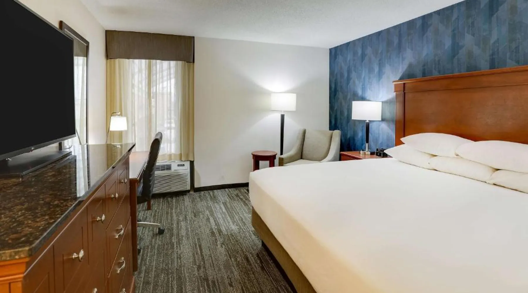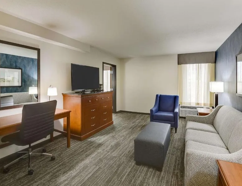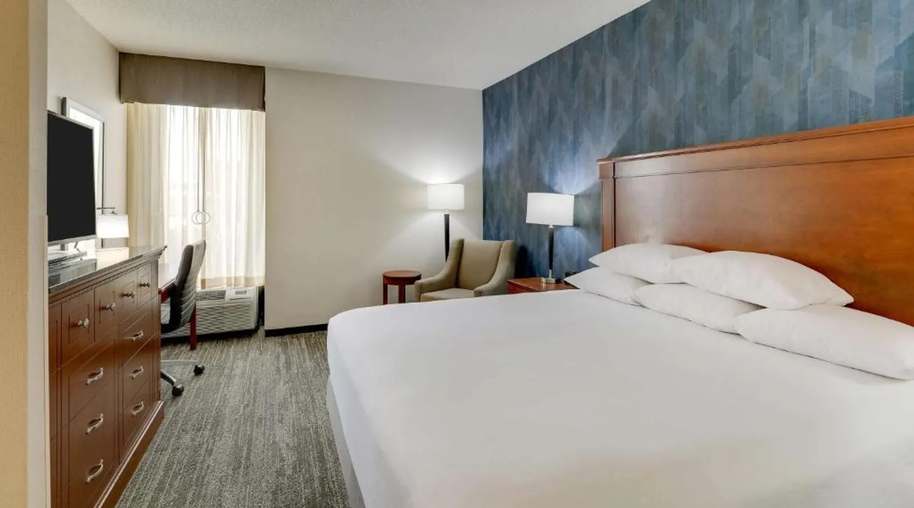 Conveniently located off Interstate 70 and adjacent to the Mid Rivers Mall, this smoke-free St. Peters hotel features a flat-screen TV and free WiFi in every guest room. A hot breakfast is served each morning. A refrigerator, and a microwave are included in all rooms at Drury Inn St. Peters. Free toiletries and ironing facilities are also provided in each guest room. Guests can enjoy a swim in the indoor pool or relax in the hot tub at Saint Peters Drury Inn. The on-site fitness center is available 24-hours a day. Free snacks and beverages are served nightly. Ameristar Casino St. Charles and historic Saint Charles city center are within 12 minutes’ drive away. Lambert St Louis International Airport is 15 miles away. The spacious double room offers air conditioning, a coffee machine, as well as a private bathroom featuring a bath and a hairdryer. This double room features a wardrobe, heating and a flat-screen TV with cable channels. The unit offers 1 bed.