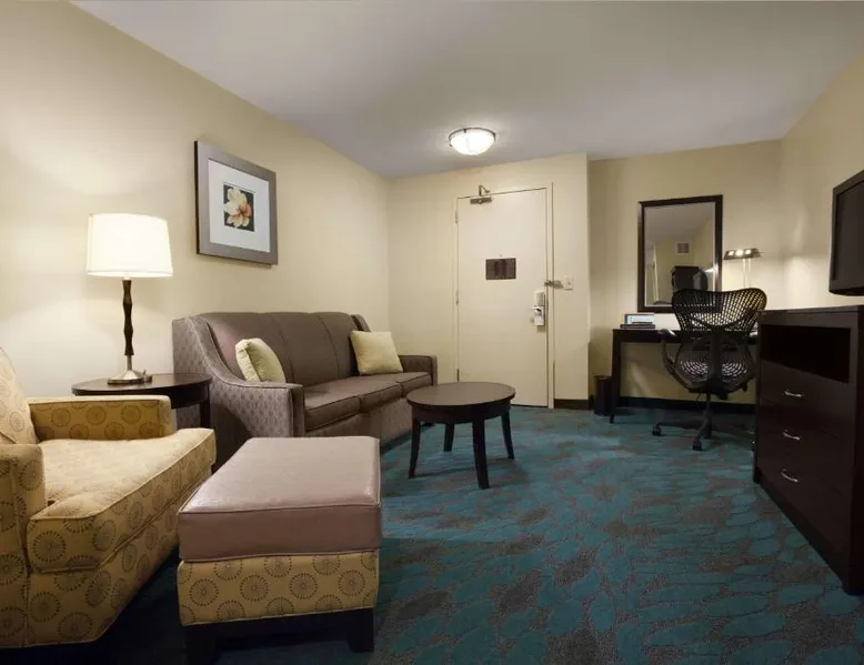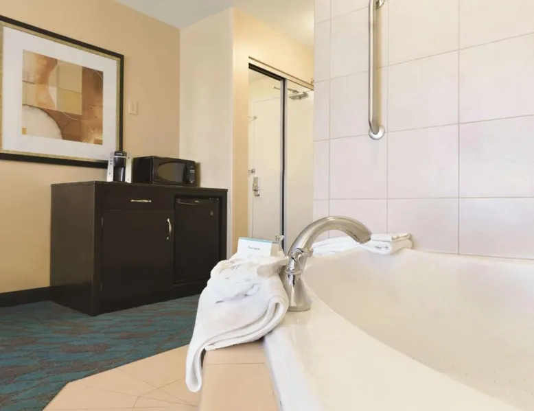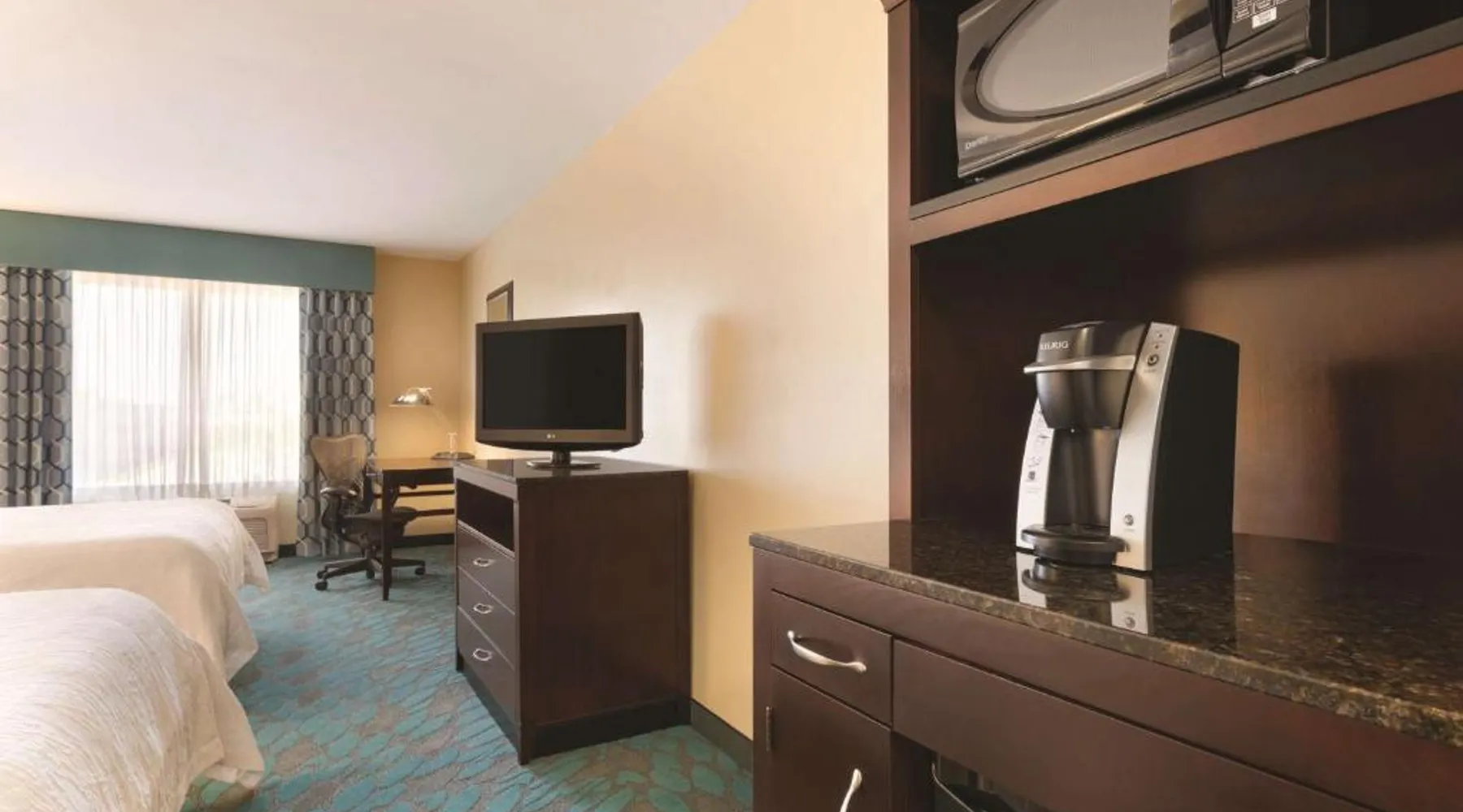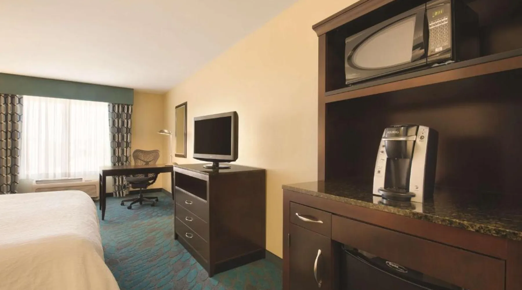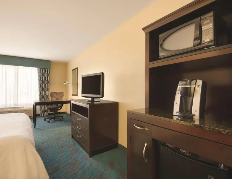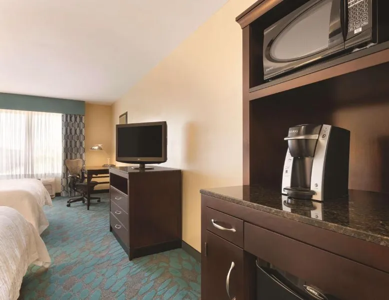 Comfortable Accommodations: Hilton Garden Fargo in Fargo offers air-conditioned rooms with free WiFi, tea and coffee makers, and work desks. Each room includes a refrigerator, microwave, and TV. Dining and Leisure: The hotel features a fitness center, indoor swimming pool, and a family-friendly restaurant serving American cuisine. Guests can enjoy a bar and lounge, hot tub, and free on-site parking. Convenient Location: Located 5.6 mi from Hector International Airport, the hotel is a short walk from West Acres Shopping Center and close to attractions such as Roger Maris Museum and Red River Zoo. Includes a flat-screen LCD TV, microwave, refrigerator, coffee maker and an iPod docking station.