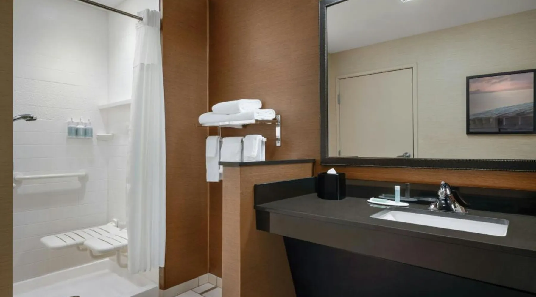 Comfortable Accommodations: Fairfield Inn & Suites by Marriott Bristol in Bristol offers rooms with air-conditioning, free WiFi, and modern amenities. Guests appreciate the room cleanliness and comfort. Leisure Facilities: The hotel features a fitness center, indoor swimming pool, and outdoor seating area. Additional facilities include a lounge, fitness room, and business area. Convenient Services: Free on-site private parking, a 24-hour front desk, and a minimarket enhance the stay. Housekeeping, child-friendly buffet, and streaming services are available. Nearby Attractions: Bristol Motor Speedway is 12 mi away, Hands On! Discovery Center 25 mi, and Tri-Cities Regional Airport 13 mi from the property. This room features a cable TV, desk, and an en suite.