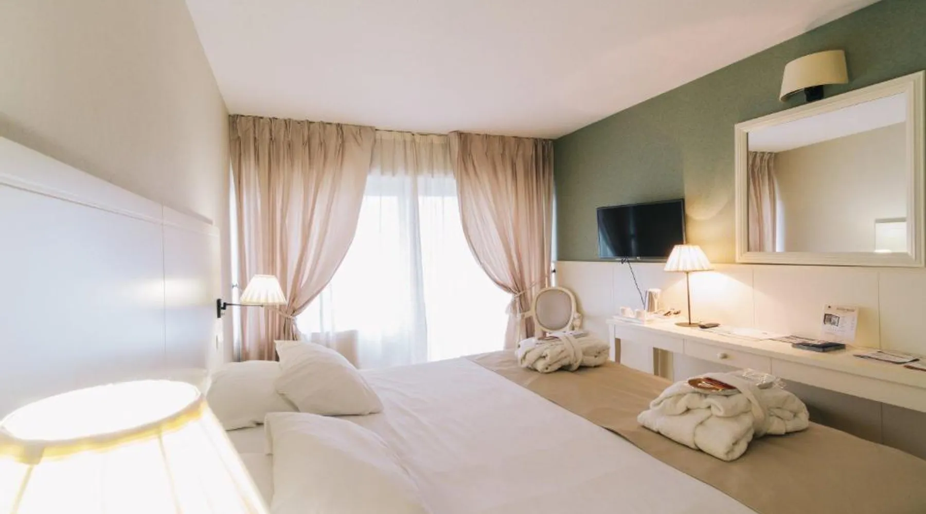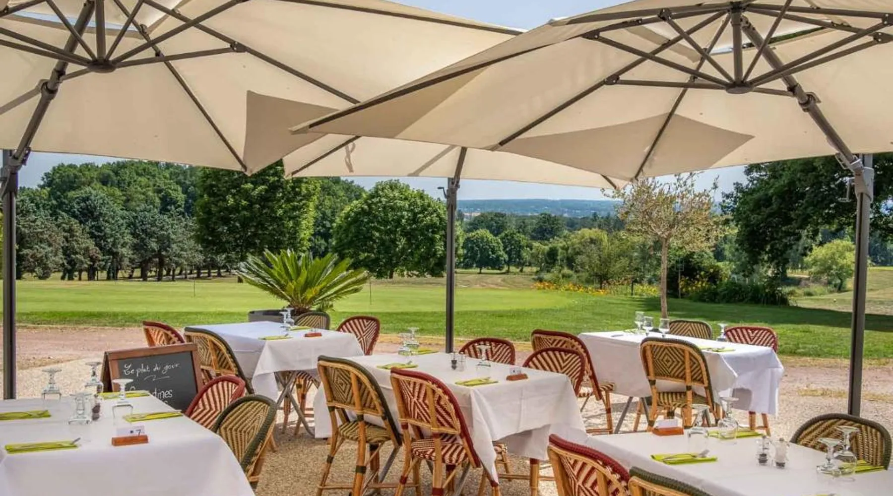 Domaine des Dryades overlooks a beautiful golf course. It has an indoor and outdoor swimming pool and offers comfortable, spacious rooms. All the guest rooms have a balcony with nice views of the surrounding area. They all are well-equipped and include flat-screen TV. Les Dryades Golf & Spa features a spa with a hammam, a sauna and thermal loungers. Guests can also choose from a range of body treatments, all available at a reduced price. There is also a fitness center available free of charge for guests. The hotel’s restaurant serves traditional French cuisine. The dining room offers a view of the golf course. This air-conditioned double room includes a flat-screen TV with cable channels, a private bathroom as well as a terrace with garden views. The unit offers 1 bed.
