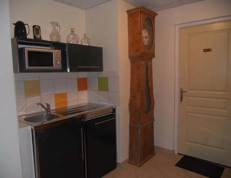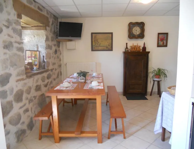 Comfortable Accommodations: Annie Jouve Chambres d'Hôtes Champassis in Vebret offers three-star bed and breakfast accommodations with private bathrooms, garden views, and parquet floors. Each room includes a kitchenette, dining area, and work desk. Outdoor Spaces: Guests can relax on the sun terrace or in the garden, enjoying outdoor seating and picnic areas. The property features a lounge, shared kitchen, and outdoor dining area, ideal for leisure activities. Convenient Amenities: The bed and breakfast provides free on-site private parking, a balcony, and a sofa bed. Additional amenities include a hairdryer, free toiletries, and a work desk. Local Attractions: Located 48 mi from Aurillac – Tronquières Airport, the property is near Pas de Peyrol (27 mi), Pavin Lake (28 mi), Col d'Entremont (29 mi), and Neuvic d'Ussel Golf Course (16 mi). Activities such as skiing, hiking, and cycling are available. The double room's kitchenette, which has a refrigerator and a microwave, is available for cooking and storing food. The double room features a private entrance, a dining area, a terrace with city views as well as a private bathroom boasting a shower. The unit has 1 bed.