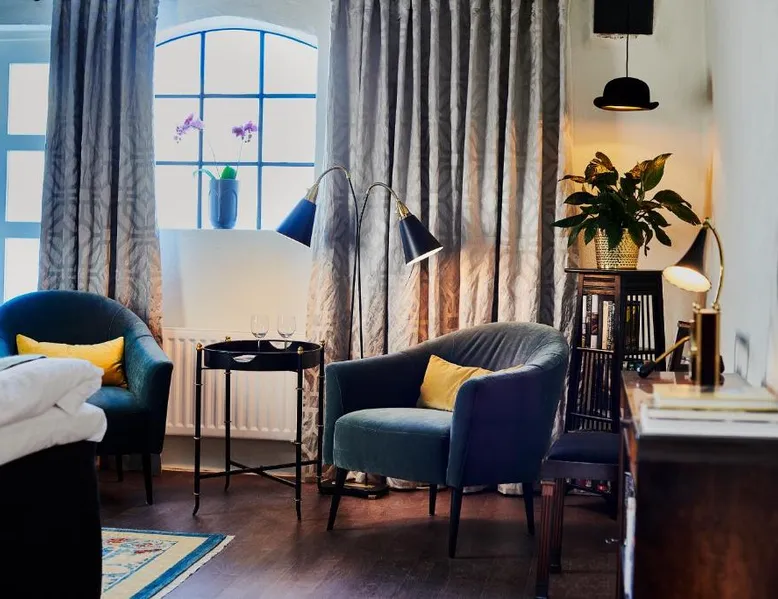 Historic Setting: Gladsax Gårdshotell in Gladsax offers a unique stay within a historic building. The adults-only hotel features a sun terrace and a beautiful garden, complemented by free WiFi throughout the property. Comfortable Accommodations: Rooms include private bathrooms with garden views, bathrobes, and soundproofing. Additional amenities include work desks, sofas, and interconnected rooms, ensuring a comfortable and relaxing stay. Dining Experience: Guests can enjoy a buffet breakfast with juice, fresh pastries, cheese, and fruits. The outdoor seating area provides a pleasant setting for meals and refreshments. Convenient Services: The hotel offers private and express check-in and check-out, an electric vehicle charging station, bicycle parking, and free on-site private parking. Additional services include luggage storage and free toiletries. Local Attractions: Nearby attractions include Glimmingehus (5.6 mi), Hagestads Nature Reserve (17 mi), and Ystad Zoo (28 mi). Tomelilla Golfklubb is 15 mi away, and Ale's Stones is 18 mi from the property. The spacious double room provides a private entrance, soundproof walls, a terrace with garden views as well as a private bathroom featuring a shower. The unit offers 1 bed.