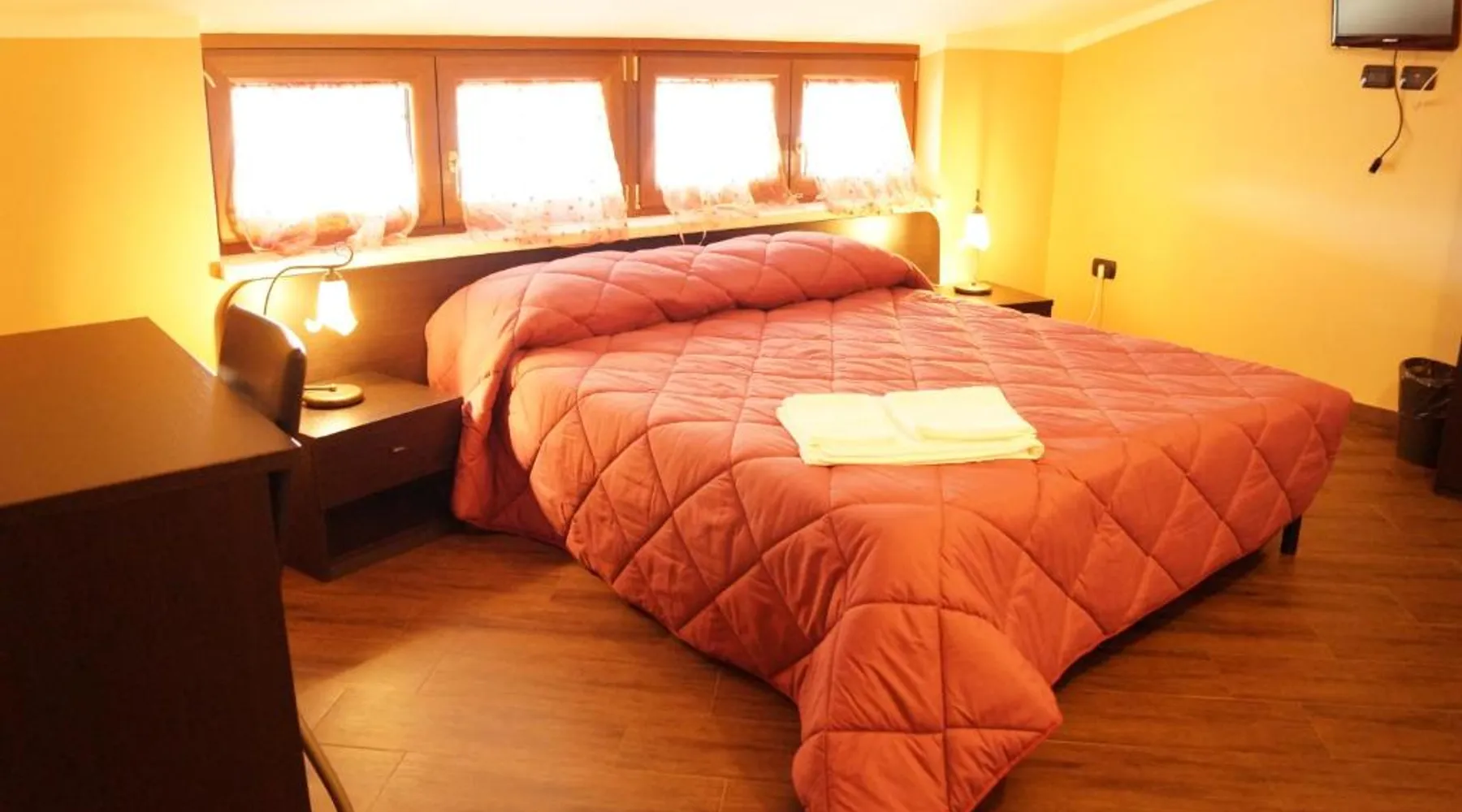 Comfortable Accommodations: B&B Il Fruscio in Mormanno offers family rooms with private bathrooms, bidets, and mountain views. Each room includes a work desk, TV, and free toiletries. Outdoor Spaces: Guests can relax in the garden or on the terrace, enjoying the serene surroundings. Free WiFi is available throughout the property. Convenient Facilities: The bed and breakfast provides free on-site private parking, luggage storage, and a hairdryer. Free toiletries and a shower enhance the stay. Local Attractions: La Secca di Castrocucco is 30 mi away, and Salerno - Costa d'Amalfi Airport is 94 mi from the property. Highly rated for its breakfast, room cleanliness, and attentive staff. Features free Wi-Fi, an LCD TV, and a private bathroom. It has a raised sleeping area.