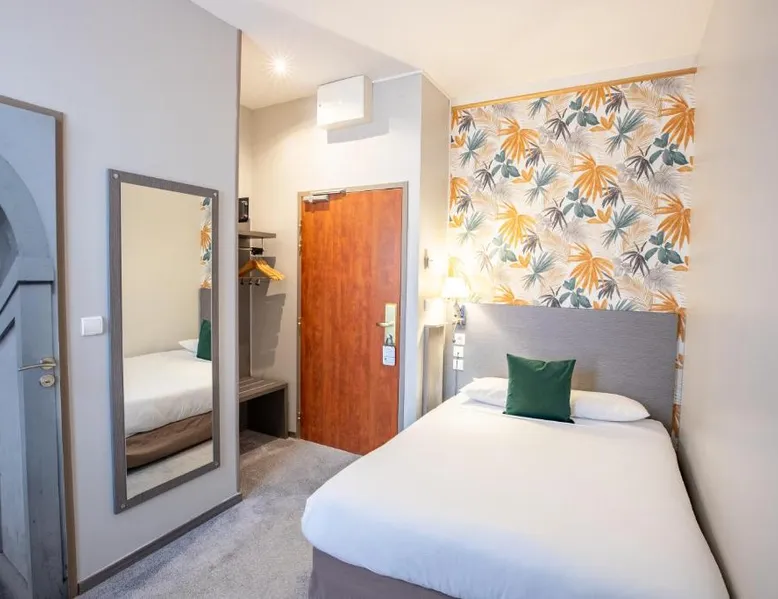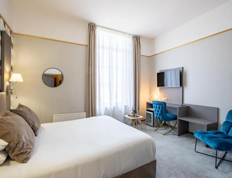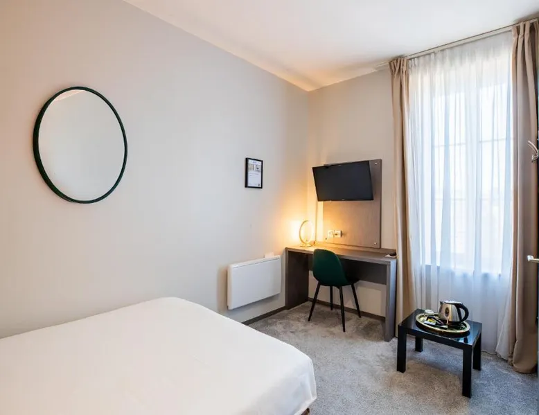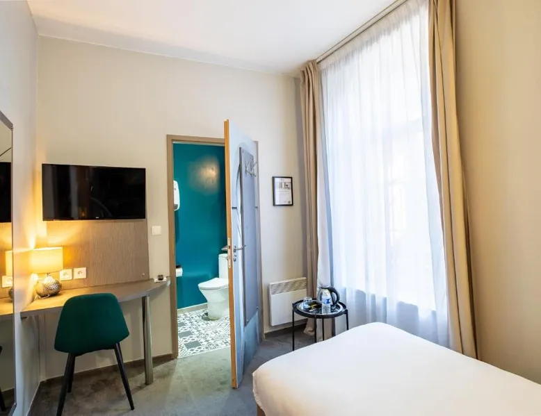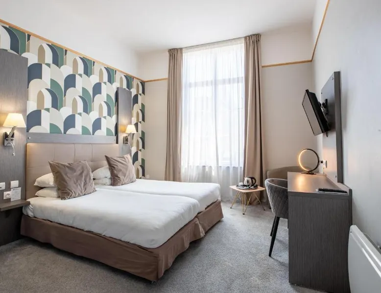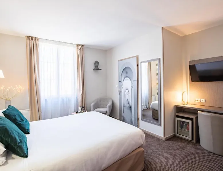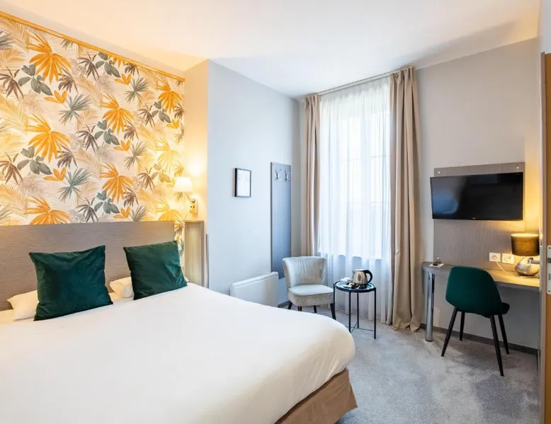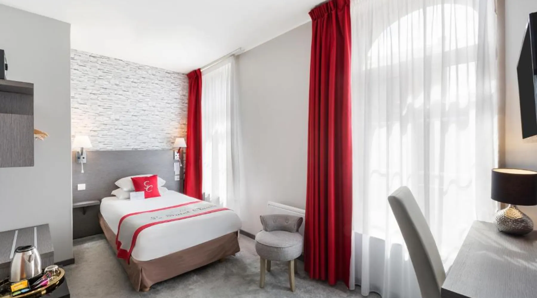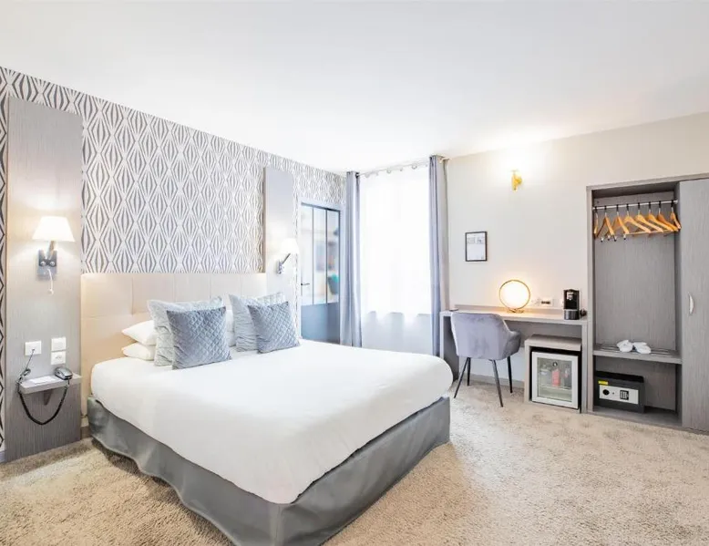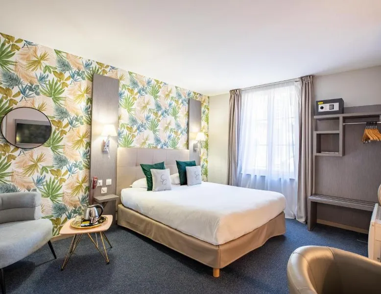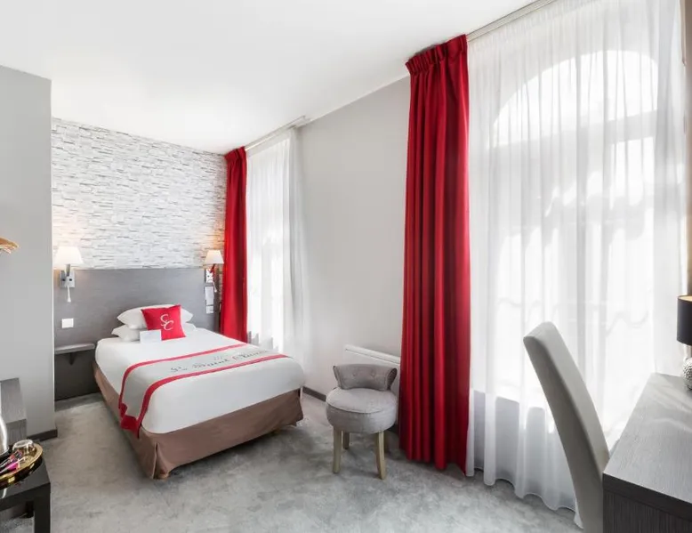 Hotel Saint Claude is located in the city center of Péronne, between a 16th-century castle and the Great War museum. It offers 40 comfortable and soundproofed rooms that are all serviced by a elevator. Breakfast available seven days a week Public parking can be found nearby. The suite features 1 separate bedroom and 1 bathroom with a walk-in shower and a bath or a shower. The suite offers a mini-bar, a tea and coffee maker, a wardrobe, a safe deposit box, as well as a flat-screen TV. The unit offers 1 bed.