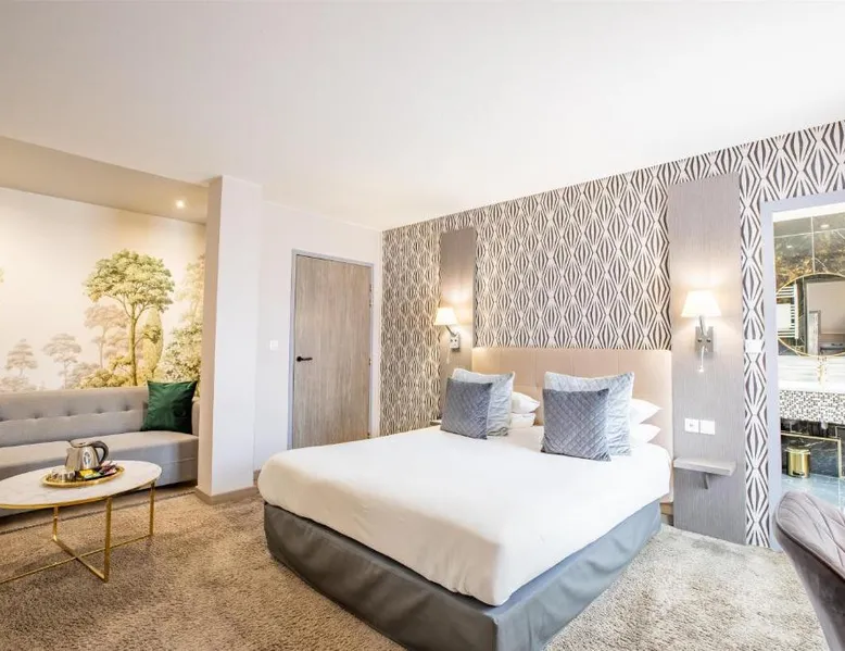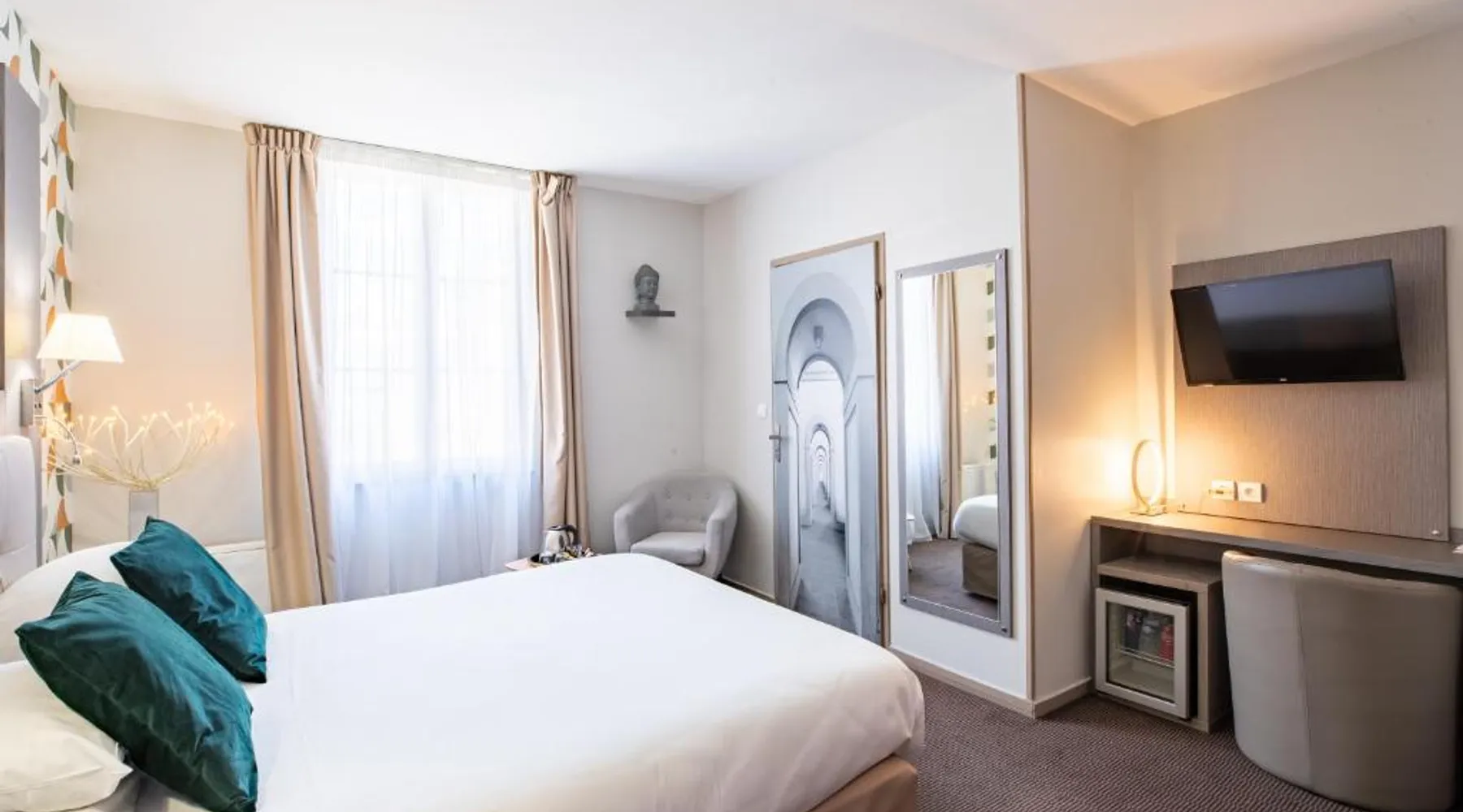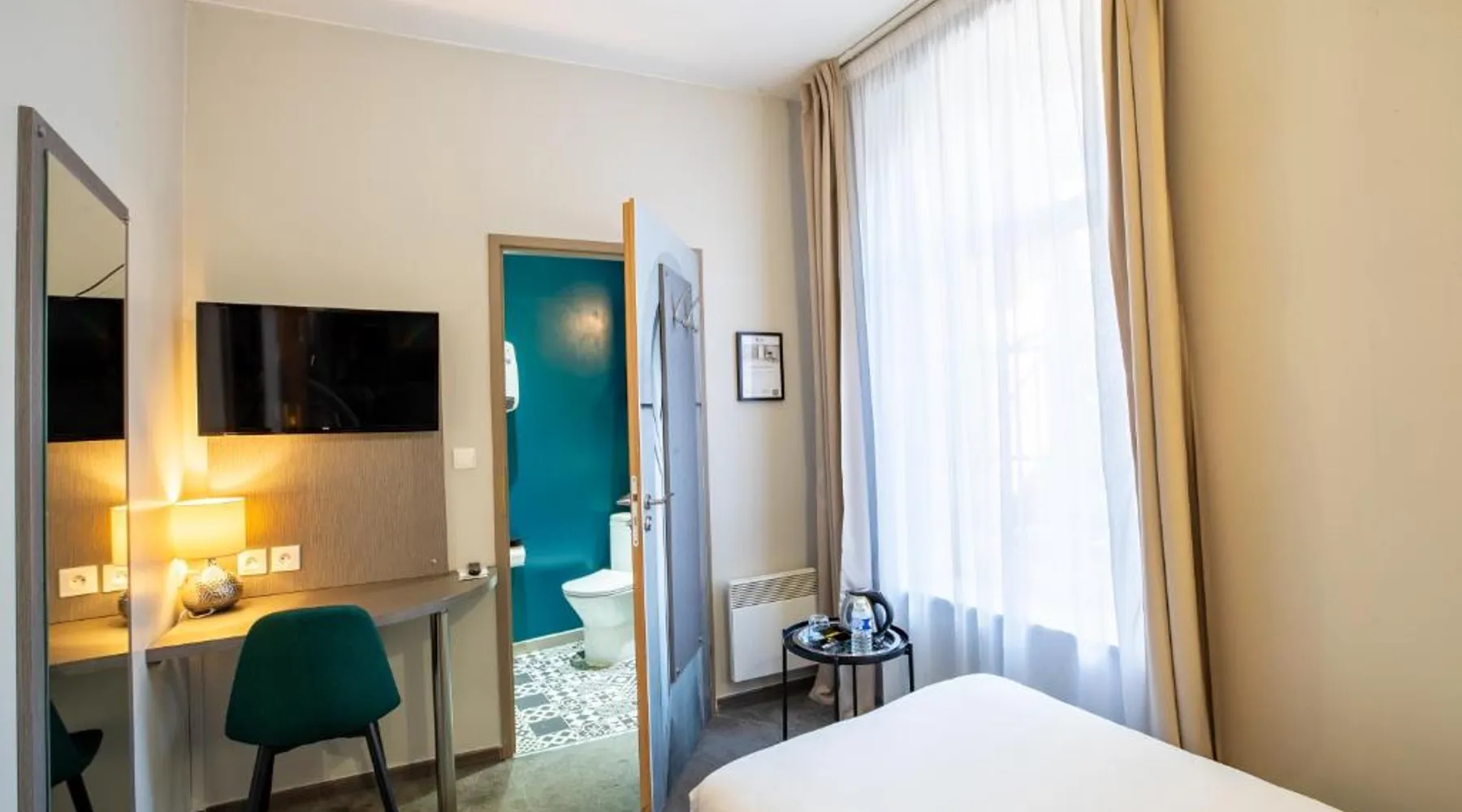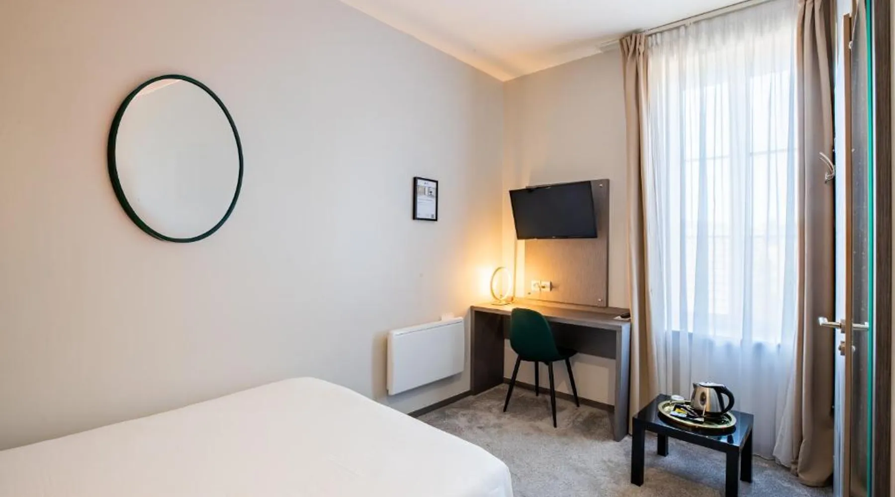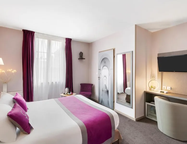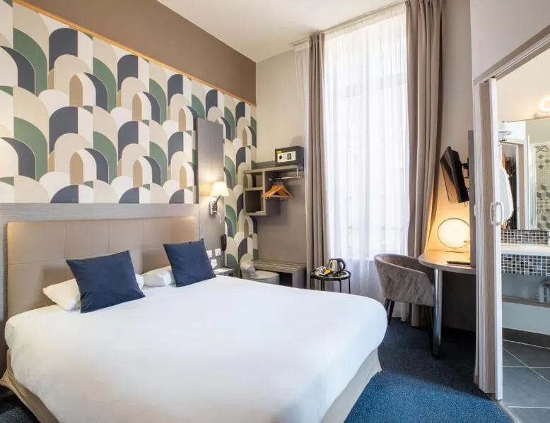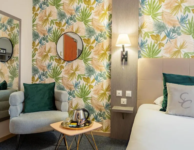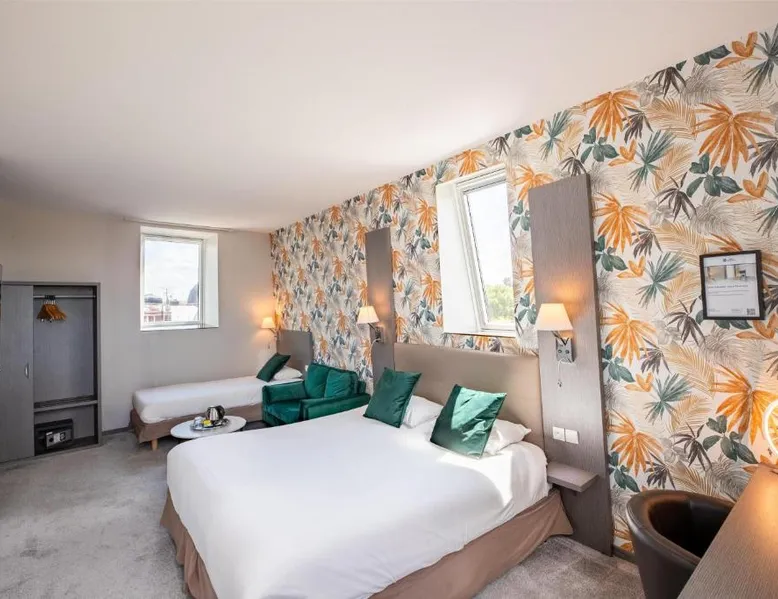 Hotel Saint Claude is located in the city center of Péronne, between a 16th-century castle and the Great War museum. It offers 40 comfortable and soundproofed rooms that are all serviced by a elevator. Breakfast available seven days a week Public parking can be found nearby. The suite features 1 separate bedroom and 1 bathroom with a walk-in shower and a bath or a shower. The suite offers a mini-bar, a tea and coffee maker, a wardrobe, a safe deposit box, as well as a flat-screen TV. The unit offers 1 bed.