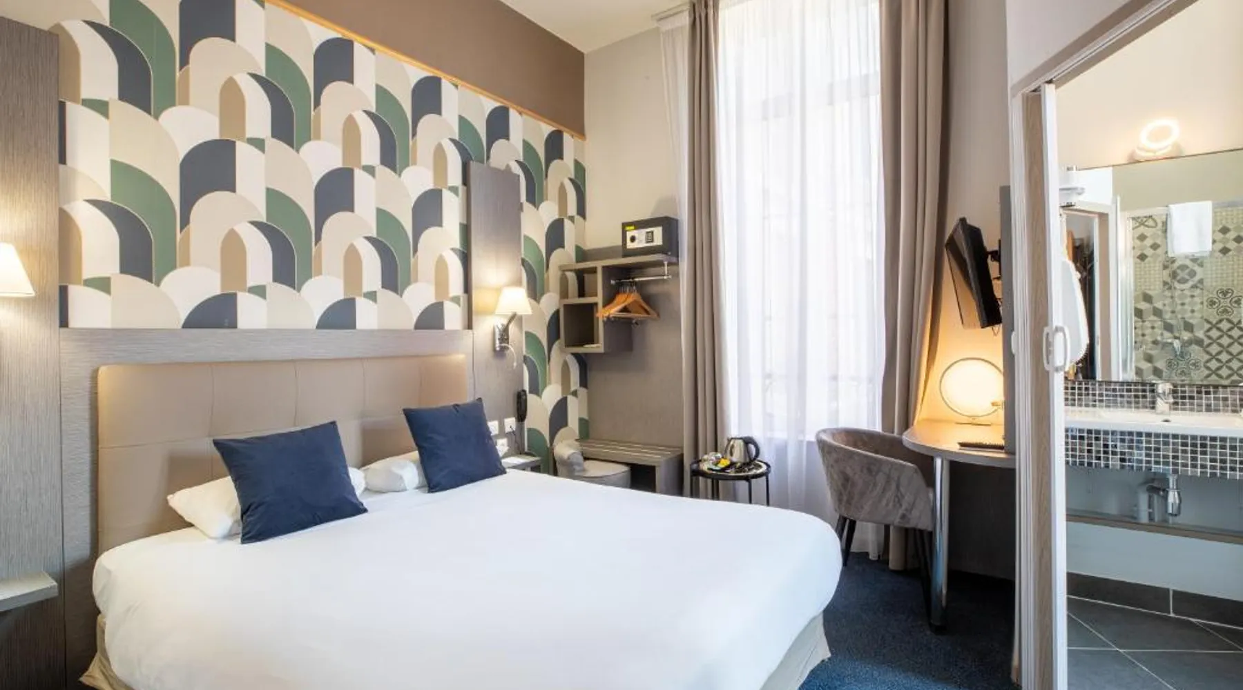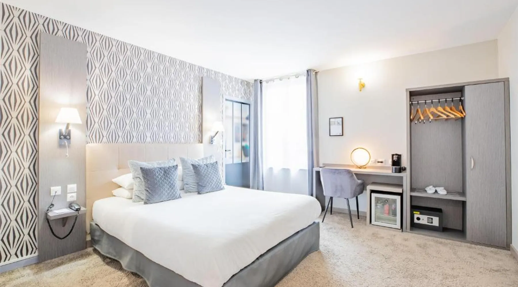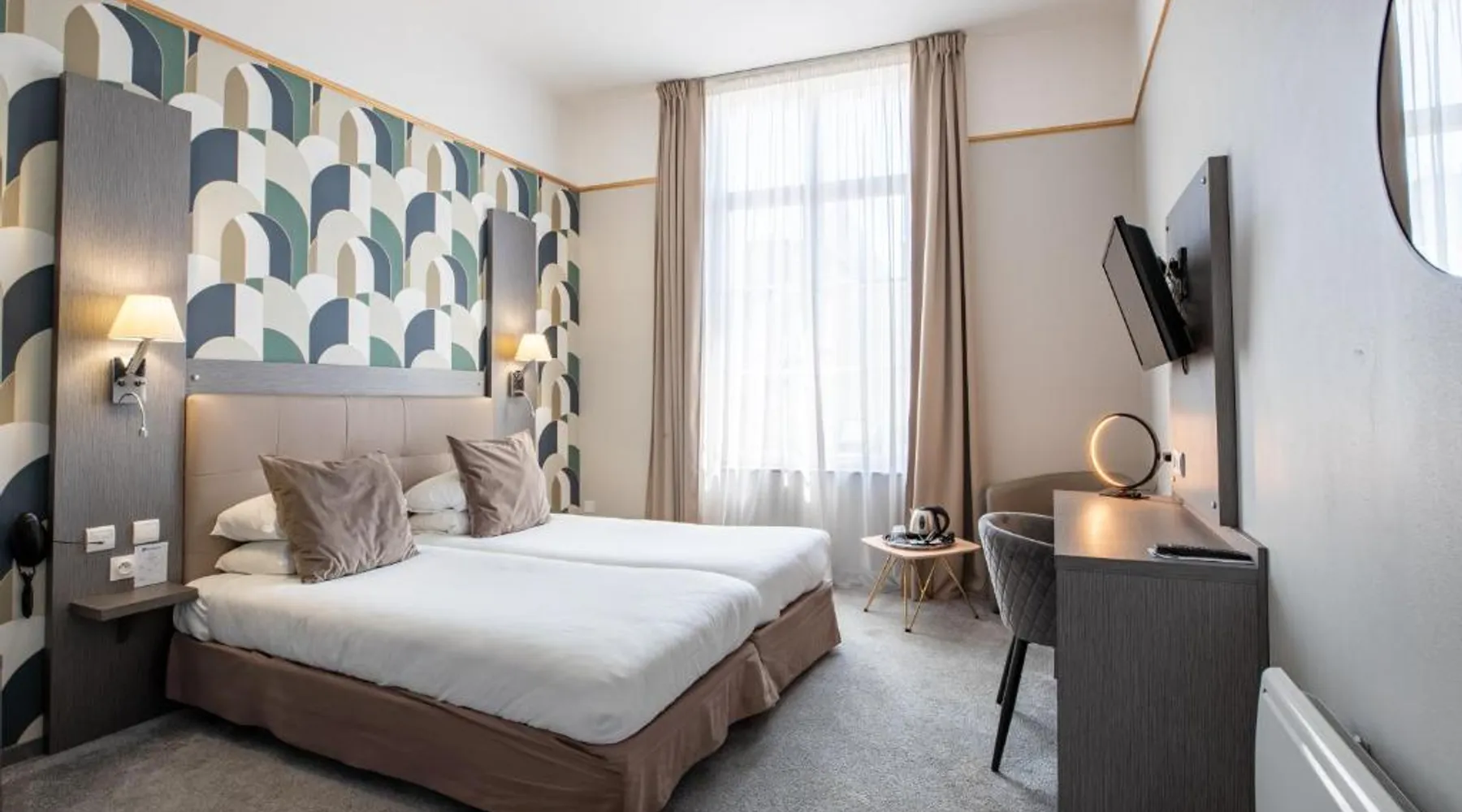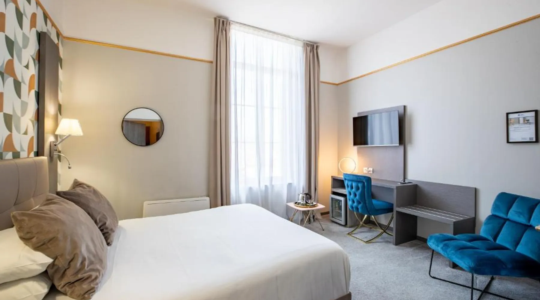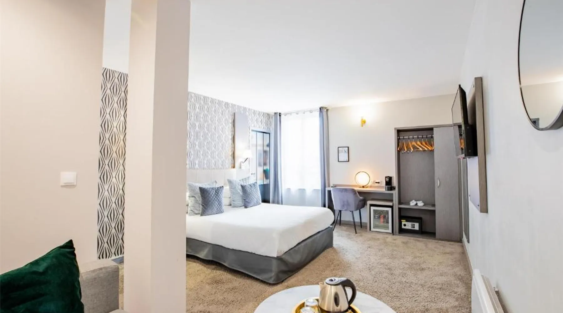 Hotel Saint Claude is located in the city center of Péronne, between a 16th-century castle and the Great War museum. It offers 40 comfortable and soundproofed rooms that are all serviced by a elevator. Breakfast available seven days a week Public parking can be found nearby. The suite features 1 separate bedroom and 1 bathroom with a walk-in shower and a bath or a shower. The suite offers a mini-bar, a tea and coffee maker, a wardrobe, a safe deposit box, as well as a flat-screen TV. The unit offers 1 bed.