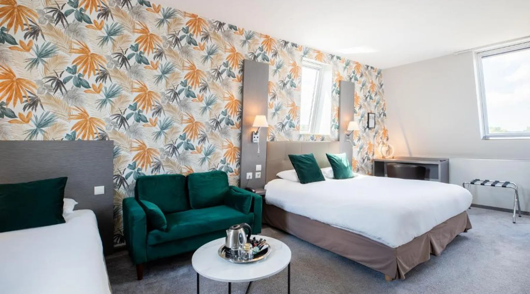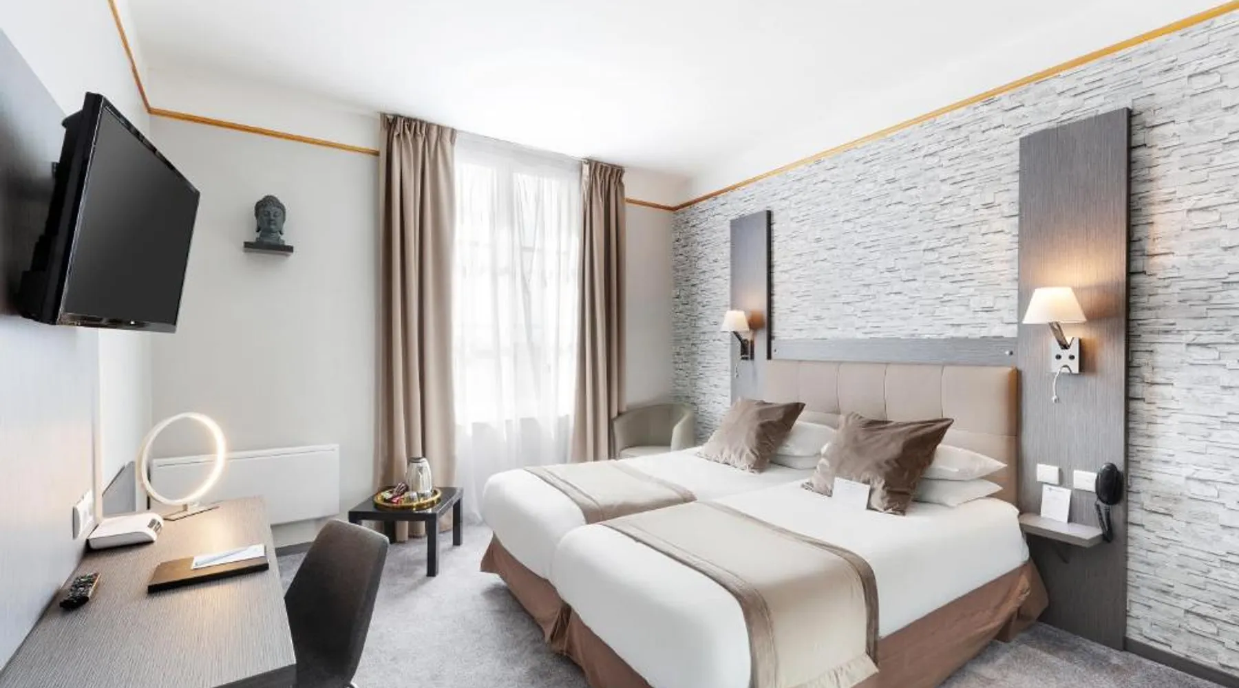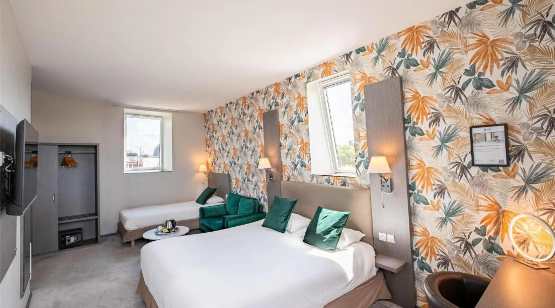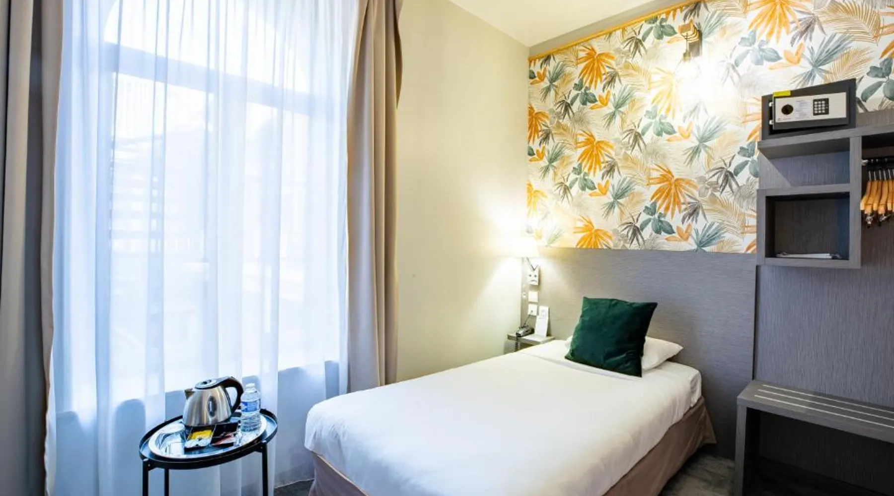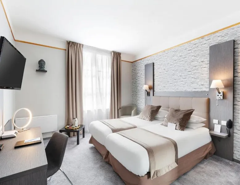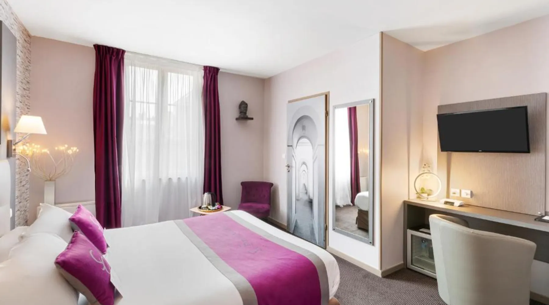 Hotel Saint Claude is located in the city center of Péronne, between a 16th-century castle and the Great War museum. It offers 40 comfortable and soundproofed rooms that are all serviced by a elevator. Breakfast available seven days a week Public parking can be found nearby. The suite features 1 separate bedroom and 1 bathroom with a walk-in shower and a bath or a shower. The suite offers a mini-bar, a tea and coffee maker, a wardrobe, a safe deposit box, as well as a flat-screen TV. The unit offers 1 bed.
