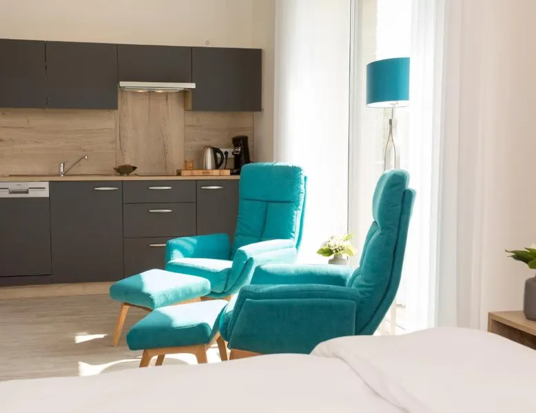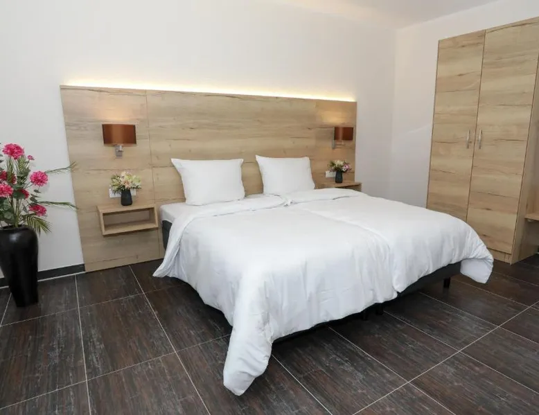Comfortable Accommodations: @home Boardinghouse in Dinklage offers aparthotel-style accommodations with family rooms and ground-floor units. Each room includes a kitchenette, private bathroom, and garden or terrace views. Modern Amenities: Guests enjoy free WiFi, a garden, terrace, and balcony. Additional facilities include a washing machine, dishwasher, and electric kettle. Private check-in and check-out services ensure a smooth arrival and departure. Convenient Location: Located 44 mi from Bremen Airport and 6.8 mi from Artland Arena, the aparthotel provides easy access to local attractions. Free on-site private parking is available for guests. Activities and Services: Guests can participate in bike tours, hiking, and cycling. The property offers bike hire, car hire, and an electric vehicle charging station. Highly rated for room cleanliness, kitchen, and convenient location. This apartment includes 1 living room, 1 separate bedroom and 1 bathroom with a shower and free toiletries. Guests will find a stovetop, a refrigerator, a dishwasher and kitchenware in the kitchen. The apartment also features a barbecue. Boasting a terrace with garden views, this apartment also offers a washing machine and a flat-screen TV with satellite channels. The unit has 2 beds.