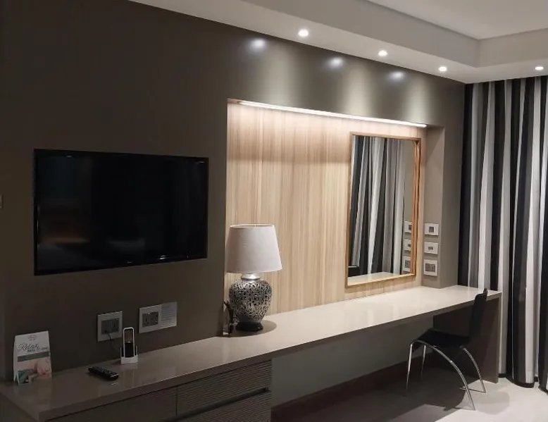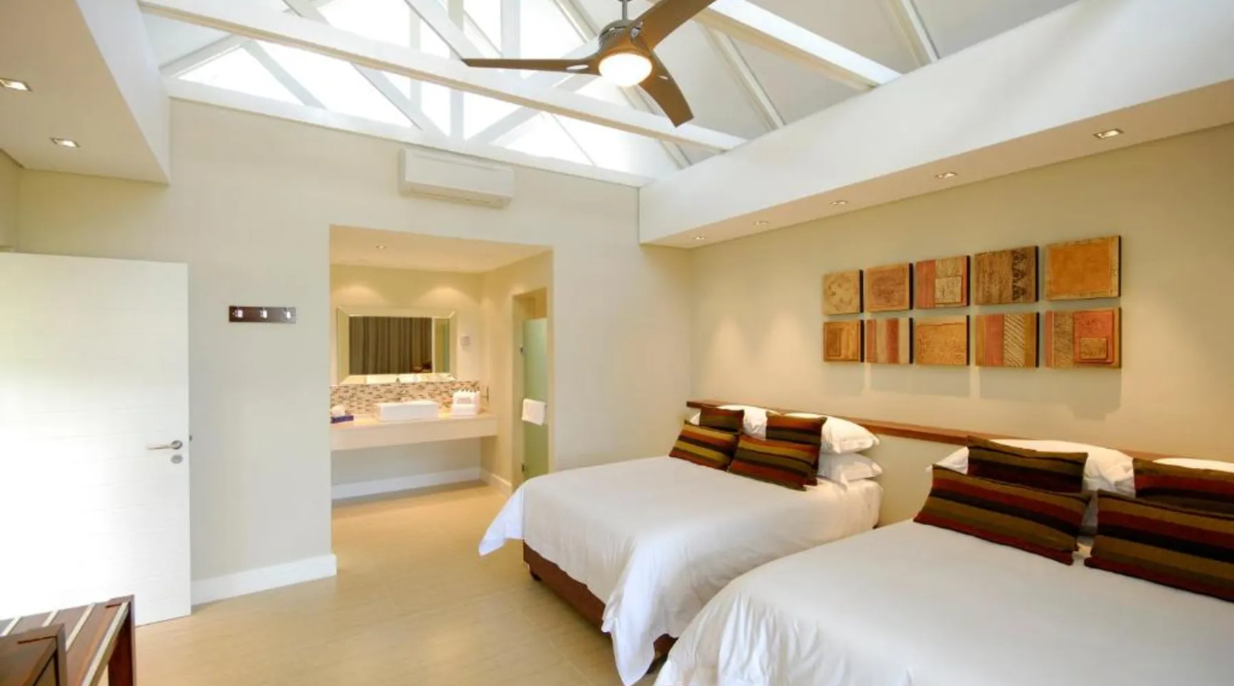 Comfortable Accommodations: Kupferquelle Resort in Tsumeb offers family rooms with air-conditioning, private bathrooms, and balconies. Each room includes a work desk, TV, and free WiFi. Leisure Facilities: Guests can enjoy a year-round outdoor swimming pool, sun terrace, and lush garden. The resort features spa facilities, a fitness center, and a wellness package. Dining Experience: The family-friendly restaurant serves local cuisine for lunch and dinner. Additional amenities include a bar, coffee shop, and picnic area. Convenient Services: Private check-in and check-out, beauty services, and a minimarket enhance the stay. Free toiletries, a hairdryer, and a coffee machine are provided in each room. Nearby Attractions: Tsumeb Museum is 1.2 mi away, offering cultural experiences. Featuring a balcony, this family room also provides air conditioning, a coffee machine and a flat-screen TV with satellite channels. The unit offers 2 beds.