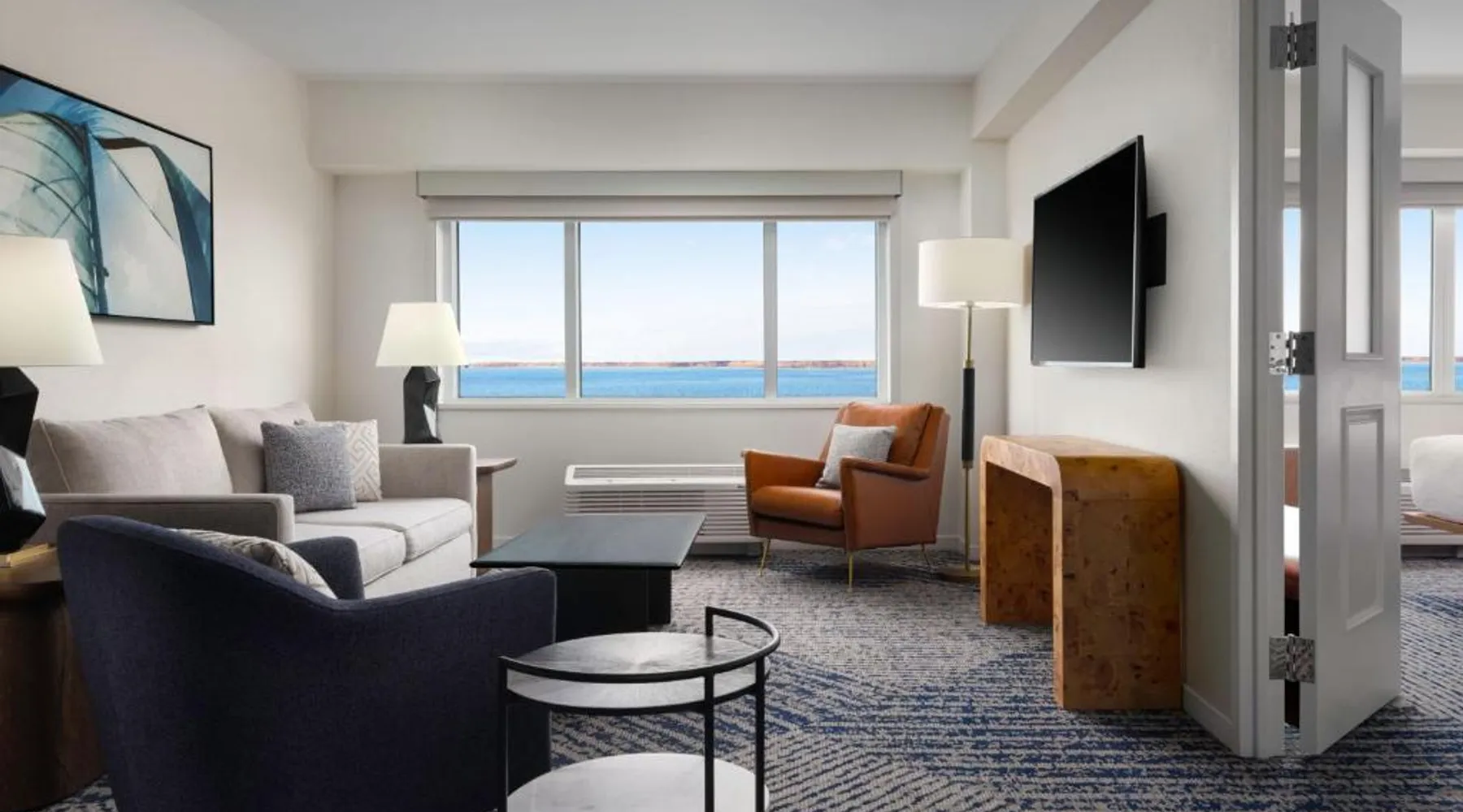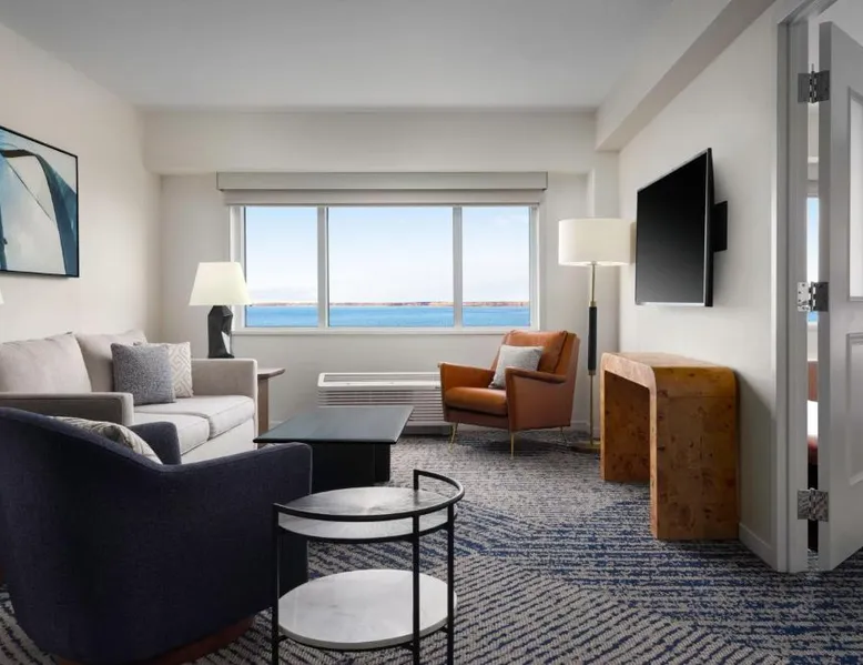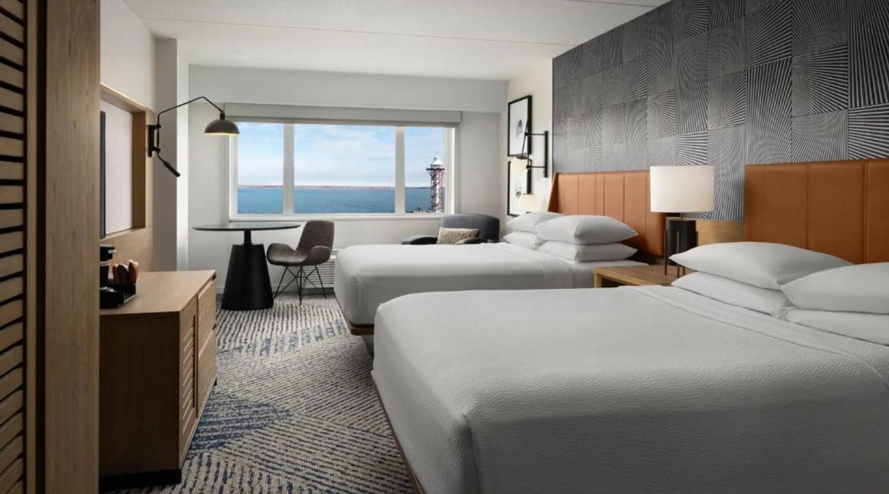 Featuring free WiFi and a 24-hour fitness center, Sheraton Hotel Erie Bayfront offers pet-friendly accommodations in Erie. Guests can enjoy the on-site bar. Every room at this hotel is air conditioned and features a flat-screen TV with cable channels. The rooms include a private bathroom fitted with a bath or shower. For your comfort, you will find free toiletries and a hairdryer. Deluxe rooms offer a bay view and standard rooms include a marina view. Located on Presque Isle Bay, you will find a 24-hour front desk at the property. Sheraton Erie has a full service restaurant with seasonal American fare. Room service is also available This standard room with marina view has a: -free toiletries -wardrobe -carpeted floor -tea/coffee maker -lat-screen TV with streaming services -private bathroom -a hairdryer -safe deposit box The unit has 1 bed.