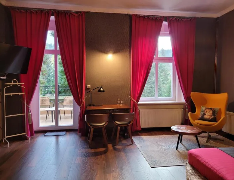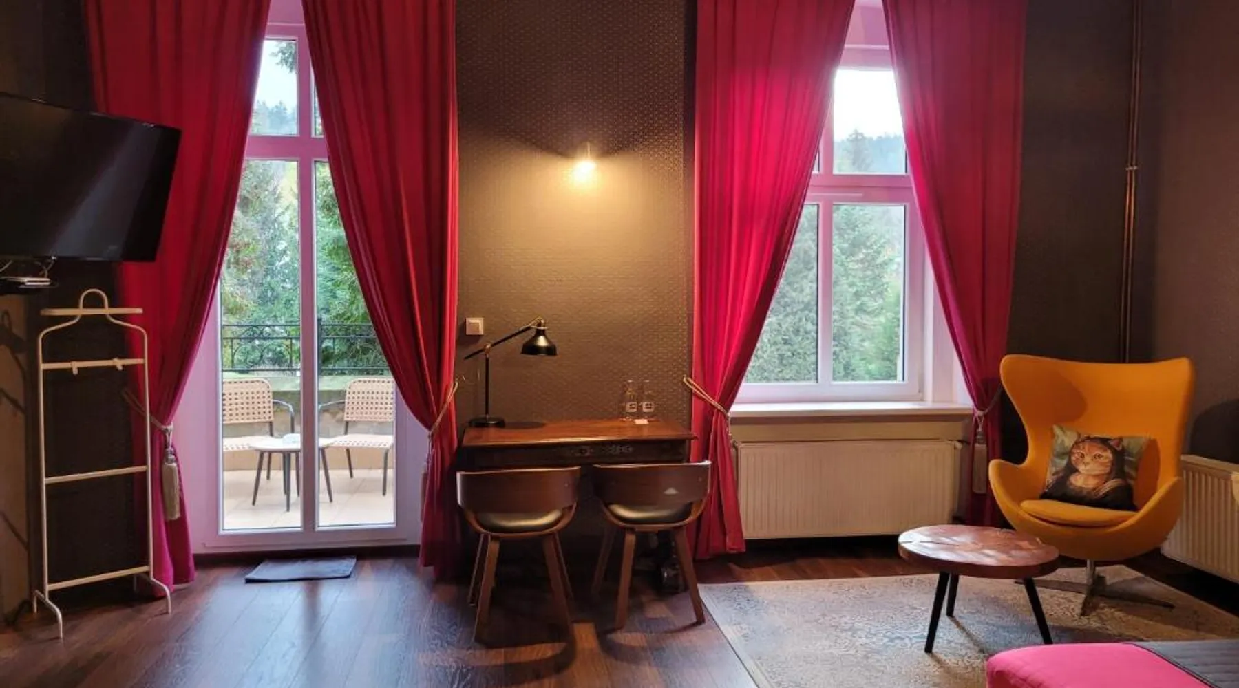 Historic Setting: Kot Pocztowy in Długopole-Zdrój offers a unique apartment experience within a historic building. Guests enjoy a sun terrace and a beautiful garden, complemented by free WiFi throughout the property. Comfortable Amenities: The apartment features a kitchenette, private bathroom, and a comfortable seating area. Additional amenities include air-conditioning, balcony with city views, and a work desk, ensuring a pleasant stay. Prime Location: Łazienki is just a few steps away, while attractions such as Baszta Kłodzka and Pałac Stary Waliszów are within 7.5 mi. Free on-site private parking is available for guests. Guest Satisfaction: Highly rated for spa, room cleanliness, and comfort, Kot Pocztowy provides private and express check-in and check-out services, a tour desk, and bicycle parking. This apartment consists of a kitchenette, a seating area, 1 separate bedroom and 1 bathroom with a shower and a hairdryer. Meals can be prepared in the well-fitted kitchenette, which is equipped with a stovetop, a refrigerator, a dishwasher and kitchenware. Featuring a balcony with city views, this apartment also provides soundproof walls and a flat-screen TV. The unit offers 1 bed.