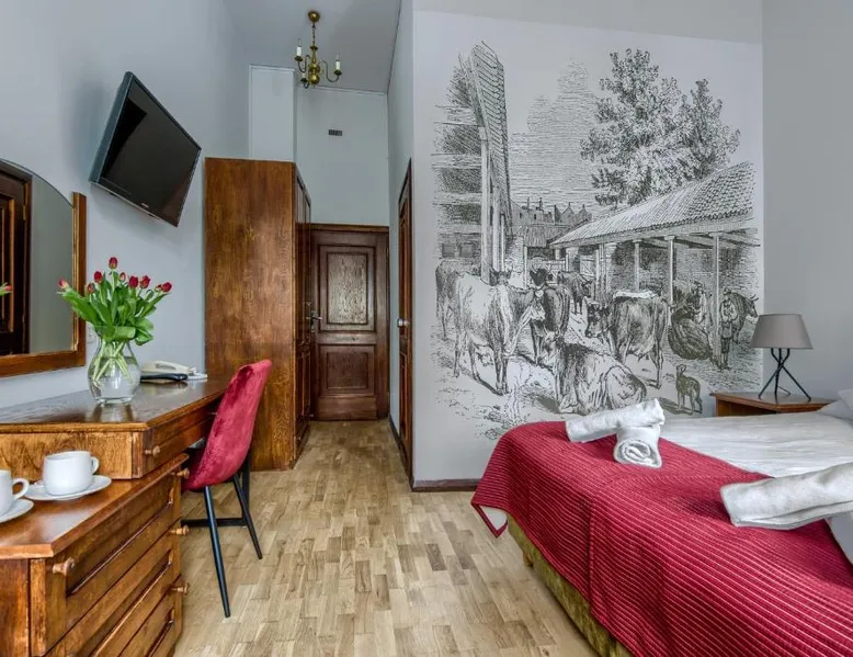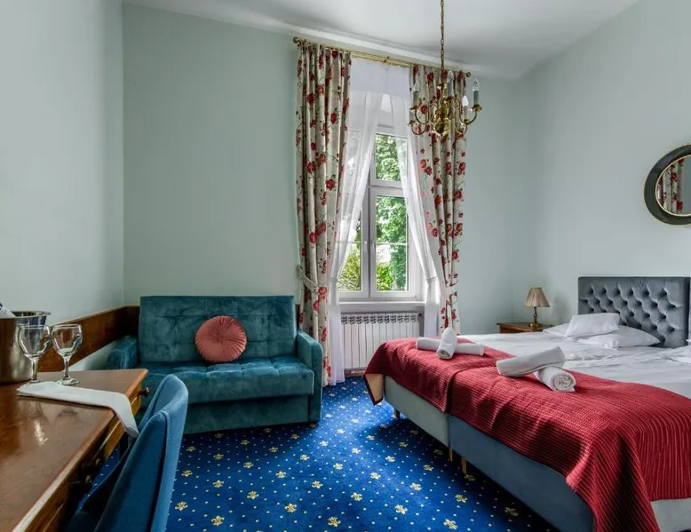The 3-star Kadyny Folwark Hotel & SPA is surrounded by woods, located 2625 feet from the beach of Vistula Bay and adjoining the former summer palace of Emperor Wilhelm II of Germany. The hotel is a 15-minute drive from Elblag. Every room has a bathroom, a telephone and TV. There is also free Wi-Fi in every room. Kadyny Folwark Hotel & SPA offers massage and beauty treatments. The Stara Gorzelnia Restaurant, which was once Kaiser Wilhelm's vodka distillery, serves Polish cuisine and has a cafe and a wine bar that is open until the last guest leaves. You may also take your evening meal in the beautiful rose gardens. The hotel can organize airport transfer or help you to hire a car. Airport transfer may be arranged upon prior notice. The public on-site parking can be used free of charge. Featuring free toiletries, this twin/double room includes a private bathroom with a walk-in shower, a bath and a hairdryer. The twin/double room features a wardrobe, parquet floors, a carpeted floor, heating, as well as a flat-screen TV with cable channels. The unit has 2 beds.