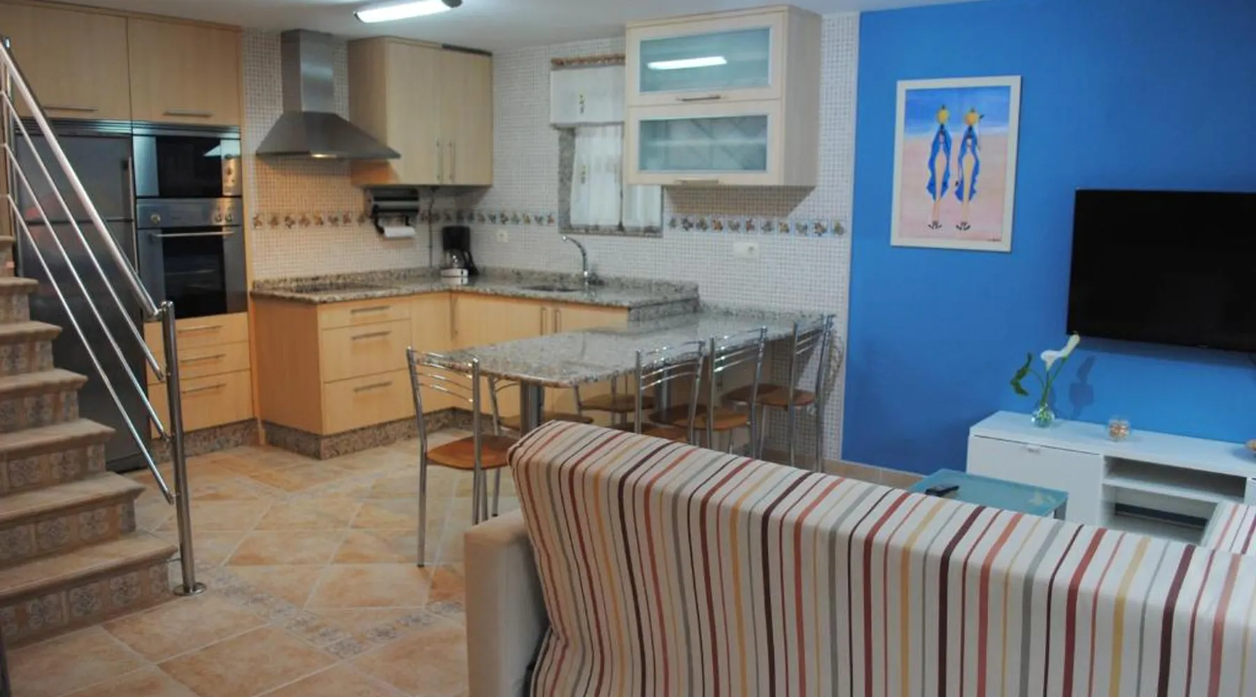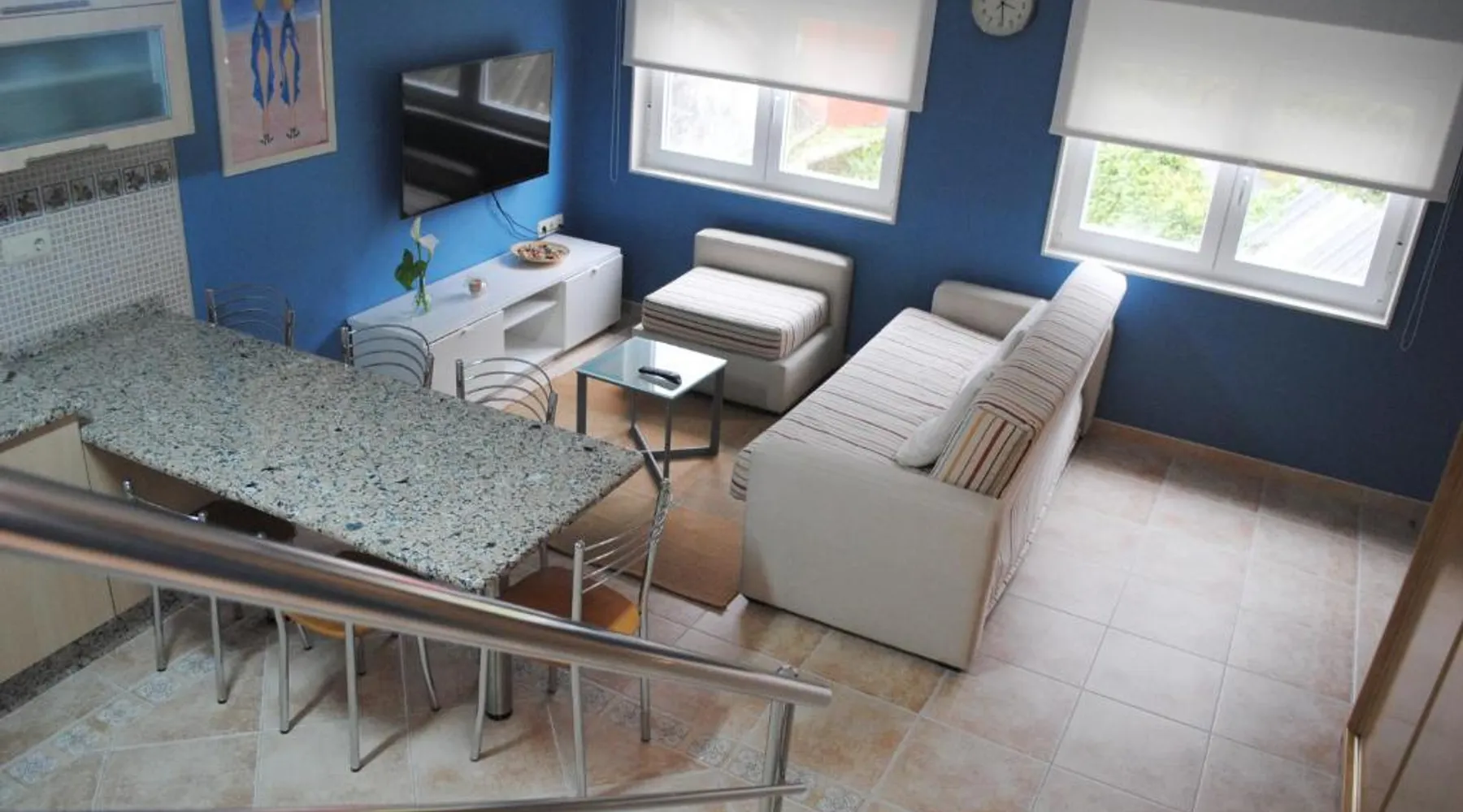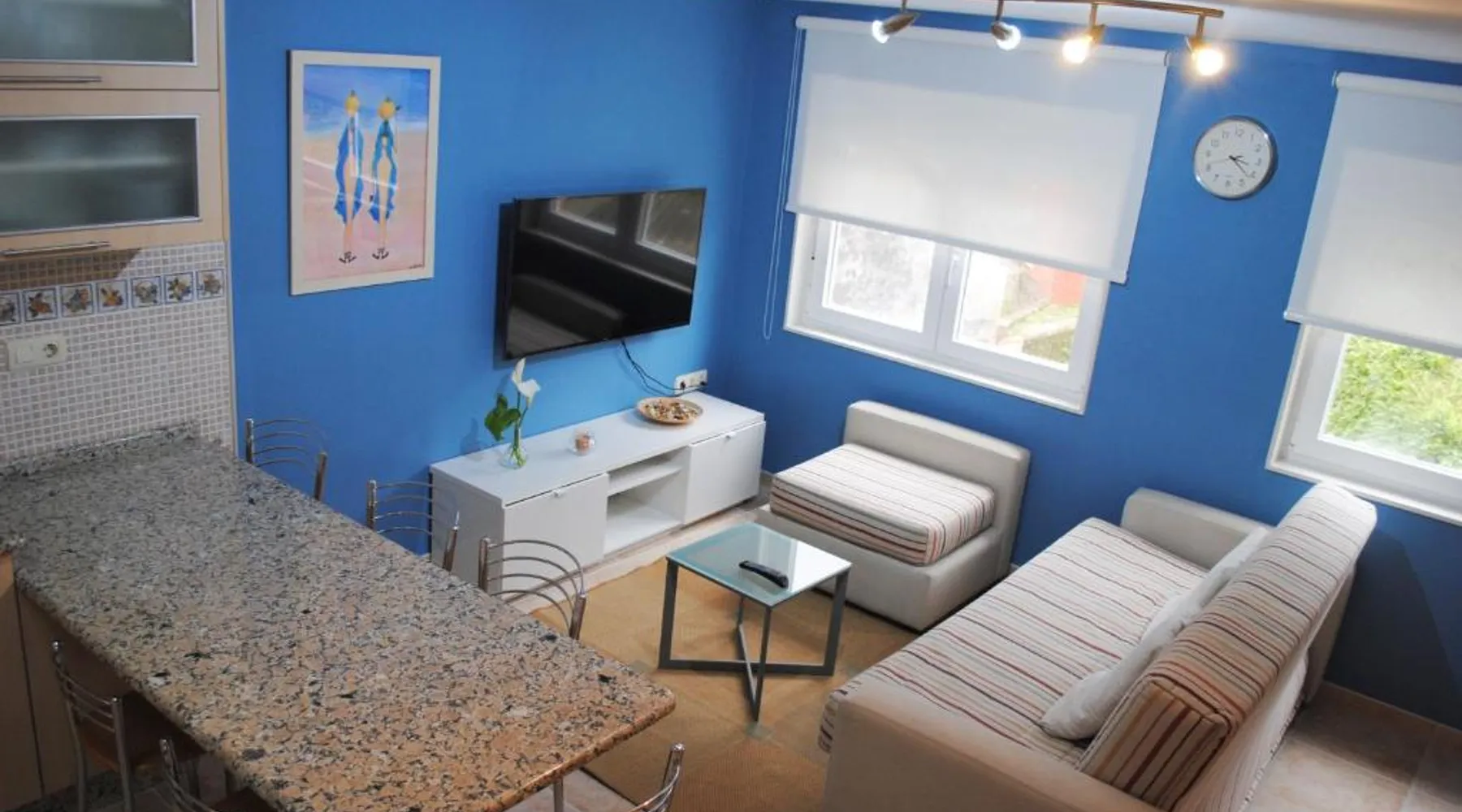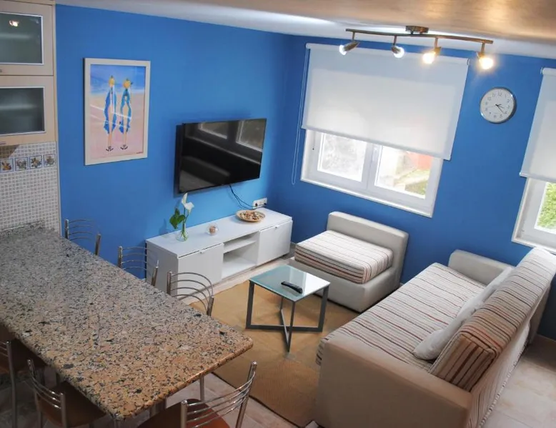 Comfortable Accommodations: Dúplex A Moa in Carnota offers a two-bedroom apartment with a living room. The property features family rooms, air-conditioning, and tiled floors. Modern Amenities: Guests enjoy free WiFi, a kitchenette, washing machine, and mountain views. The apartment includes a dining area, sofa bed, and a seating area. Convenient Location: Located 53 mi from Santiago de Compostela Airport, the apartment is a few steps from San Pedro Beach and 1.9 mi from Ezaro Waterfall. Guest Satisfaction: Highly rated by guests for its beach access and proximity to attractions. This air-conditioned apartment consists of 1 living room, 2 separate bedrooms and 1 bathroom with a shower. Meals can be prepared in the well-fitted kitchen, which is equipped with a stovetop, a refrigerator, a dishwasher and kitchenware. The apartment provides a washing machine, a tea and coffee maker, a seating area, a flat-screen TV with cable channels, as well as mountain views. The unit offers 4 beds.
