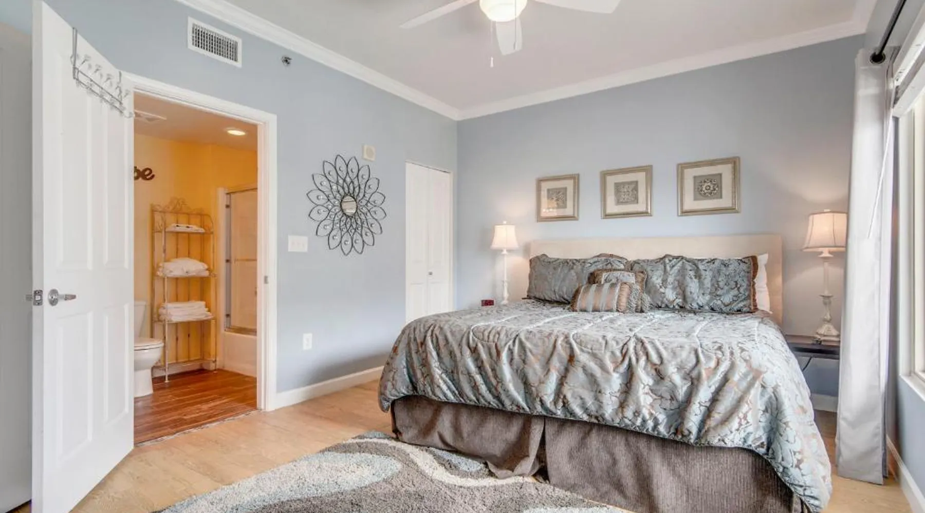 Beachfront Location: Shores of Panama #1119 in Panama City Beach offers direct beachfront access with stunning sea views. Guests can relax on the sandy shores or take a dip in the inviting waters. Spa and Wellness: The holiday home features a spa and wellness center, providing a tranquil retreat for relaxation. An indoor swimming pool and fitness room enhance the leisure experience. Comfortable Accommodations: Shores of Panama #1119 offers two bedrooms and three bathrooms, complemented by a spacious living room. The property includes air-conditioning, a balcony, and a fully equipped kitchen with modern appliances. Nearby Attractions: Panama City Beach is a 6-minute walk away, while Ripley's Believe it or Not! lies less than 0.6 mi from the property. Northwest Florida Beaches International Airport is 18 mi distant. This spacious apartment is consisted of of 1 living room, 2 separate bedrooms and 3 bathrooms with a shower. Guests will find a stovetop, a refrigerator, a dishwasher and kitchenware in the fully equipped kitchen. The apartment also has a barbecue. The air-conditioned apartment offers a TV with cable channels, a washing machine, a coffee machine, tumble dryer as well as sea views. The unit offers 3 beds.