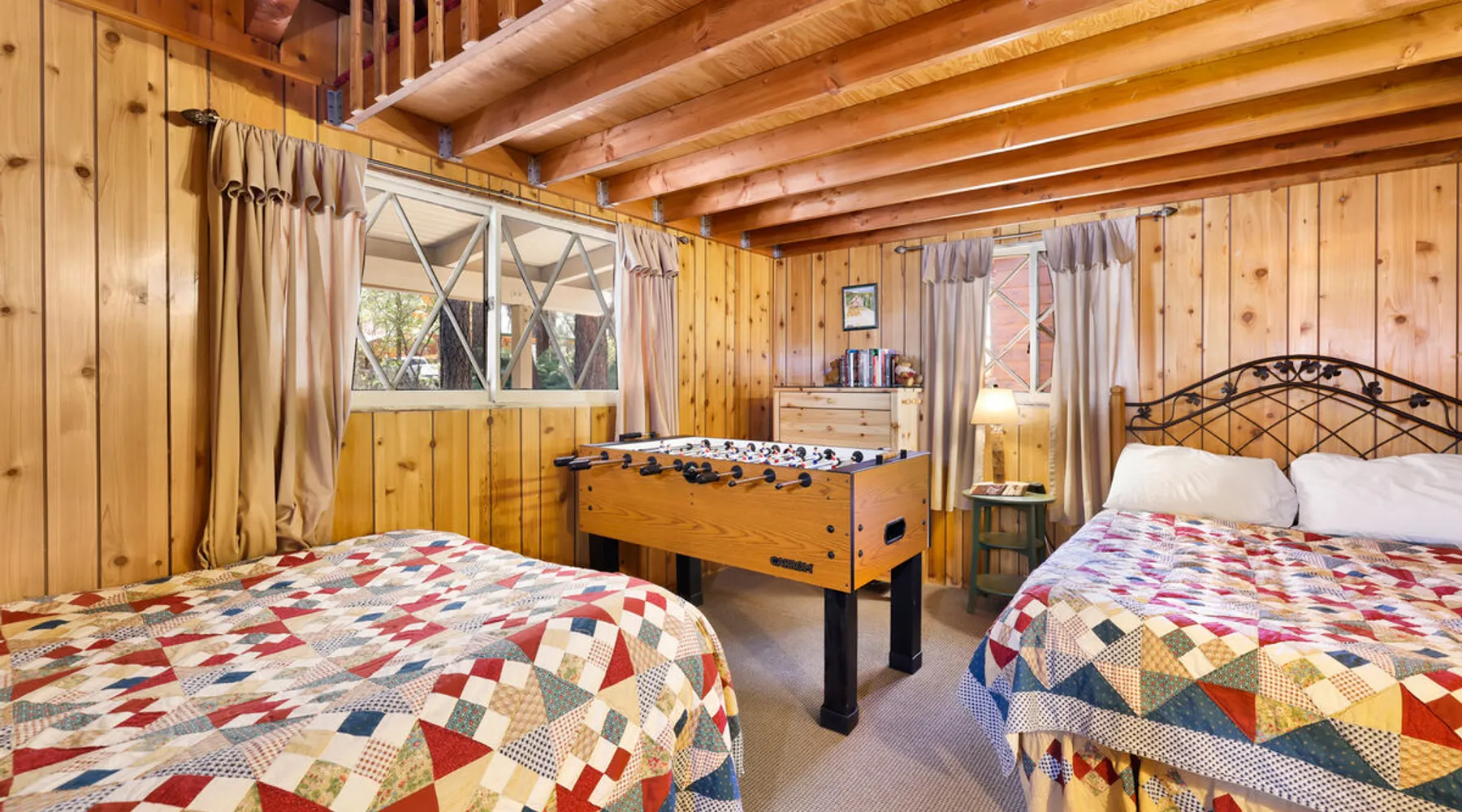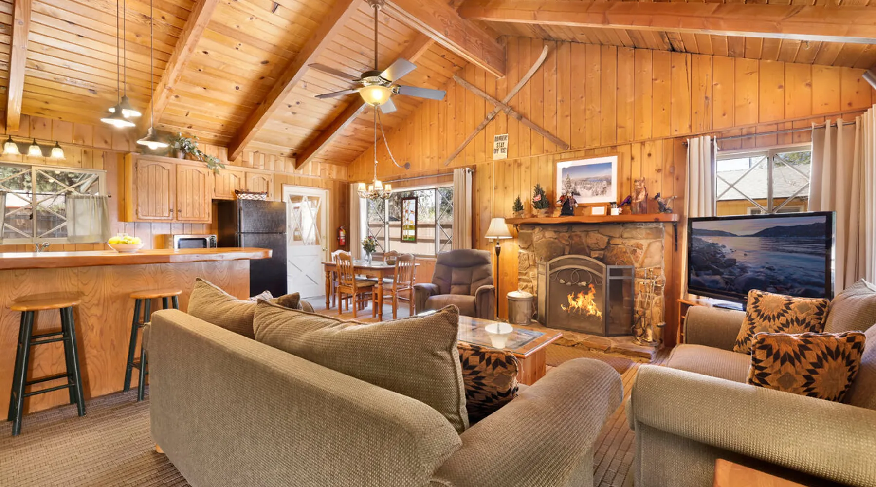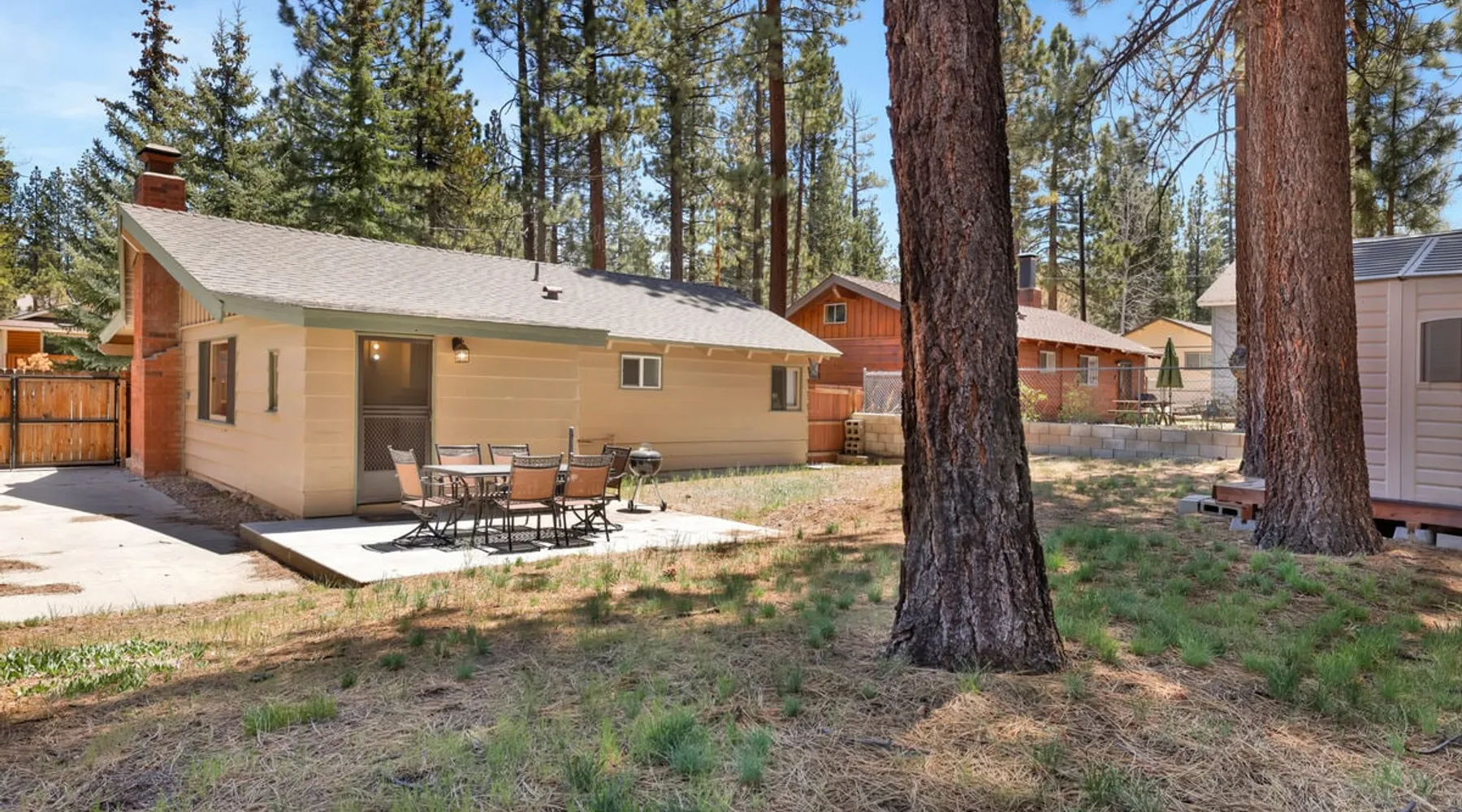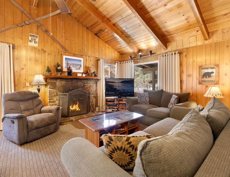 Perfect for a getaway with friends or small family vacation our Oriole Cottage is the perfect destination for you to spend your next stay in the mountains together relaxing in comfort and style under soaring pine trees and shooting stars. Boasting all you'll need to experience the ultimate alpine experience our cozy single level chalet sits in a prime downtown neighborhood within a short stroll to the lake and local activities. Come experience this relaxing and comfortable getaway chalet today! The space Oriole Cottage Big Bear | Cozy Cabin | Walk to Lake Perfect for a group of friends or a small family to enjoy the best that Big Bear has to offer you will love your visit here at our Oriole Cottage- centrally located less than a mile from the lake or Village and furnished with comfortable mountain essentials to ensure a memorable and relaxing vacation is in store. Hop in the car and you are under ten minutes to the grocery stores, ski resorts, local zoo, and all local hiking trails offered in the valley. Enter your home where you are greeted with a warm and cozy living room that is ordained in big open windows, vaulted cathedral beamed ceilings, and a great open floor plan that is perfect for entertaining a group for a dinner party or holiday meal. Snuggle up on the comfy couches as you warm your toes in front of the toasty wood burning fireplace as you watch the snow falling outside and pop on a movie on the flat screen TV with complimentary Cable and hi speed WIFI internet provided for your enjoyment by the owners. Enjoy forested views as you dine together at the adorable log dining table to the side of the room or sit at the breakfast bar and connect with the chef of your group as they prepare your home cooked meals with the perfect open floor space for everyone. The practical kitchen has all that you need for your preparations including ample counter space, oak cabinets stocked with cookware and utensils, general appliances, and even a dishwasher to ensure your cleanup is a breeze. This single level chalet offers easy and convenient access to both bedrooms and your adorable hallway full bathroom, each is made up for your group with warm linens, blankets, pillows, and fresh shower towels for your visit when you arrive. Enjoy playing on the foosball game or watching a movie separately in the second guest room plus a washer and dryer is right on hand for those wet snow clothes in the winter or extended visits to the mountains year round. Venture to the great outdoors where you will love the tree lined and fully fenced private backyard area with a fabulous patio that includes outdoor picnic tables and a Charcoal BBQ where you can relax and unwind in the evenings as you grill up your freshly caught dinner from the lake under the pines. Oriole Cottage has everything you need for a relaxing and memorable trip to the mountains no matter the season you choose to visit- make this your next home away from home today! Sleeping Arrangements: Bedroom 1: Queen Bed Bedroom 2: Full Bed + Full Bed, TV w/ Cable, Foosball Table Bathroom Arrangements: Hallway Full Bath -Sleeps 4 -2 Cars Driveway Parking -No Pets Allowed -864 Total Square Feet City Permit #: VRR-2024-0234 Registration details 2024-0234