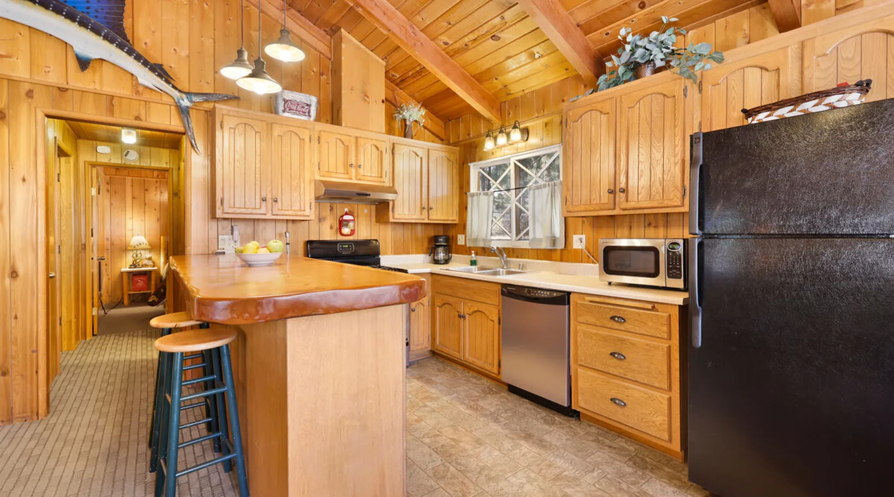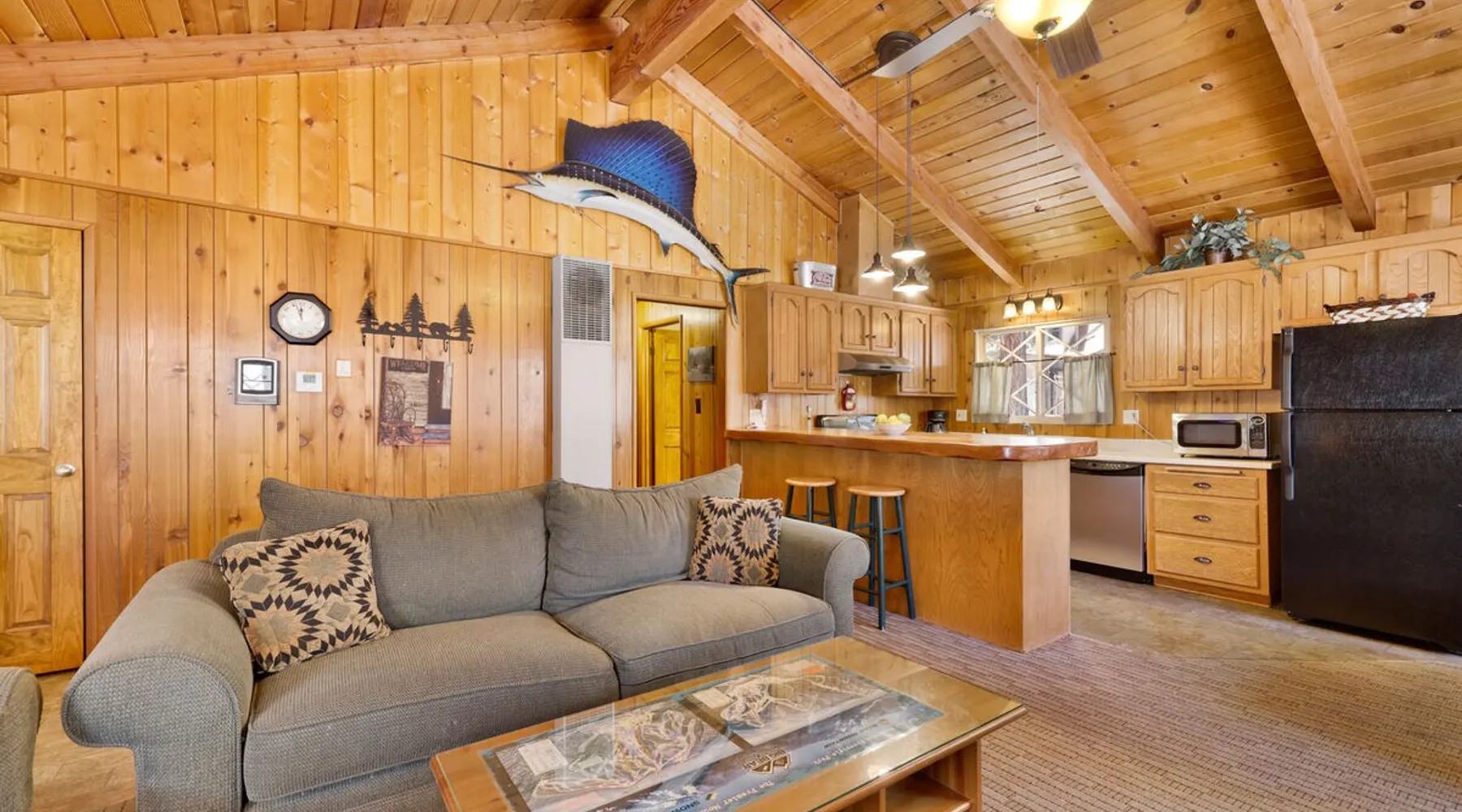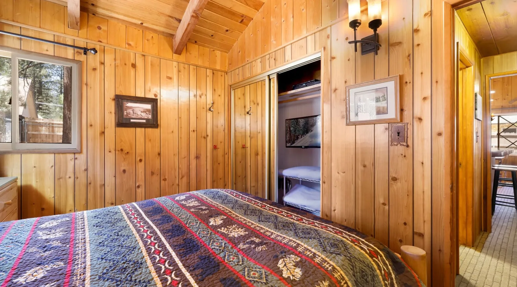 Perfect for a getaway with friends or small family vacation our Oriole Cottage is the perfect destination for you to spend your next stay in the mountains together relaxing in comfort and style under soaring pine trees and shooting stars. Boasting all you'll need to experience the ultimate alpine experience our cozy single level chalet sits in a prime downtown neighborhood within a short stroll to the lake and local activities. Come experience this relaxing and comfortable getaway chalet today! The space Oriole Cottage Big Bear | Cozy Cabin | Walk to Lake Perfect for a group of friends or a small family to enjoy the best that Big Bear has to offer you will love your visit here at our Oriole Cottage- centrally located less than a mile from the lake or Village and furnished with comfortable mountain essentials to ensure a memorable and relaxing vacation is in store. Hop in the car and you are under ten minutes to the grocery stores, ski resorts, local zoo, and all local hiking trails offered in the valley. Enter your home where you are greeted with a warm and cozy living room that is ordained in big open windows, vaulted cathedral beamed ceilings, and a great open floor plan that is perfect for entertaining a group for a dinner party or holiday meal. Snuggle up on the comfy couches as you warm your toes in front of the toasty wood burning fireplace as you watch the snow falling outside and pop on a movie on the flat screen TV with complimentary Cable and hi speed WIFI internet provided for your enjoyment by the owners. Enjoy forested views as you dine together at the adorable log dining table to the side of the room or sit at the breakfast bar and connect with the chef of your group as they prepare your home cooked meals with the perfect open floor space for everyone. The practical kitchen has all that you need for your preparations including ample counter space, oak cabinets stocked with cookware and utensils, general appliances, and even a dishwasher to ensure your cleanup is a breeze. This single level chalet offers easy and convenient access to both bedrooms and your adorable hallway full bathroom, each is made up for your group with warm linens, blankets, pillows, and fresh shower towels for your visit when you arrive. Enjoy playing on the foosball game or watching a movie separately in the second guest room plus a washer and dryer is right on hand for those wet snow clothes in the winter or extended visits to the mountains year round. Venture to the great outdoors where you will love the tree lined and fully fenced private backyard area with a fabulous patio that includes outdoor picnic tables and a Charcoal BBQ where you can relax and unwind in the evenings as you grill up your freshly caught dinner from the lake under the pines. Oriole Cottage has everything you need for a relaxing and memorable trip to the mountains no matter the season you choose to visit- make this your next home away from home today! Sleeping Arrangements: Bedroom 1: Queen Bed Bedroom 2: Full Bed + Full Bed, TV w/ Cable, Foosball Table Bathroom Arrangements: Hallway Full Bath -Sleeps 4 -2 Cars Driveway Parking -No Pets Allowed -864 Total Square Feet City Permit #: VRR-2024-0234 Registration details 2024-0234
